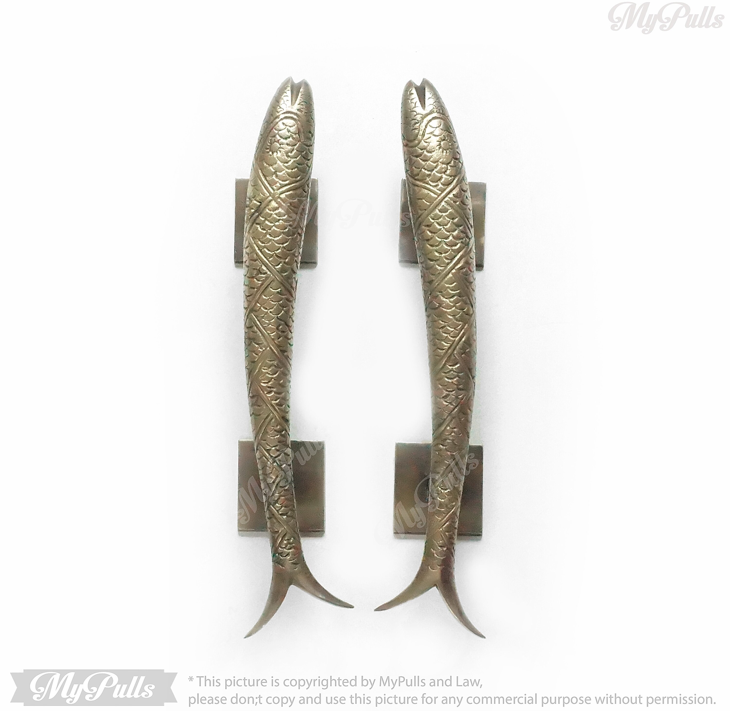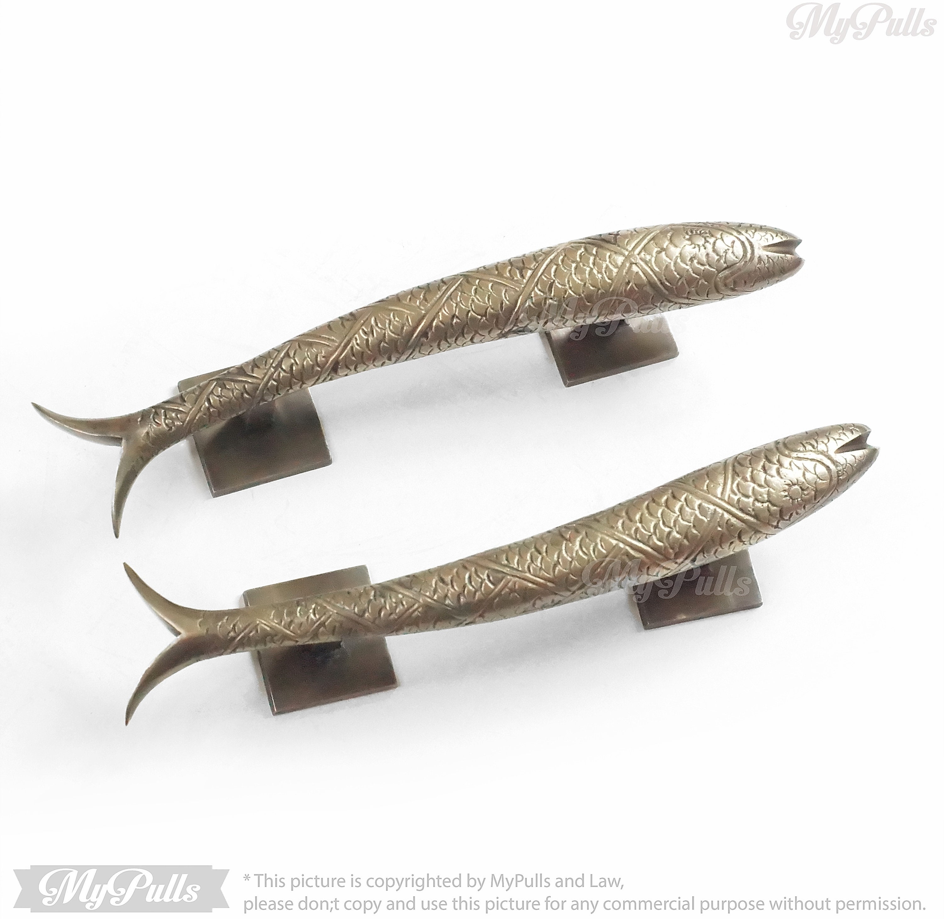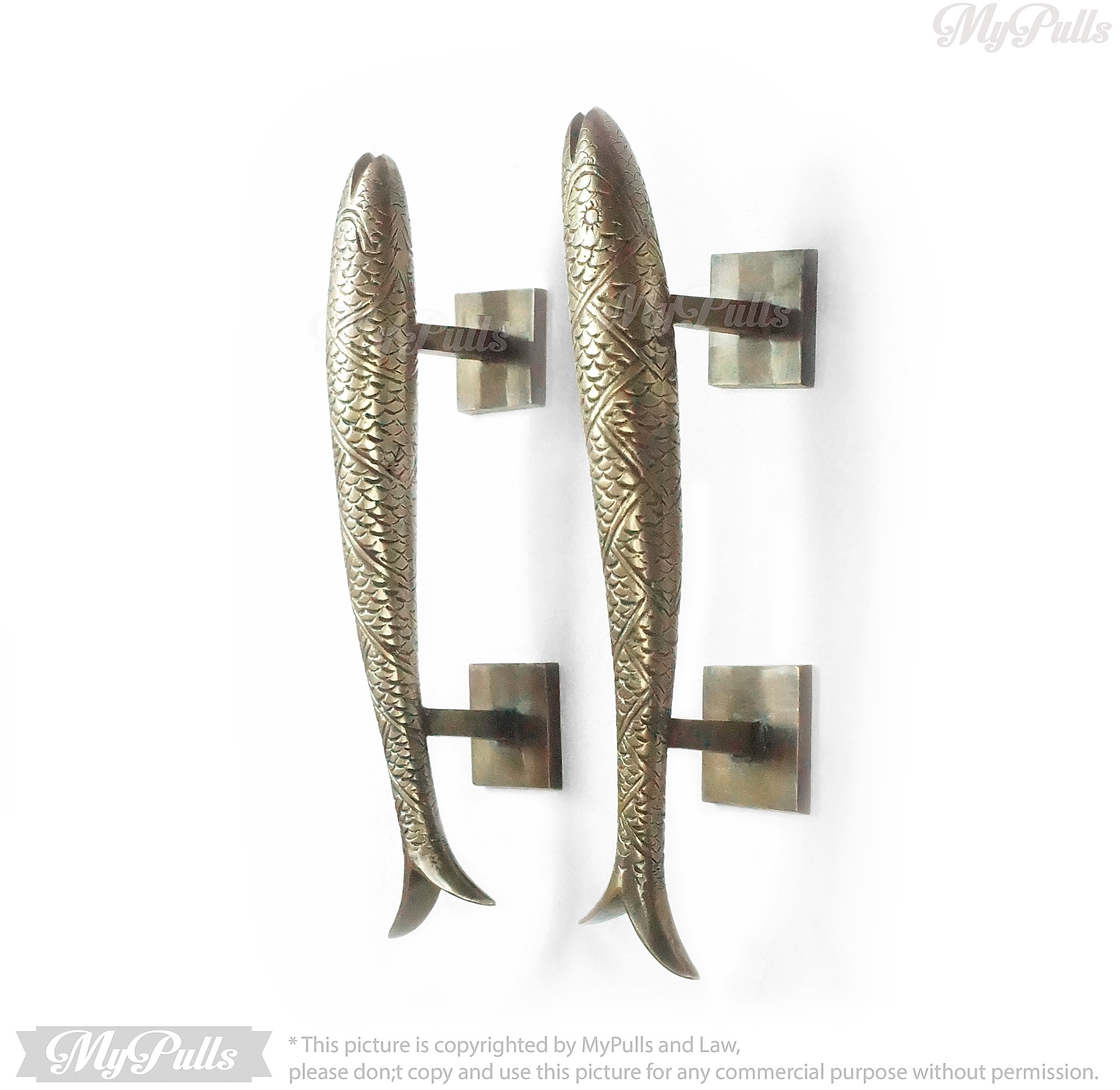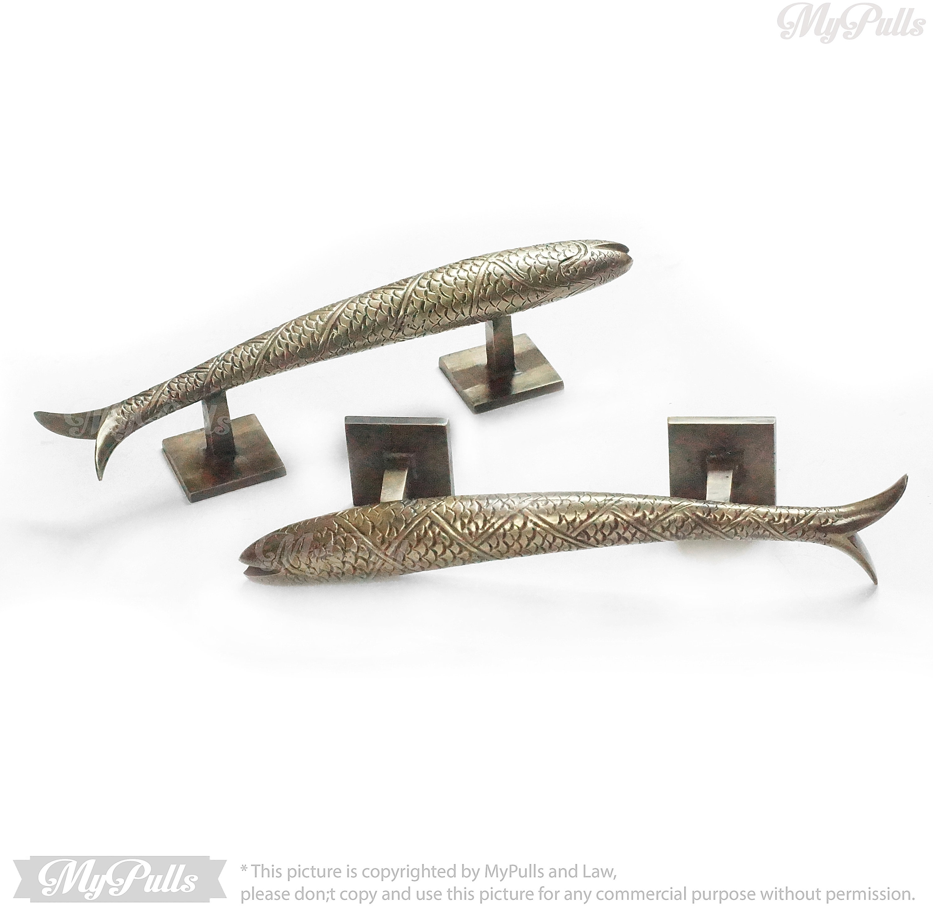 Set Pair of 11" in Solid Brass Retro Fish Knob Pull | Solid Brass Fish Animal Cabinet Drawer Dresser Kitchen Door Pull Handles