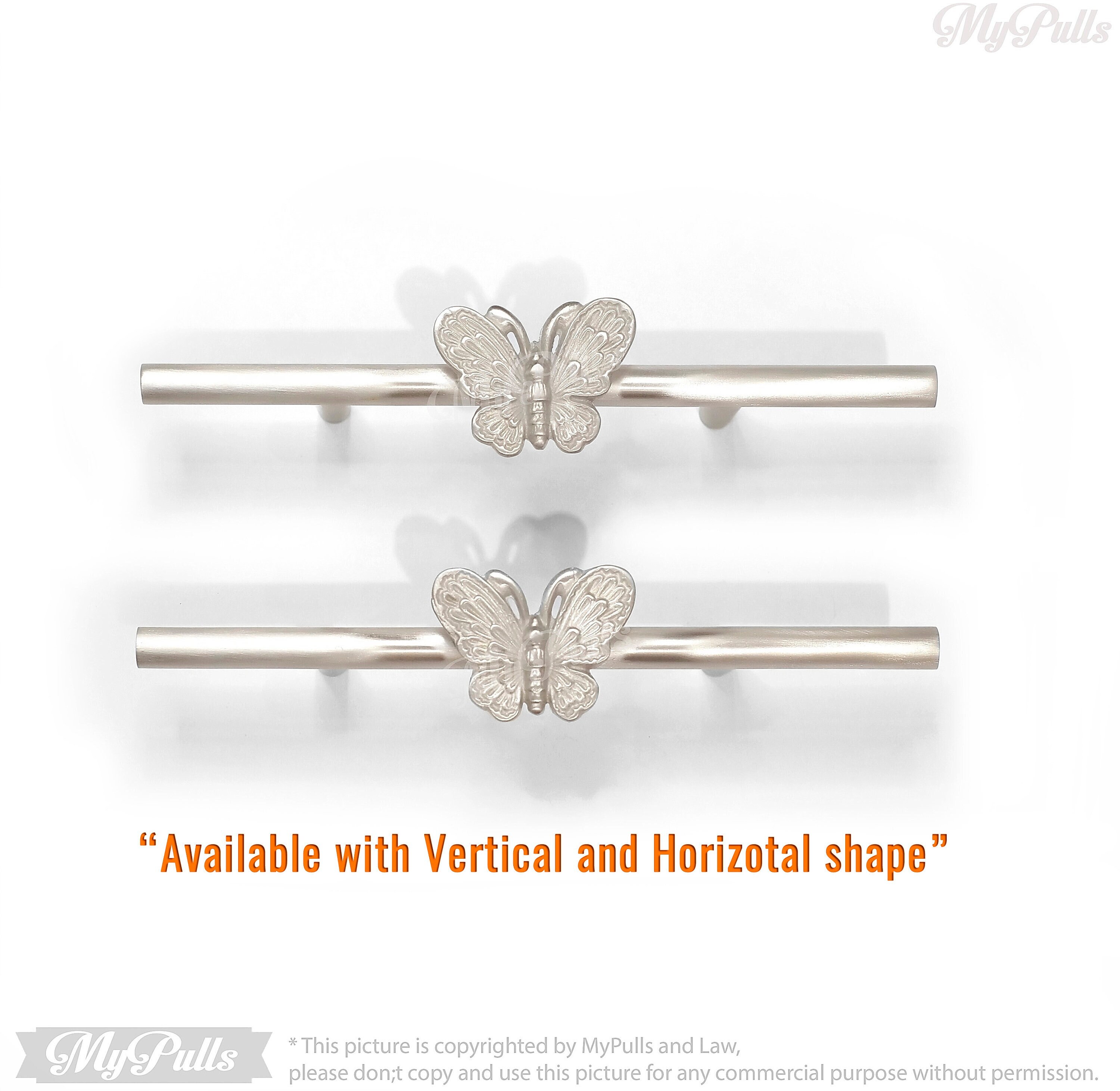 SOLID BRASS BUTTERFLY HANDLE PULLS WITH SILVER MATTE FINISH - This Solid Brass Butterfly Pull handles available in Vertical and Horizontal position, this handles pulls will be great for your Cabinet Knob Drawer Pull Handle Cupboard Door Pulls, Door knobs, Desk Drawer Pulls handle and this handle include a matching screws for fitting all these Solid Brass Handle.