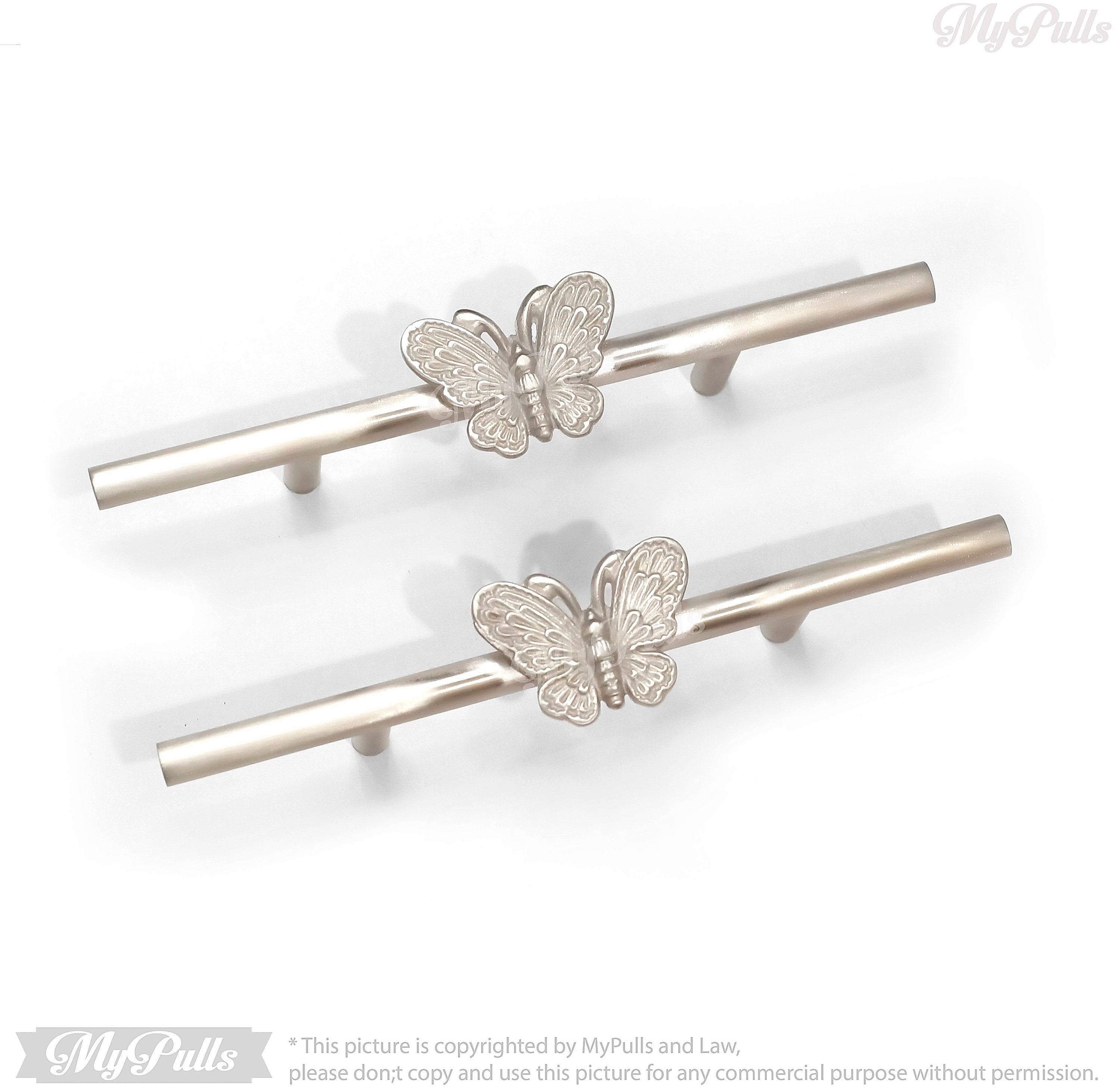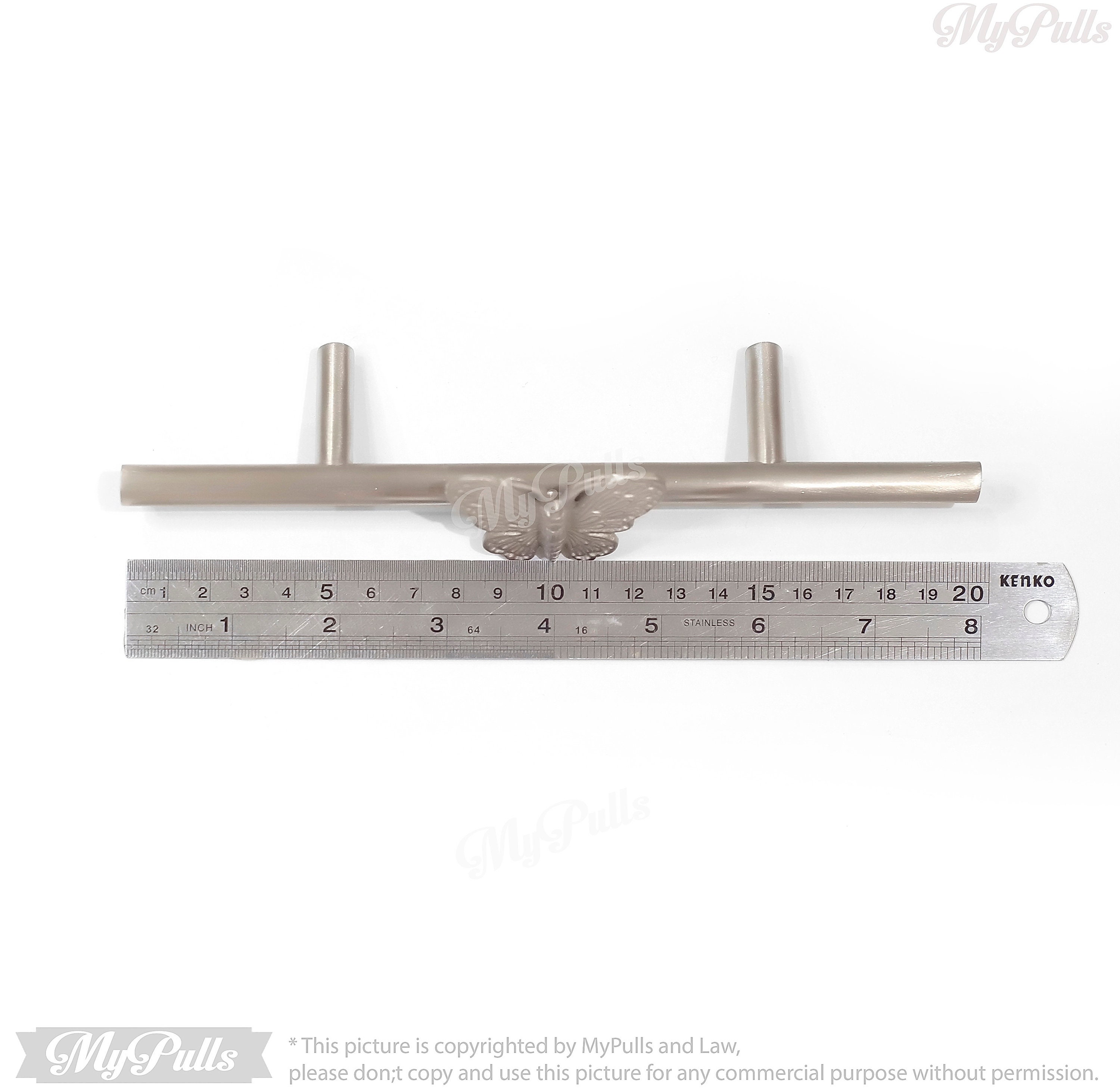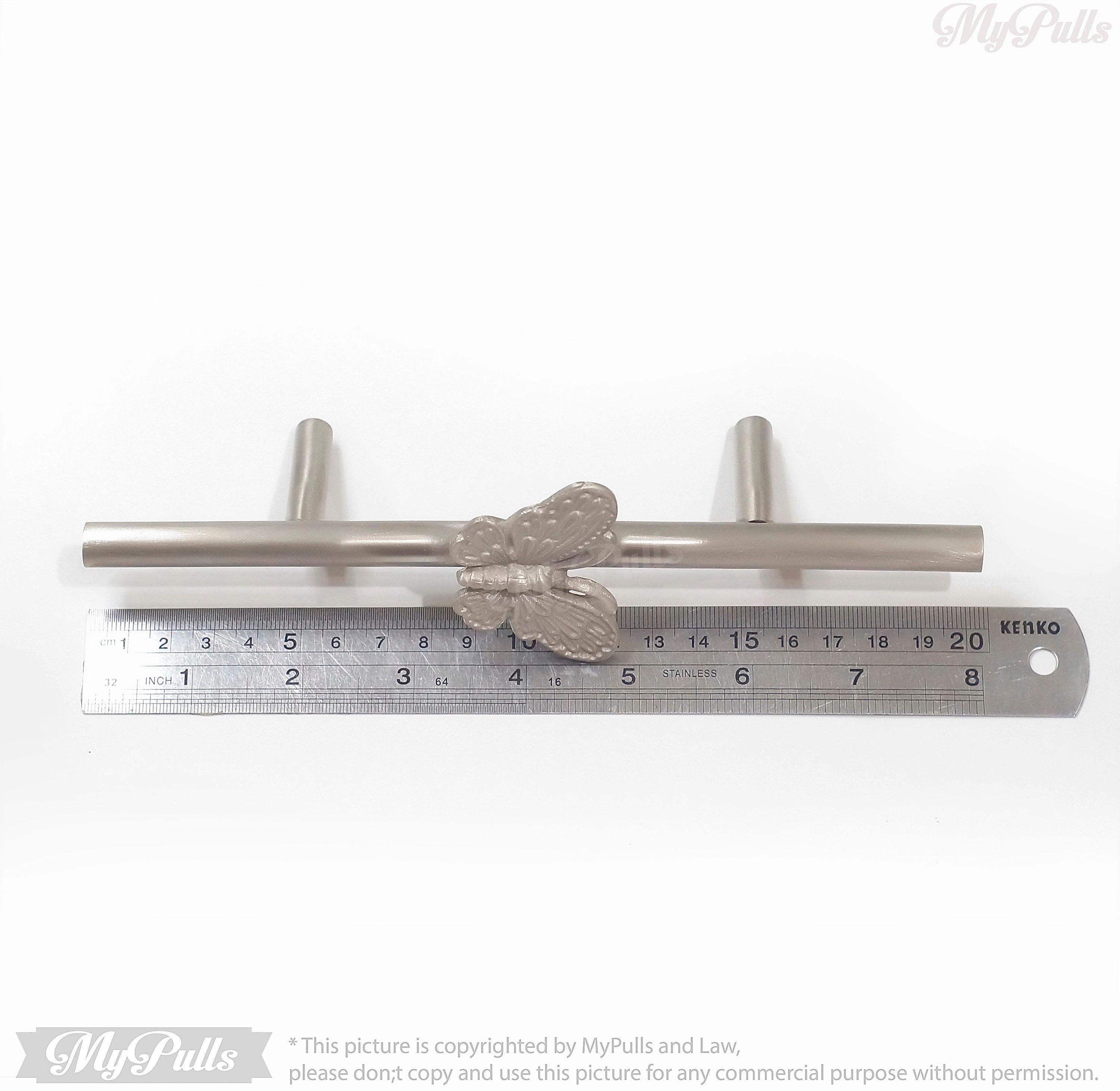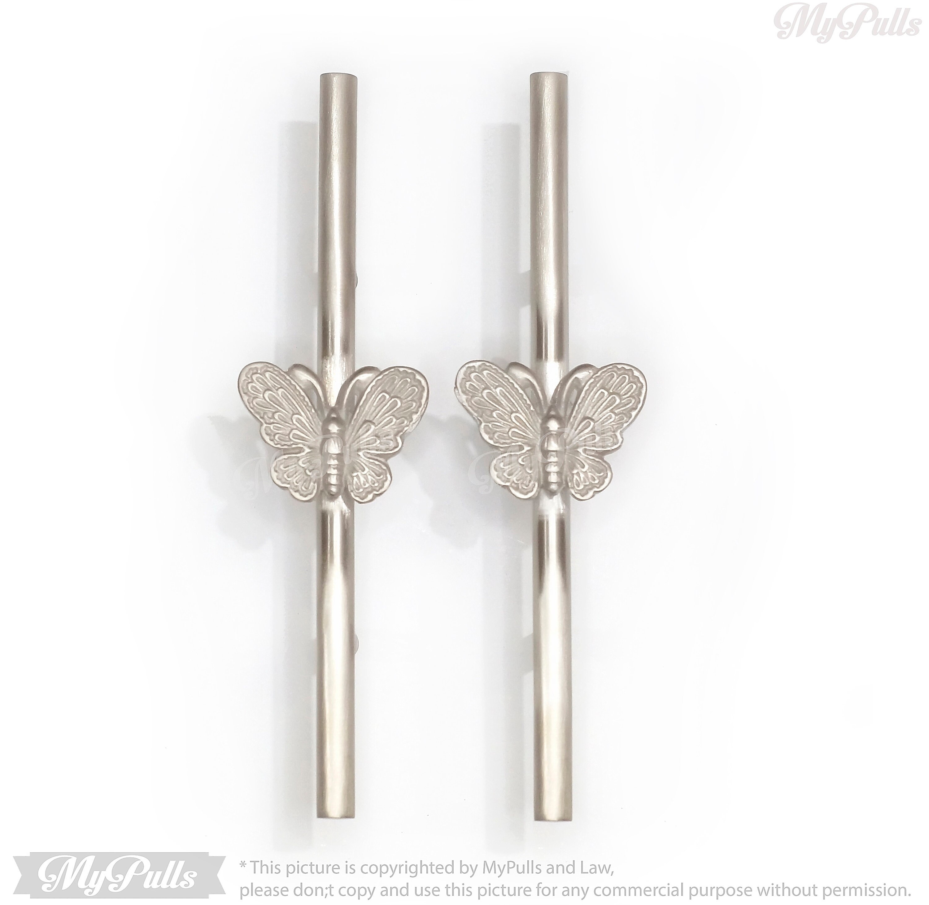 7.78" inches Set of 2 pcs Solid Brass Butterfly Pull handles - Silver Doff Door Cabinet Brass Drawer Door Pulls