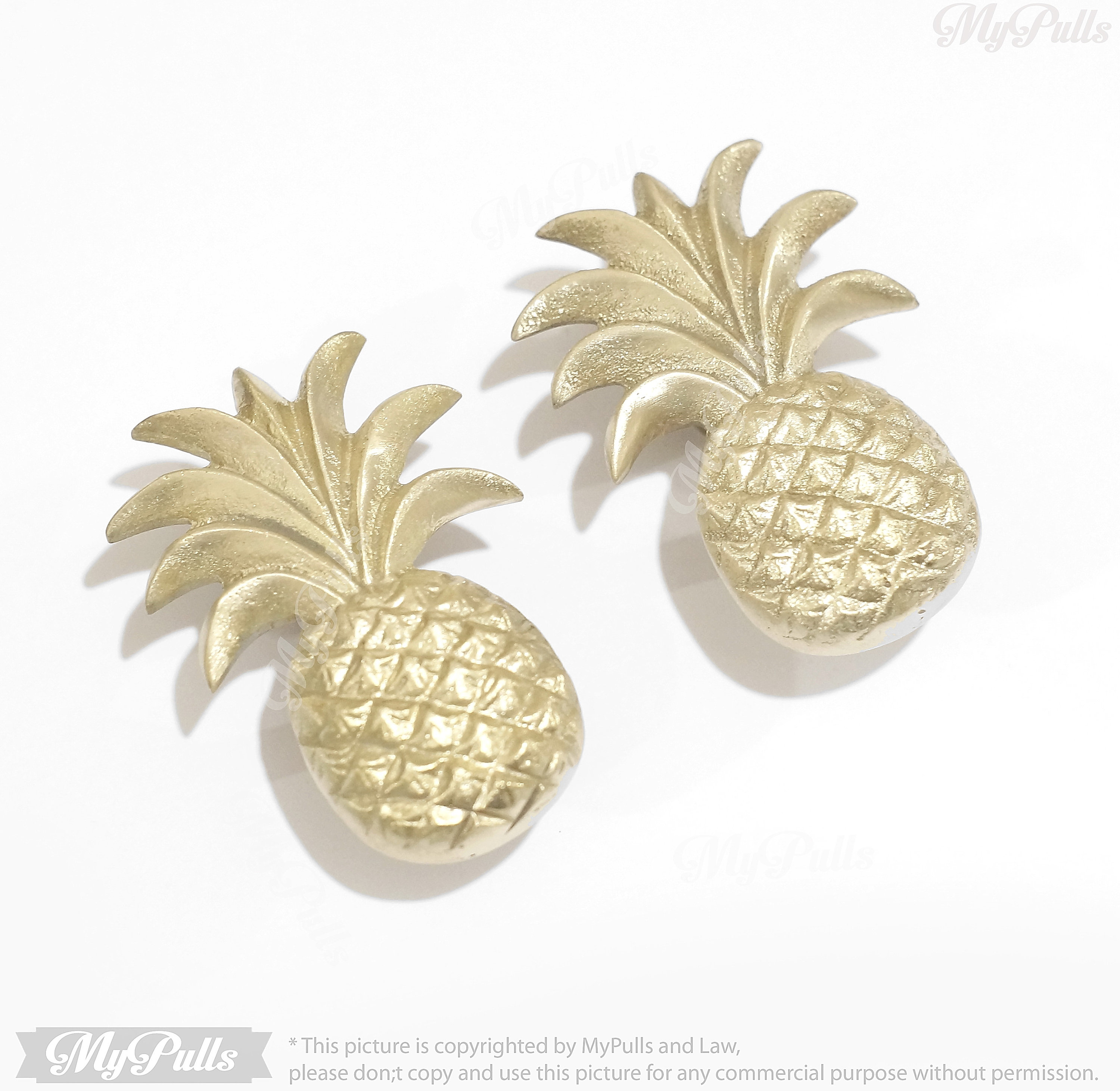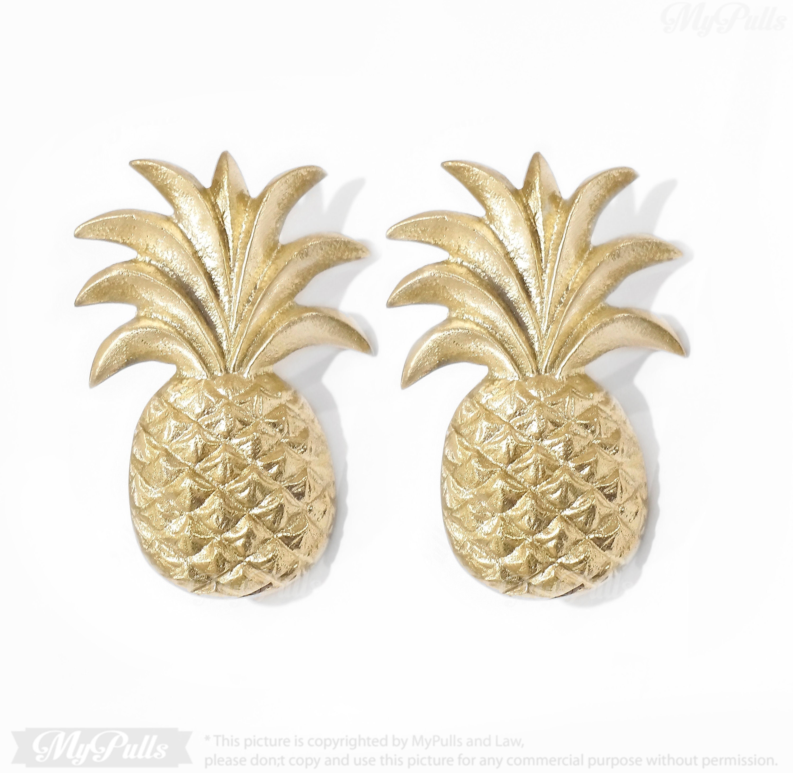 Set of 2 pcs Solid Brass PINEAPPLE Tropical Knob pulls Brass Cabinet Drawer Handle Door Pulls