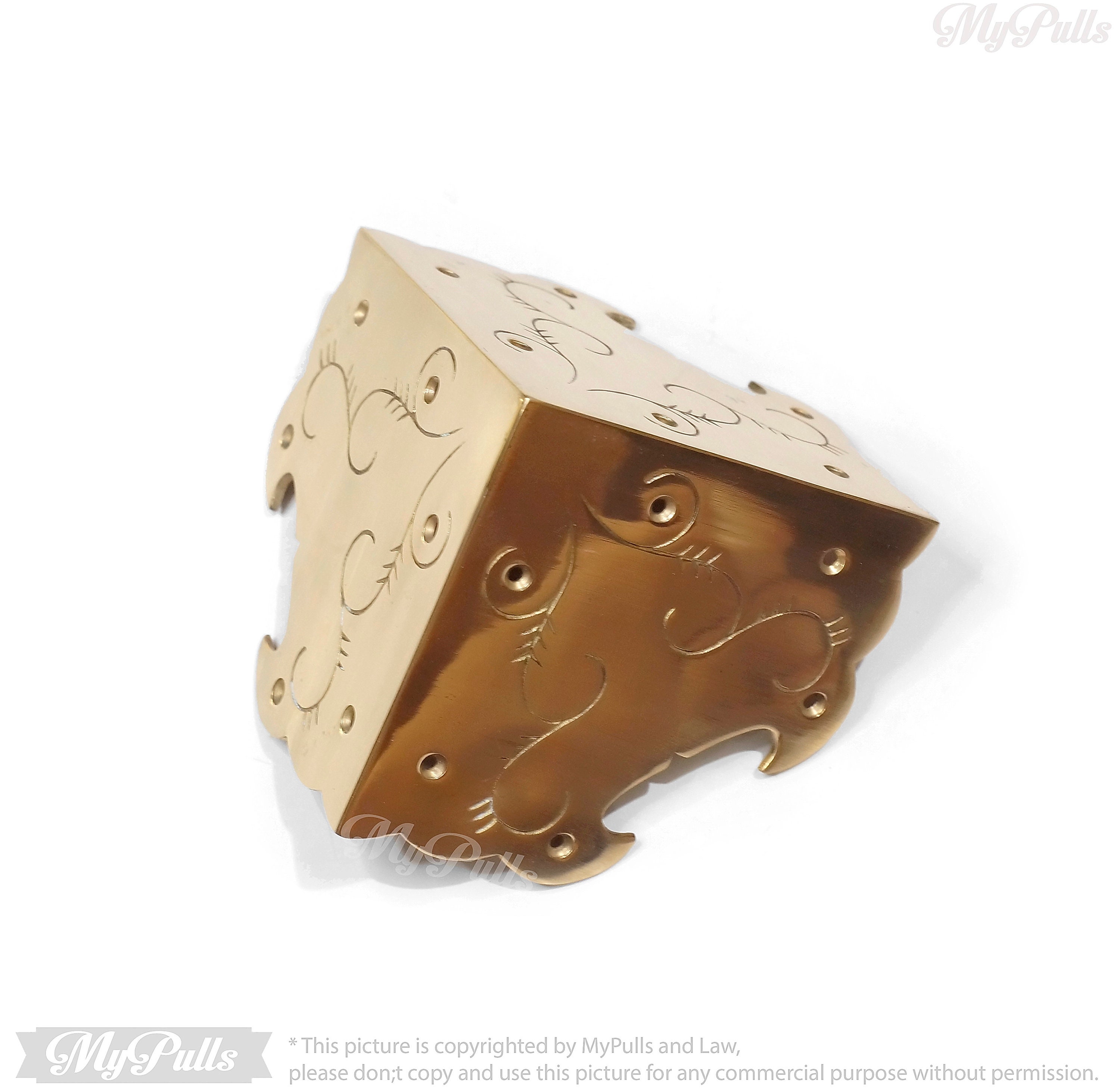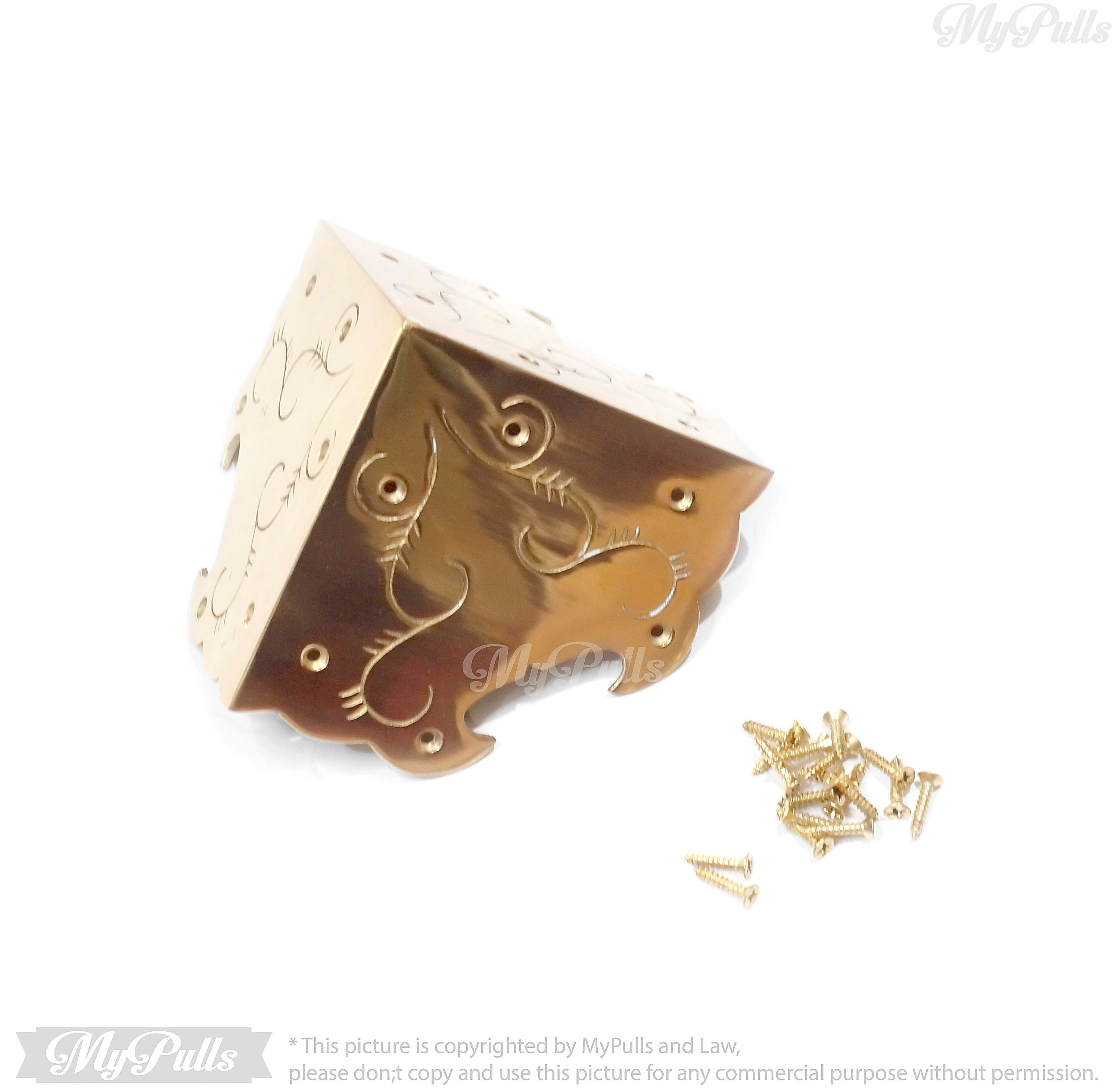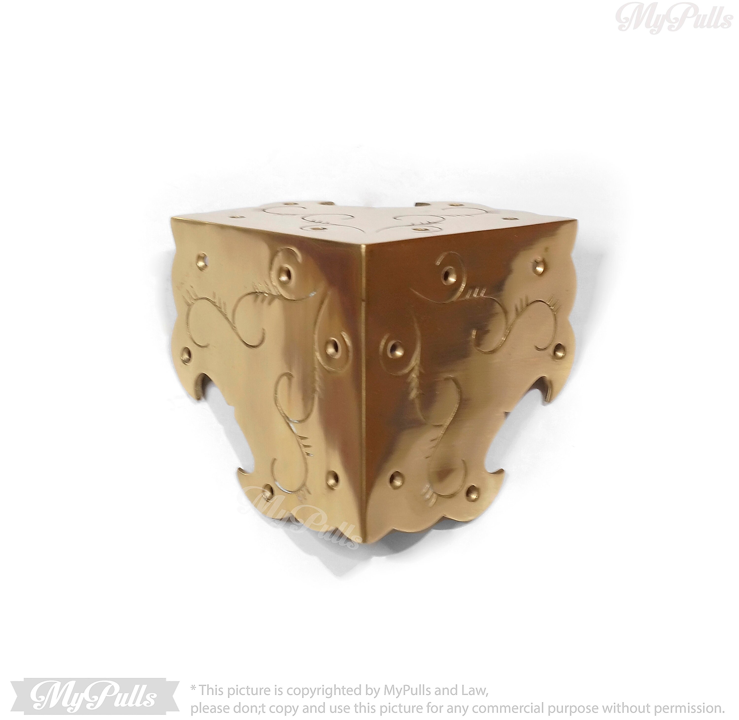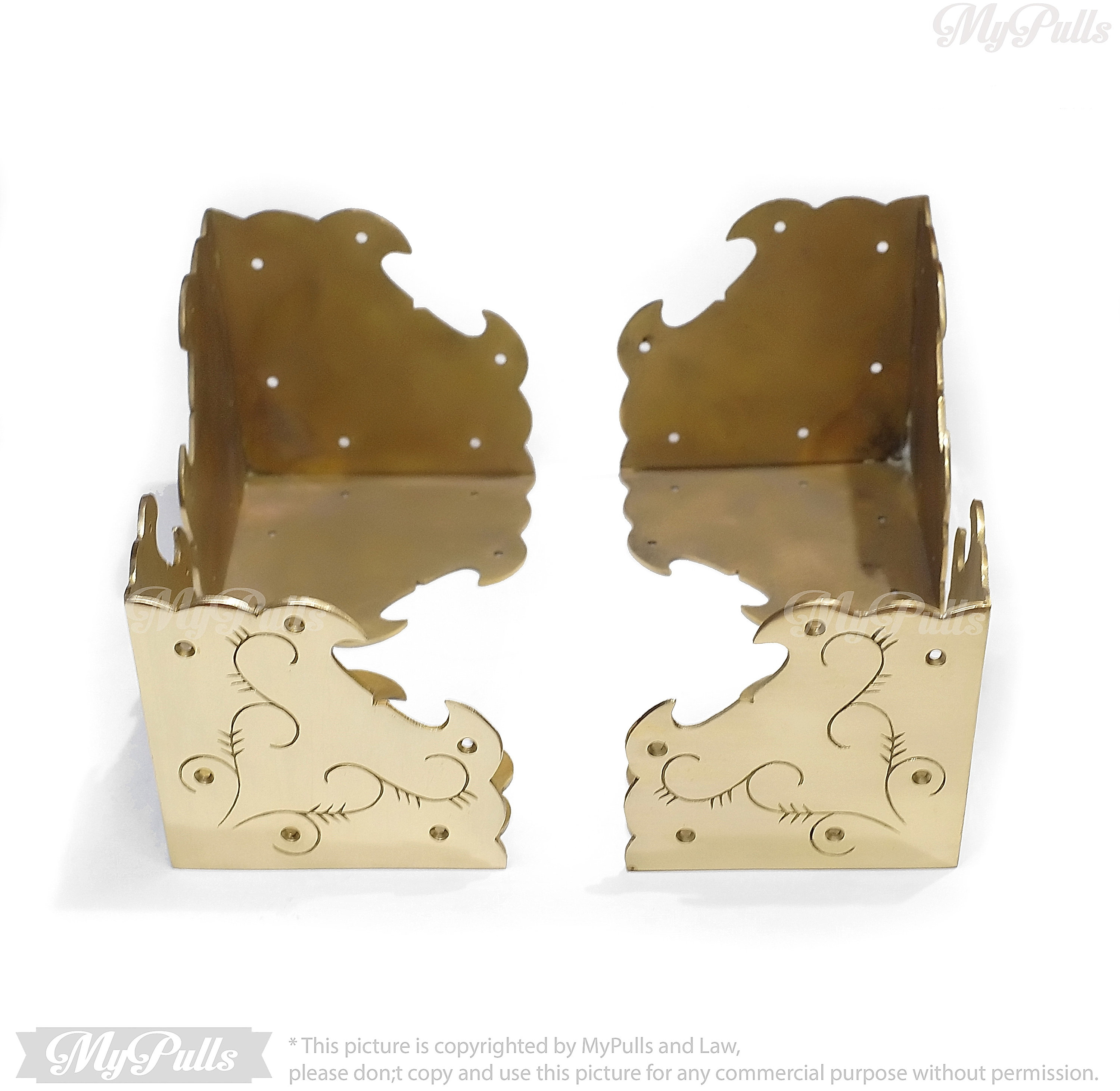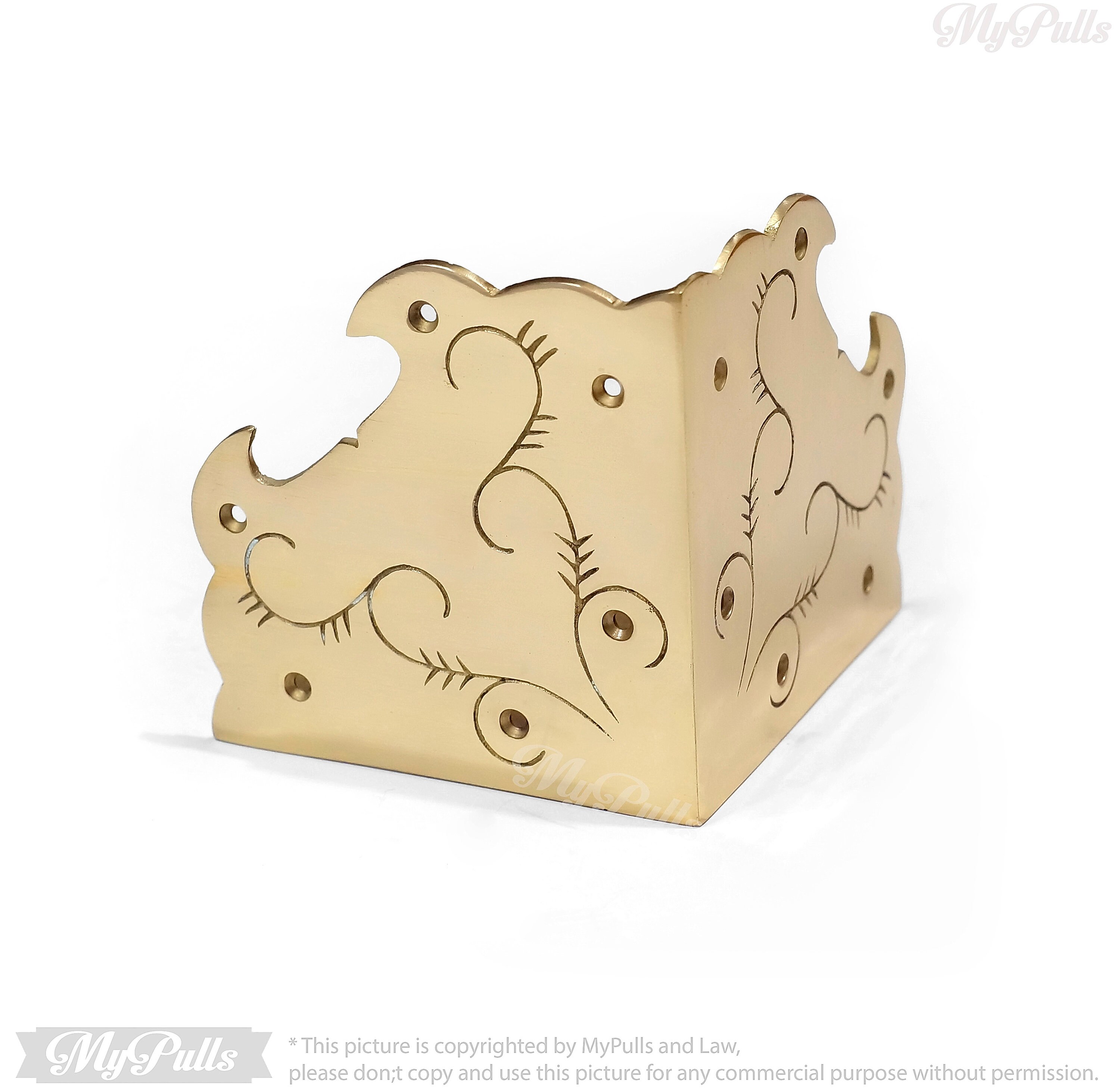 SOLID BRASS BIG FLORAL PROTECTORS GUARD - This listing for 3.75"x 3.75" inches Big Floral carved Table Corner Protector Guard with Gold Finish include a matching color screws for these Solid Brass Corner Protectors.