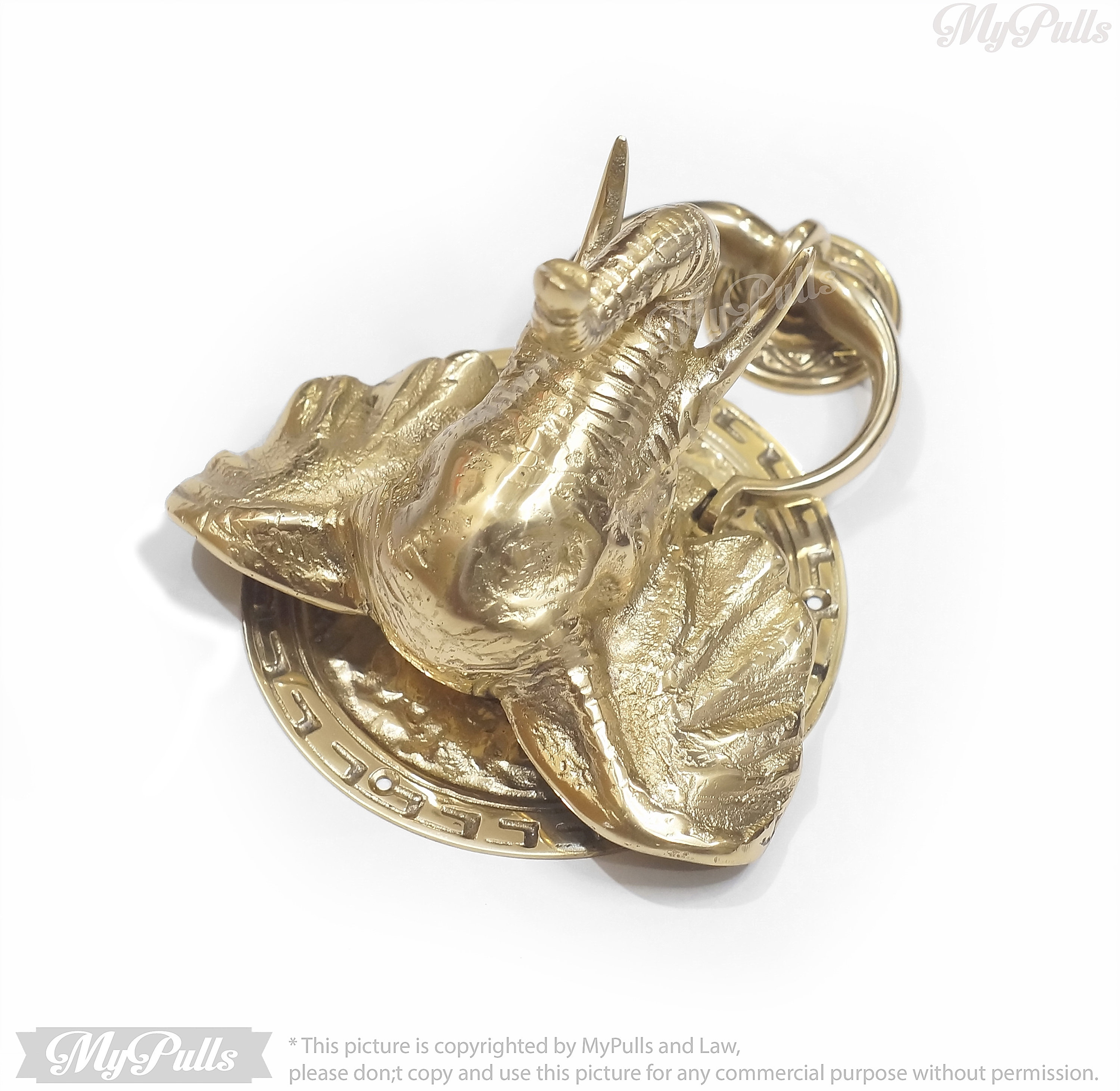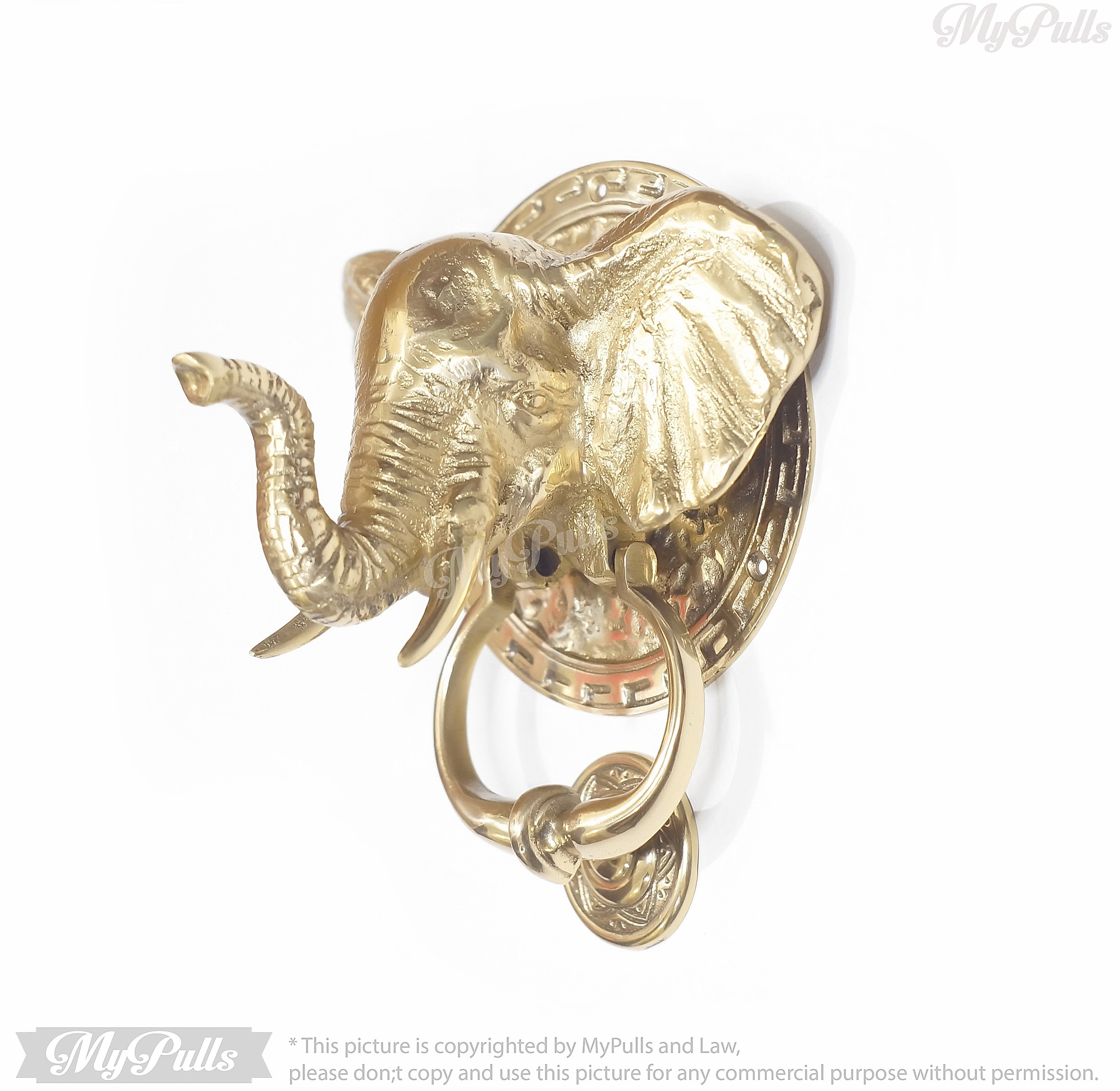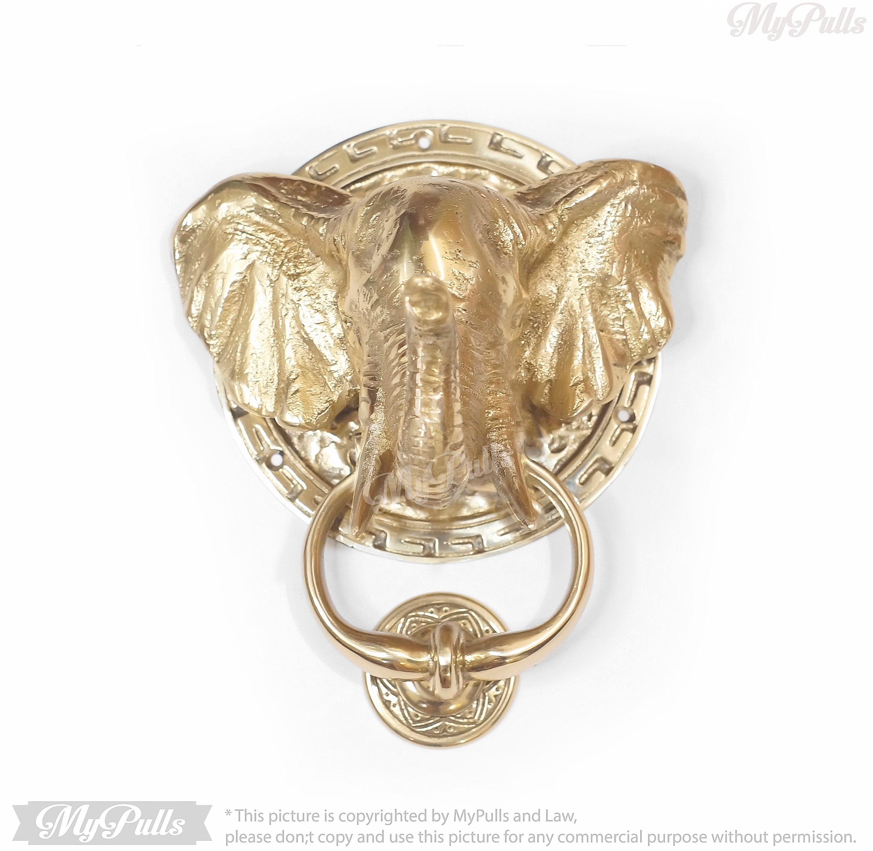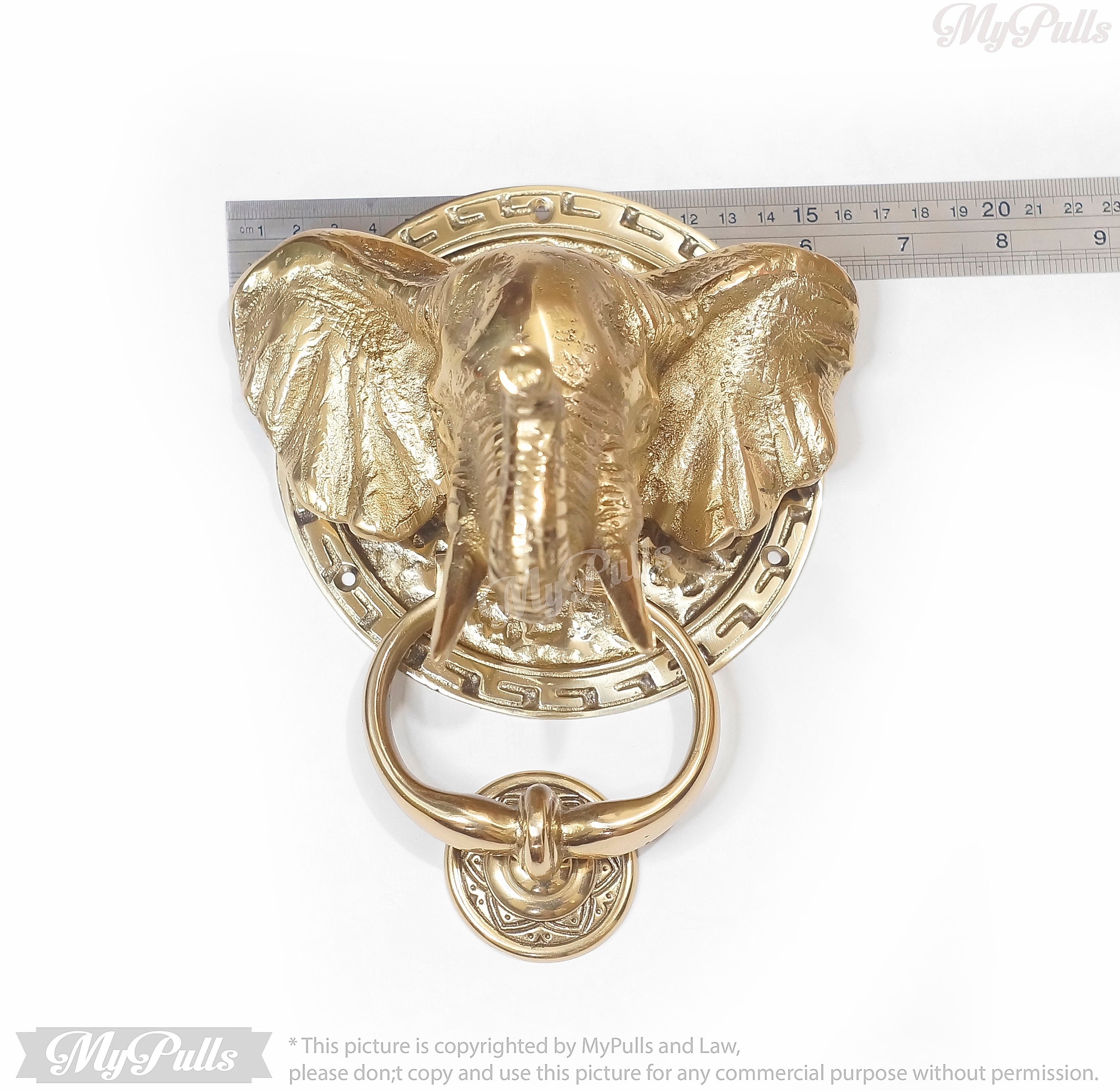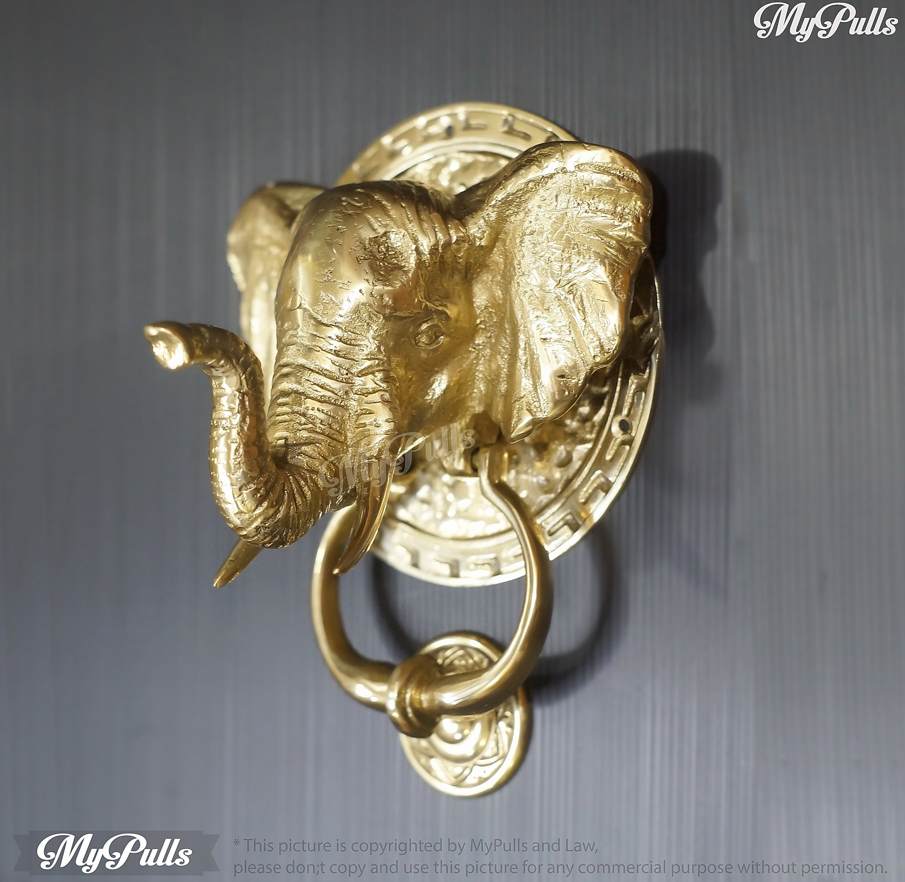 SOLID BRASS ELEPHANT DOOR KNOCKER - This Brass Elephants Head Front Door Knocker will be great for your front door, entry door and for any your home decor. and this door knocker will include Door hit protector and a screws for fitting all these Solid Brass door knocker.