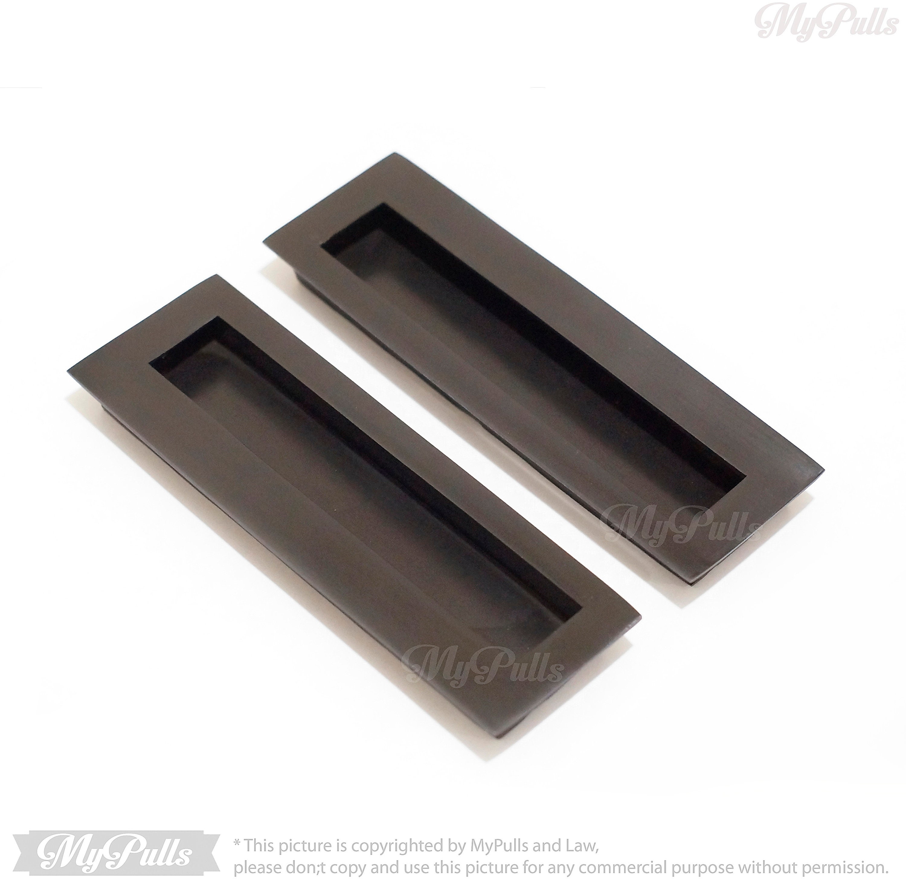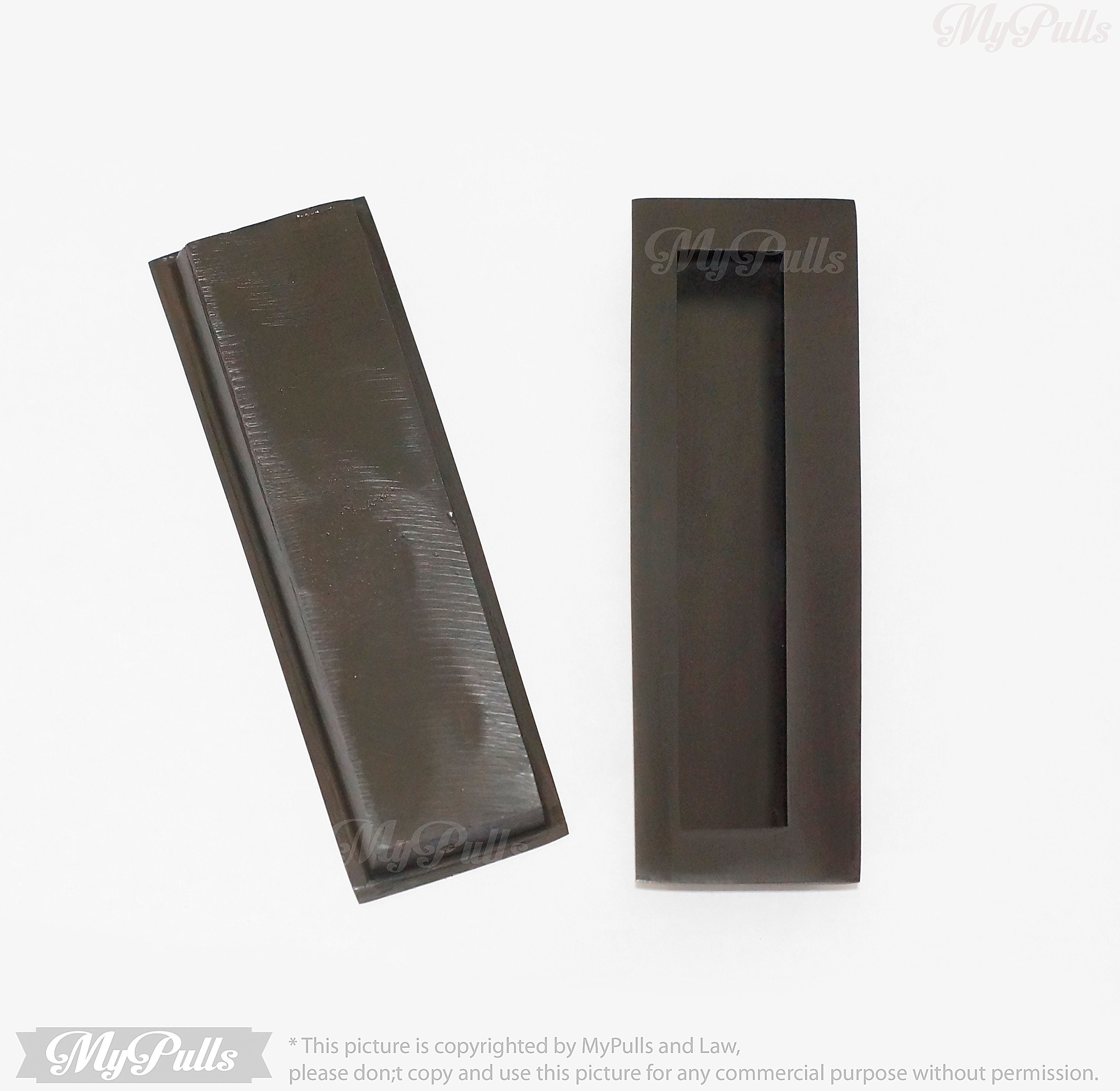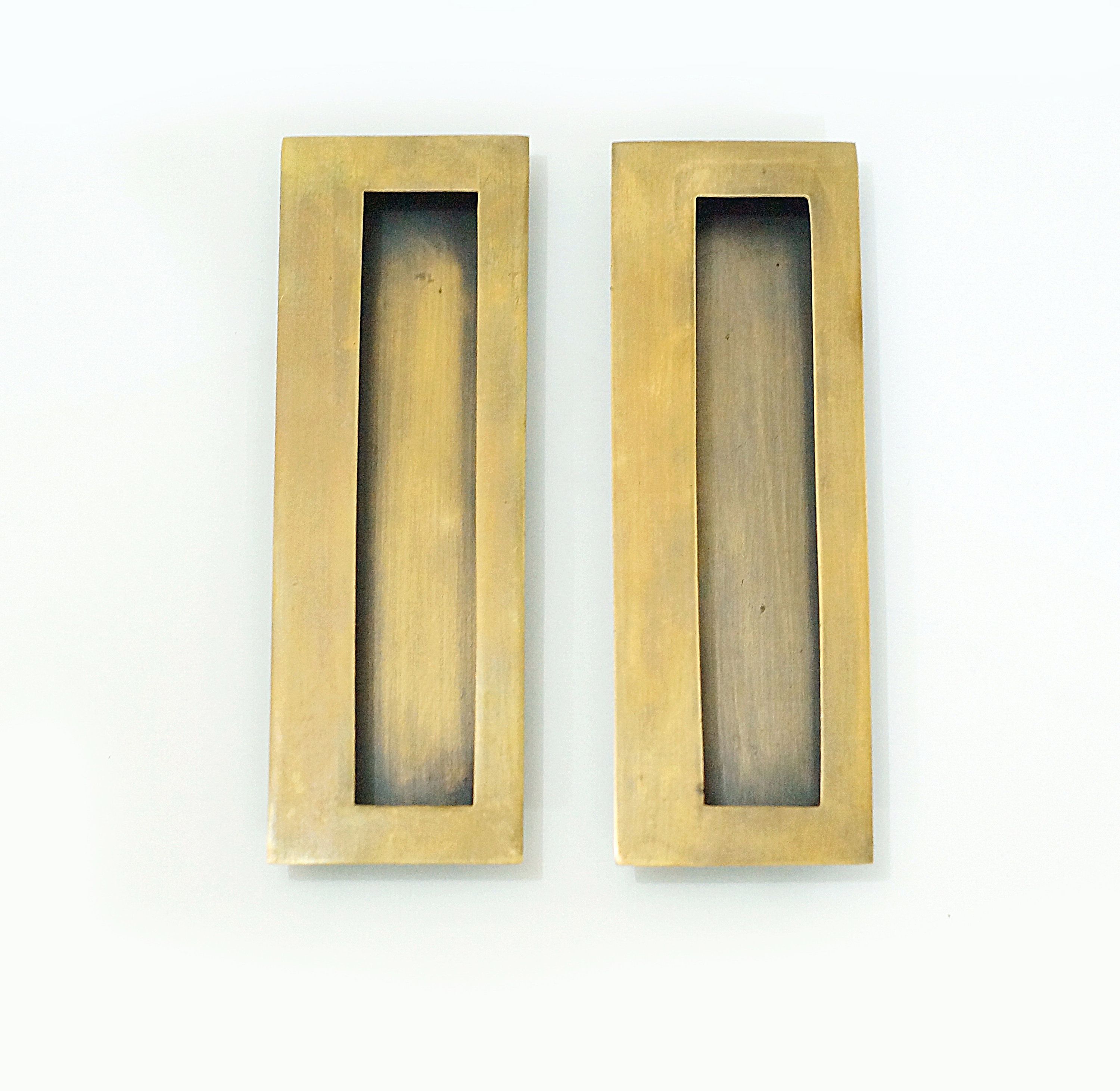 5.90" inches Set of 2 pcs Solid Brass Recessed FLUSH handle - Black Matte Rectangular Sliding Door Cabinet Brass Door Drawer Pulls