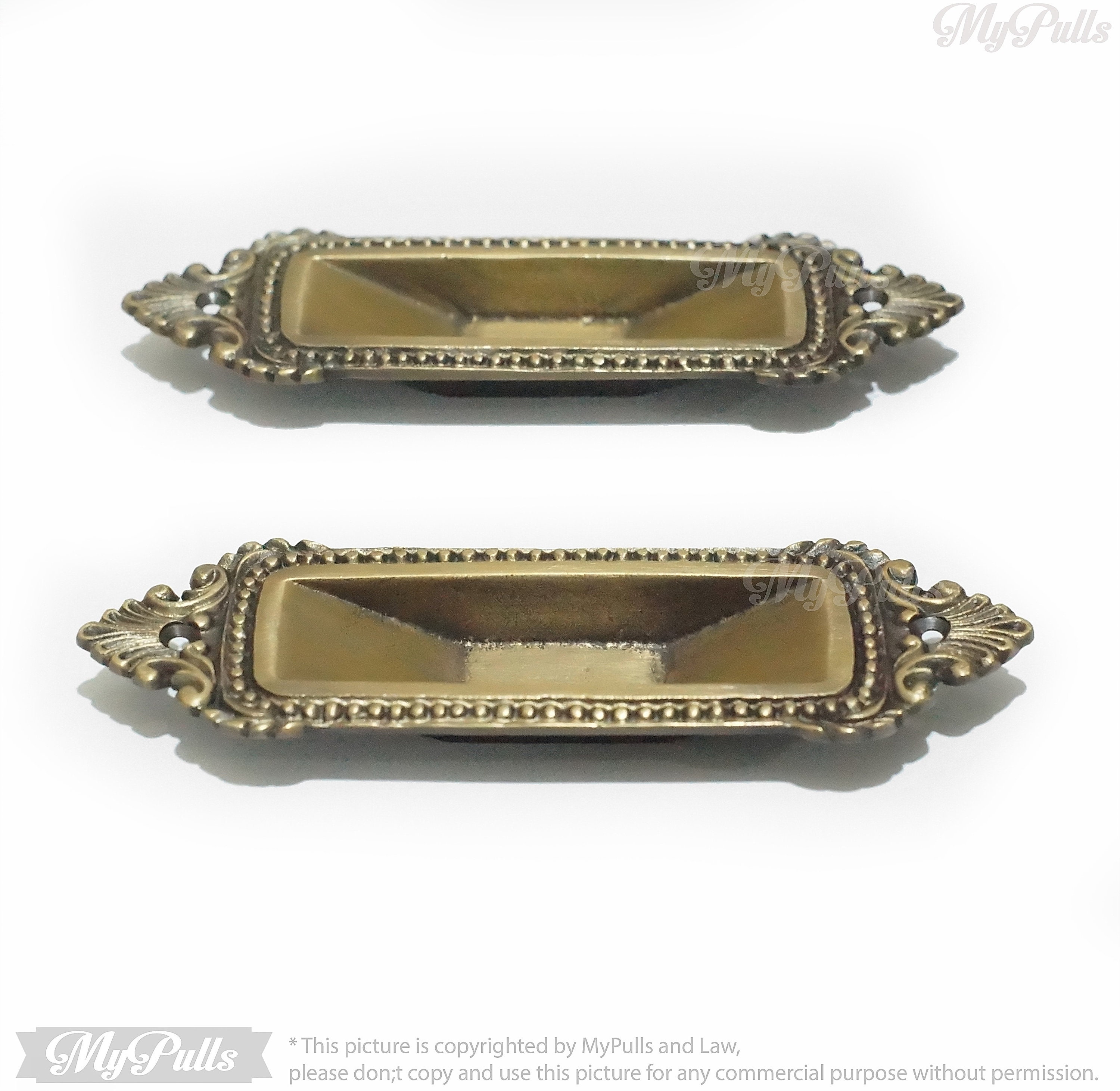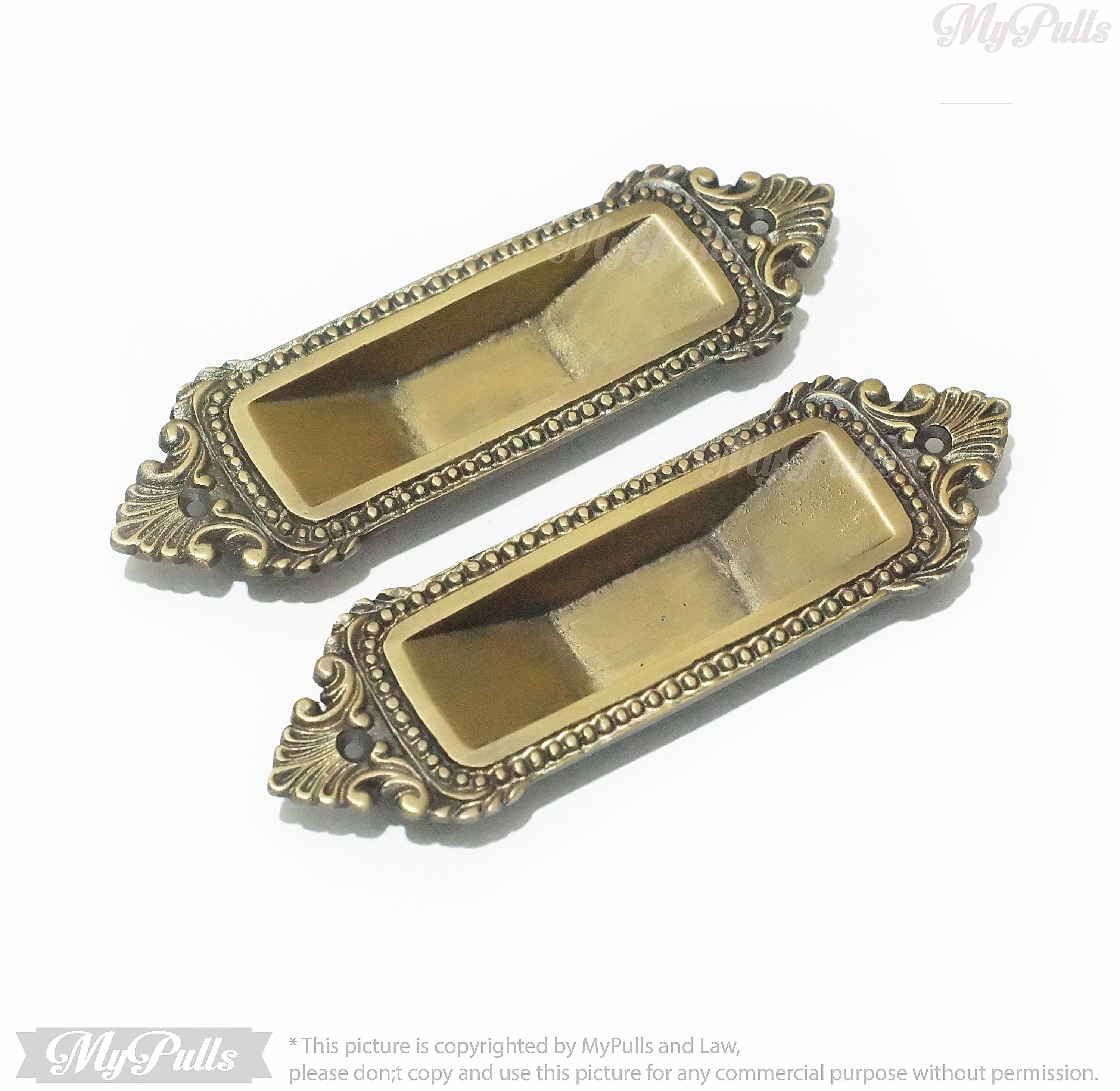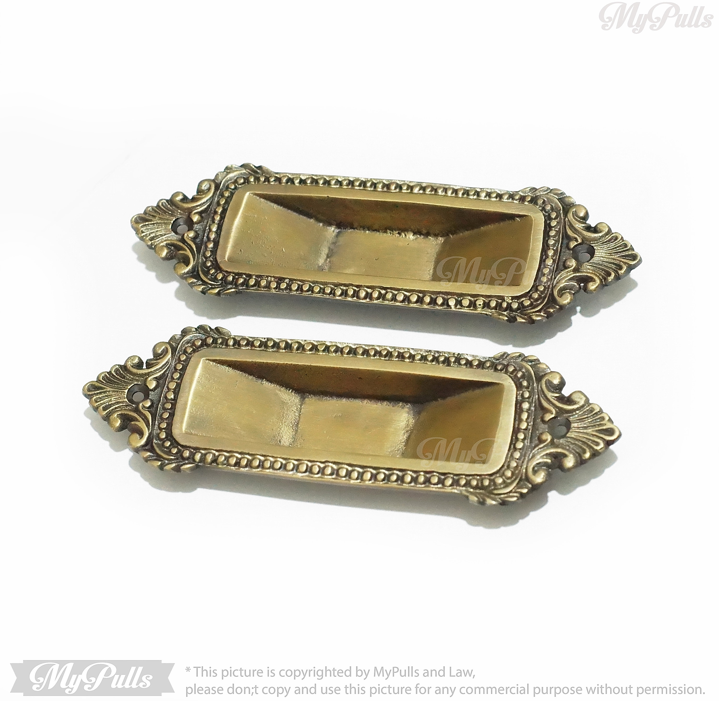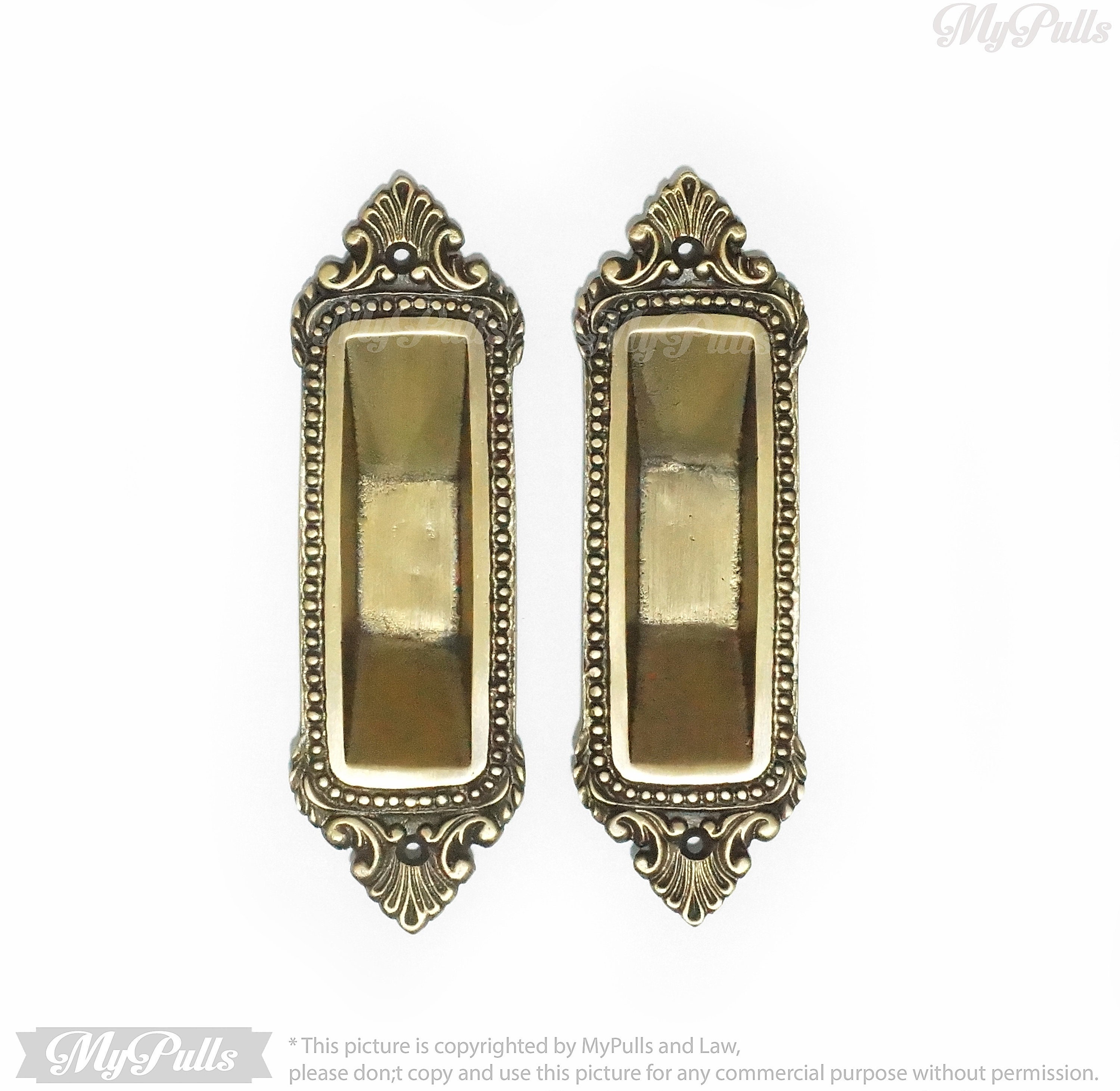 SOLID BRASS SLIDING POCKET DOOR HANDLE - Transform your doors into a statement piece with this elegant Vintage Brass Sliding Pocket Door Handle. With its classic Victorian design, this handle is perfect for upgrading the look of your home or office space. Made of solid brass, this durable handle is built to last and will add a touch of sophistication to any sliding door. Measuring 6.30 inches in length, it is the perfect size for any door.