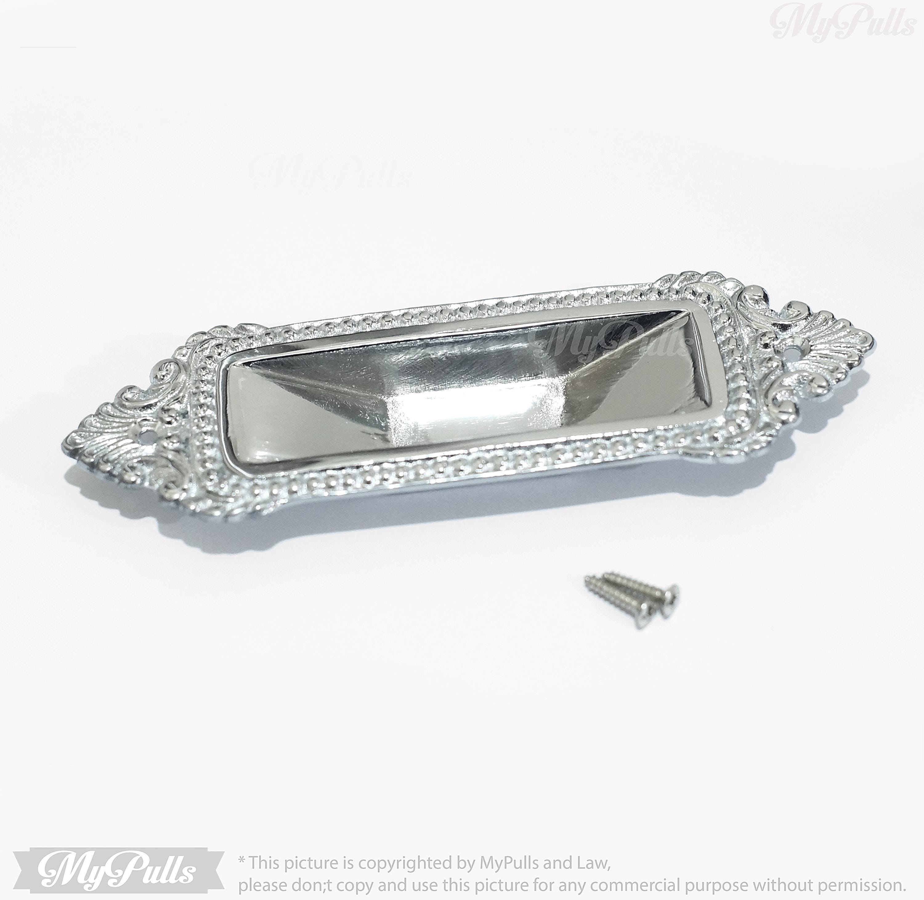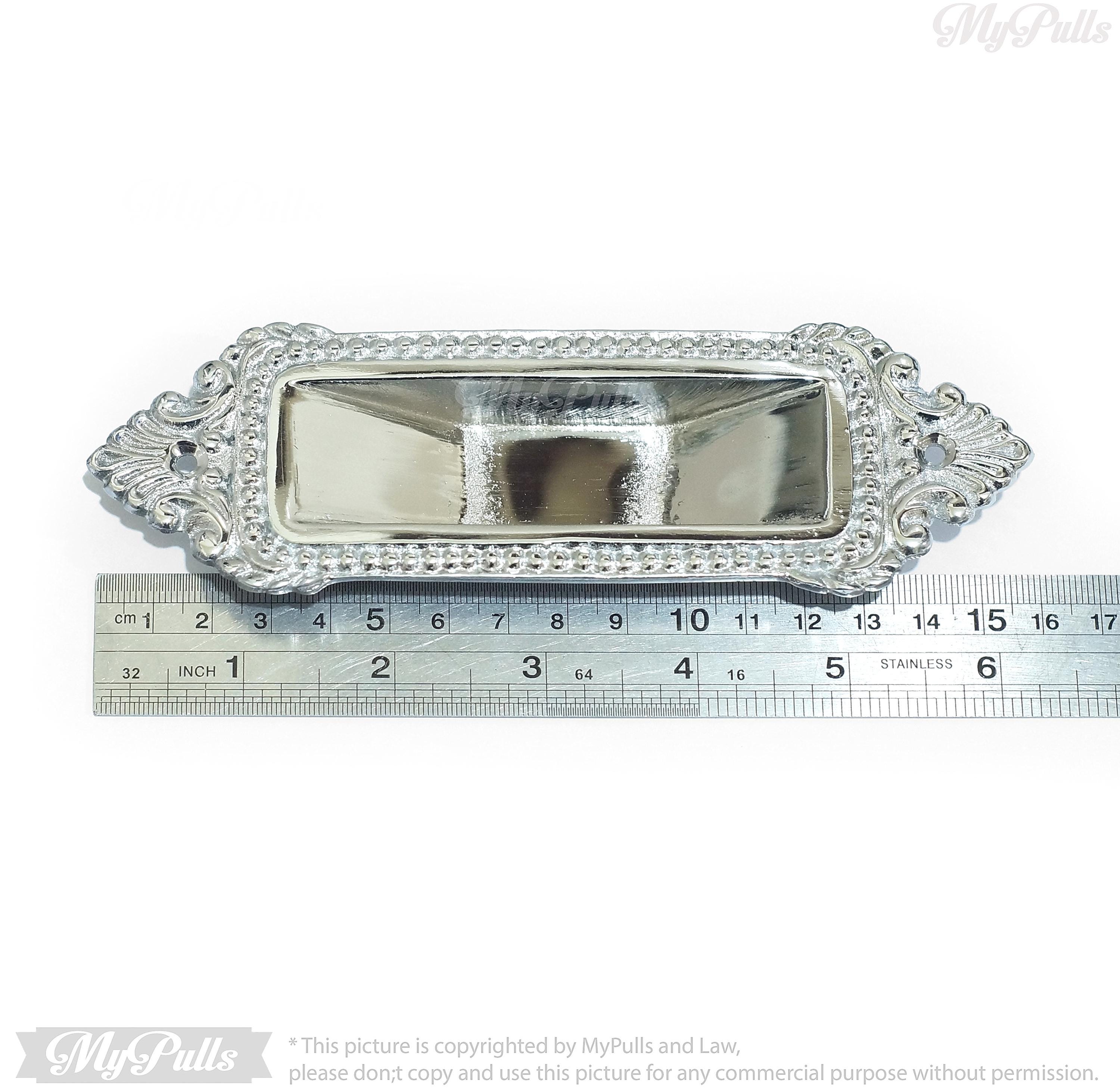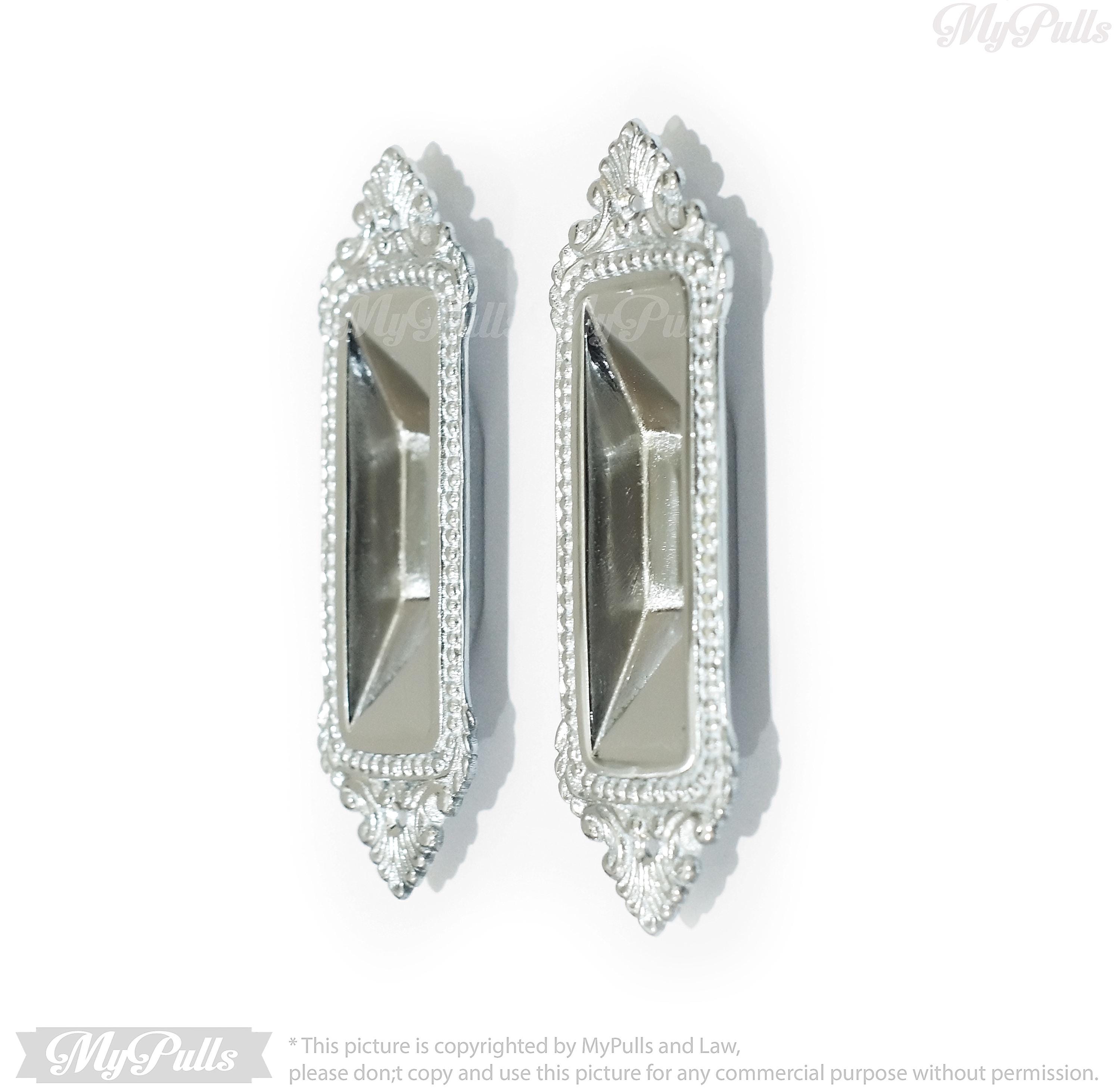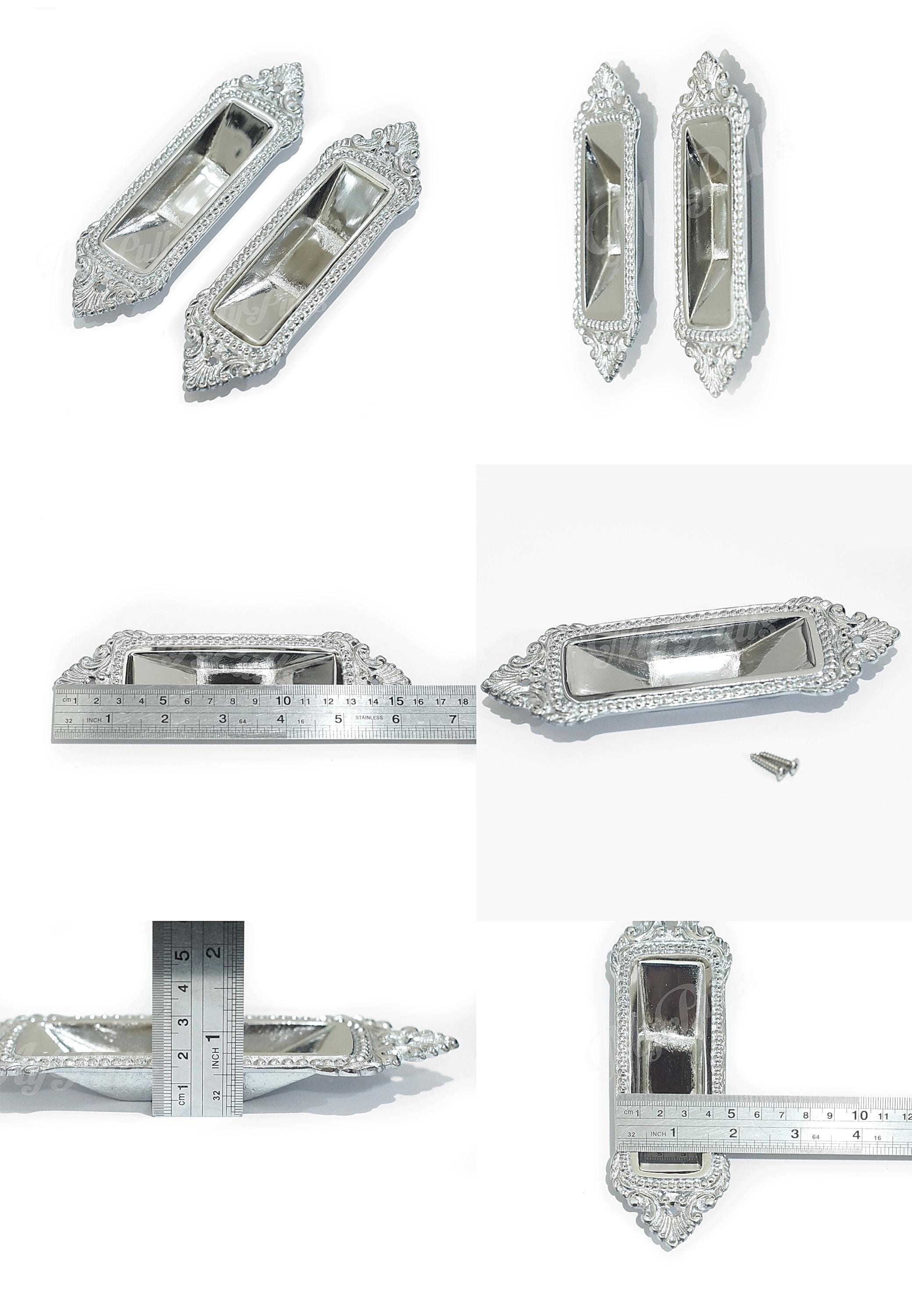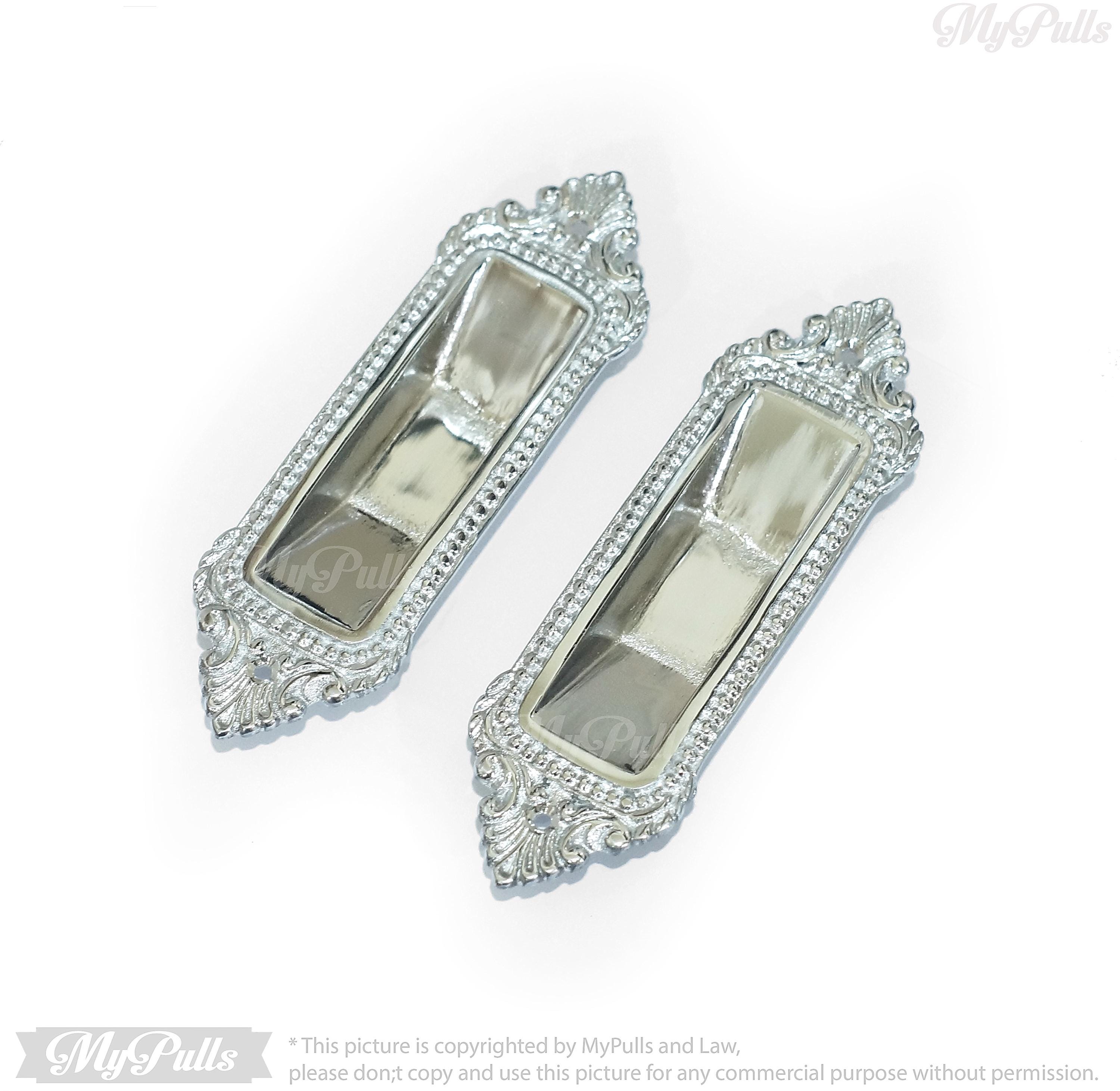 Silver Chrome Finish Solid Brass Sliding Pocket Door Handle - Elegant Victorian Design – 6.30 inch