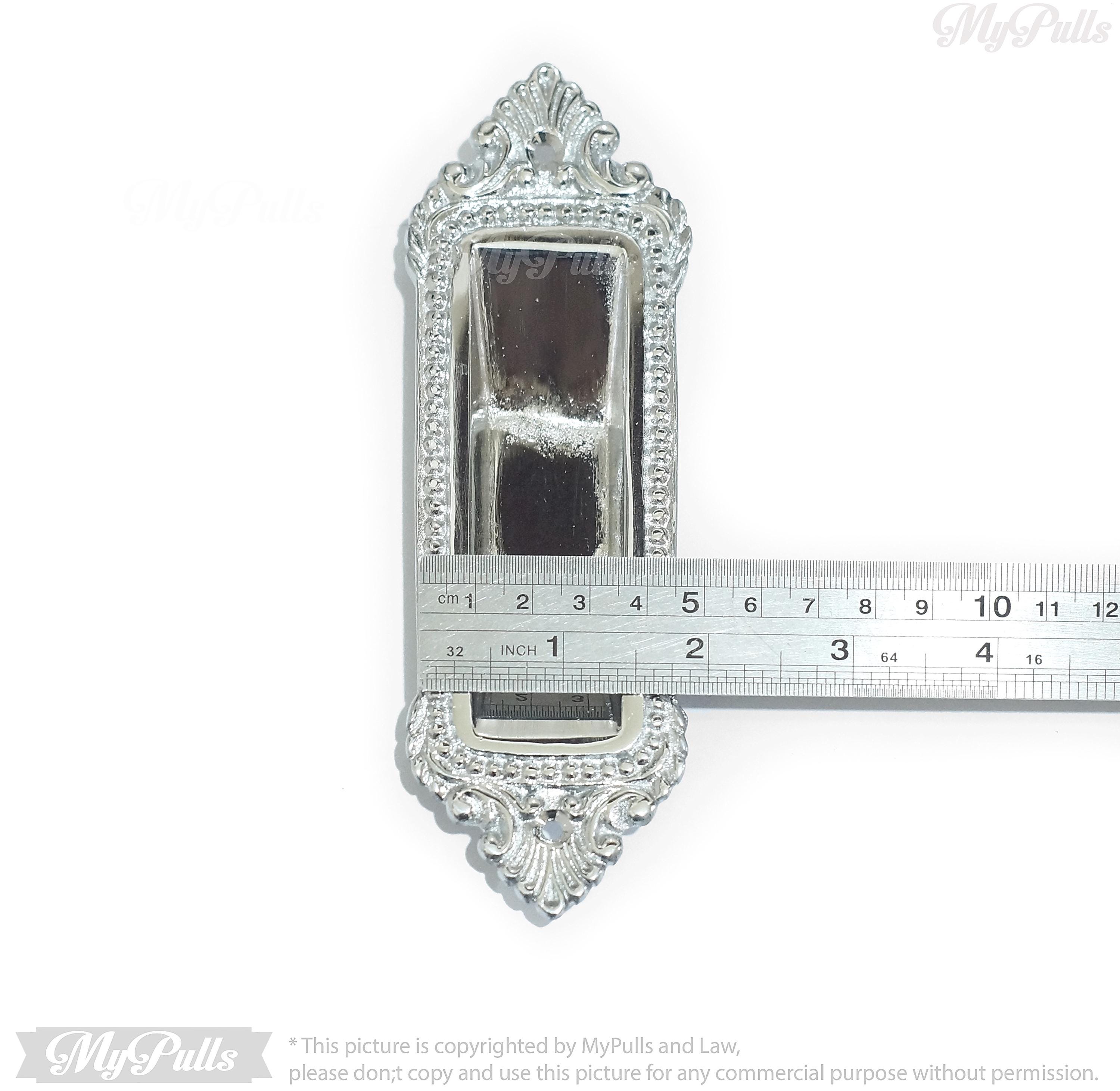 SOLID BRASS SLIDING POCKET DOOR HANDLE - Step into timeless sophistication with the Solid Brass Sliding Pocket Door Handle in a radiant Silver Chrome Finish. Styled with an Elegant Victorian Design, this 6.30-inch (16 cm) door handle is a seamless blend of antique charm and contemporary shine. Crafted from premium solid brass, it guarantees durability, strength, and refined aesthetics.