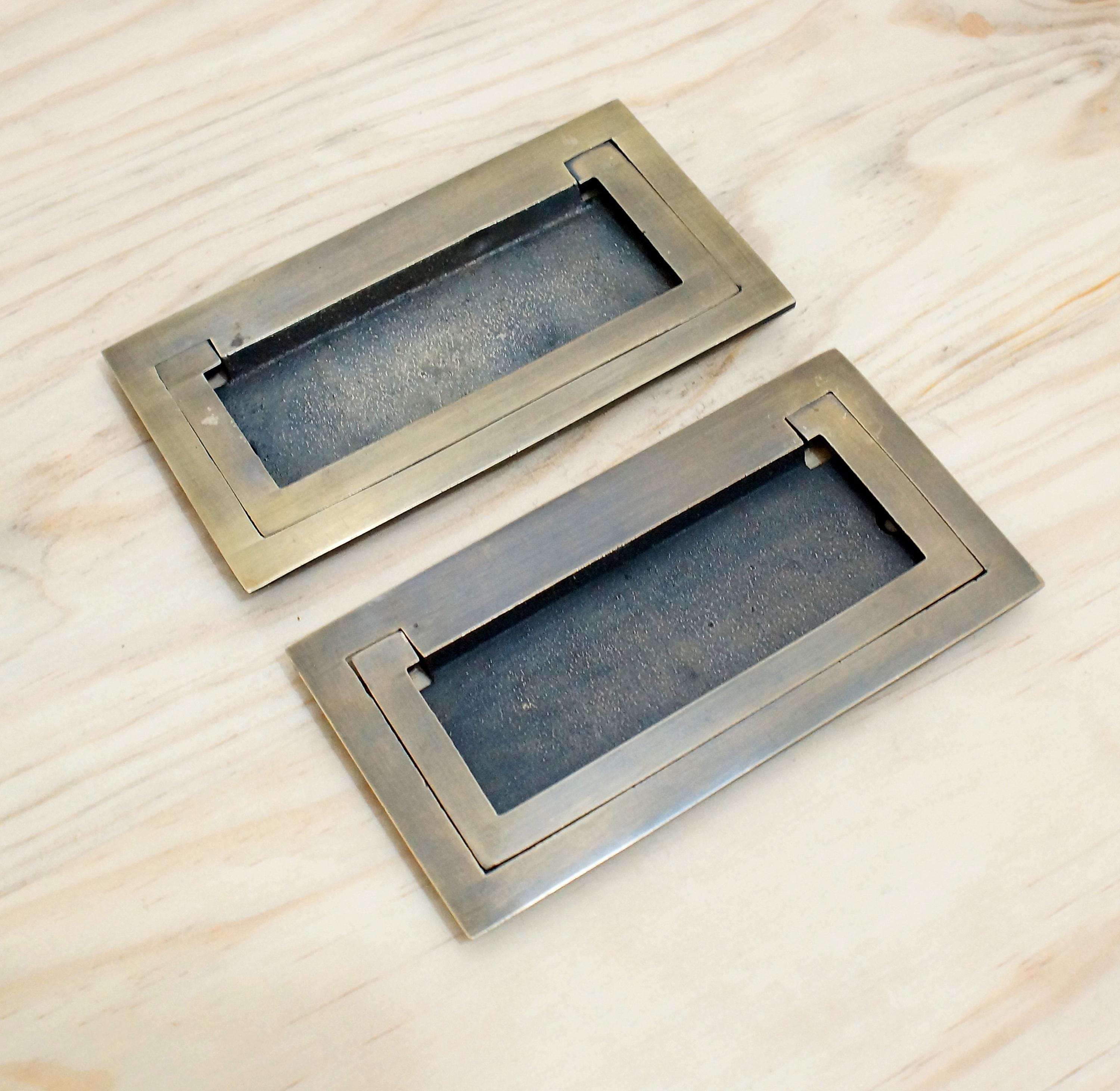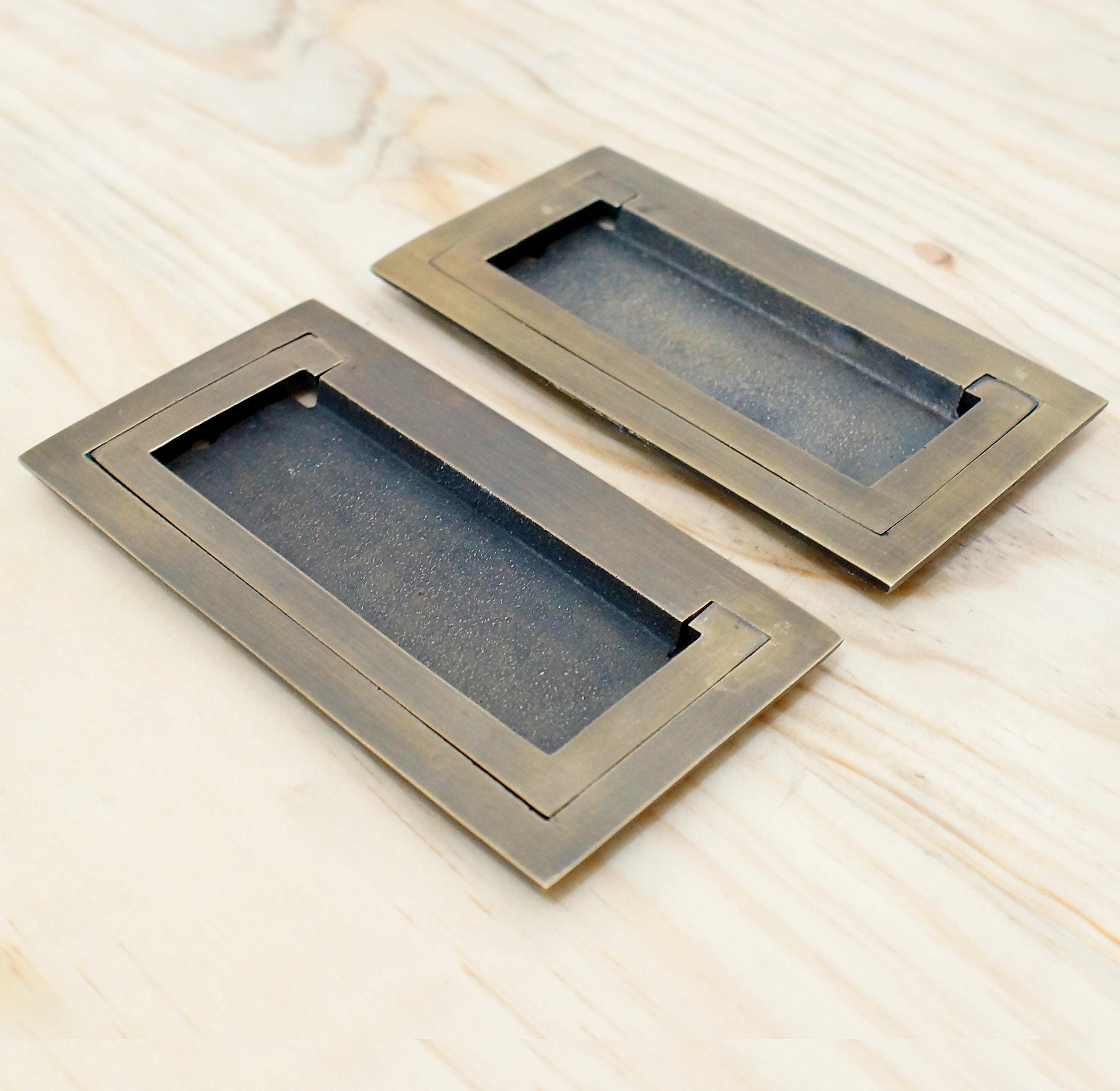 Solid Brass Rectangular Flush Pull Handles – Baldwin Grip Style Lot of 2 | Antique or Polished Gold Finish