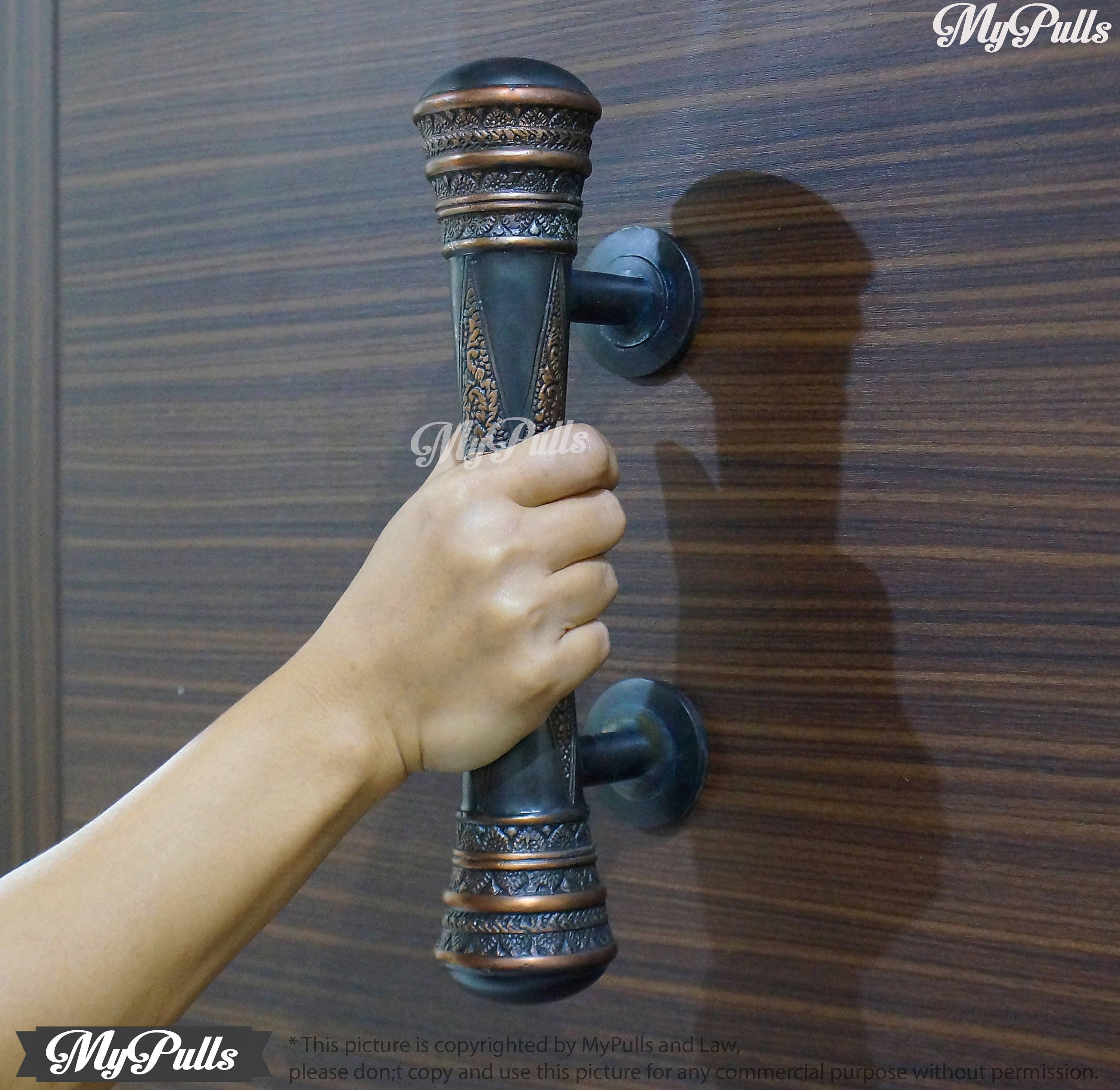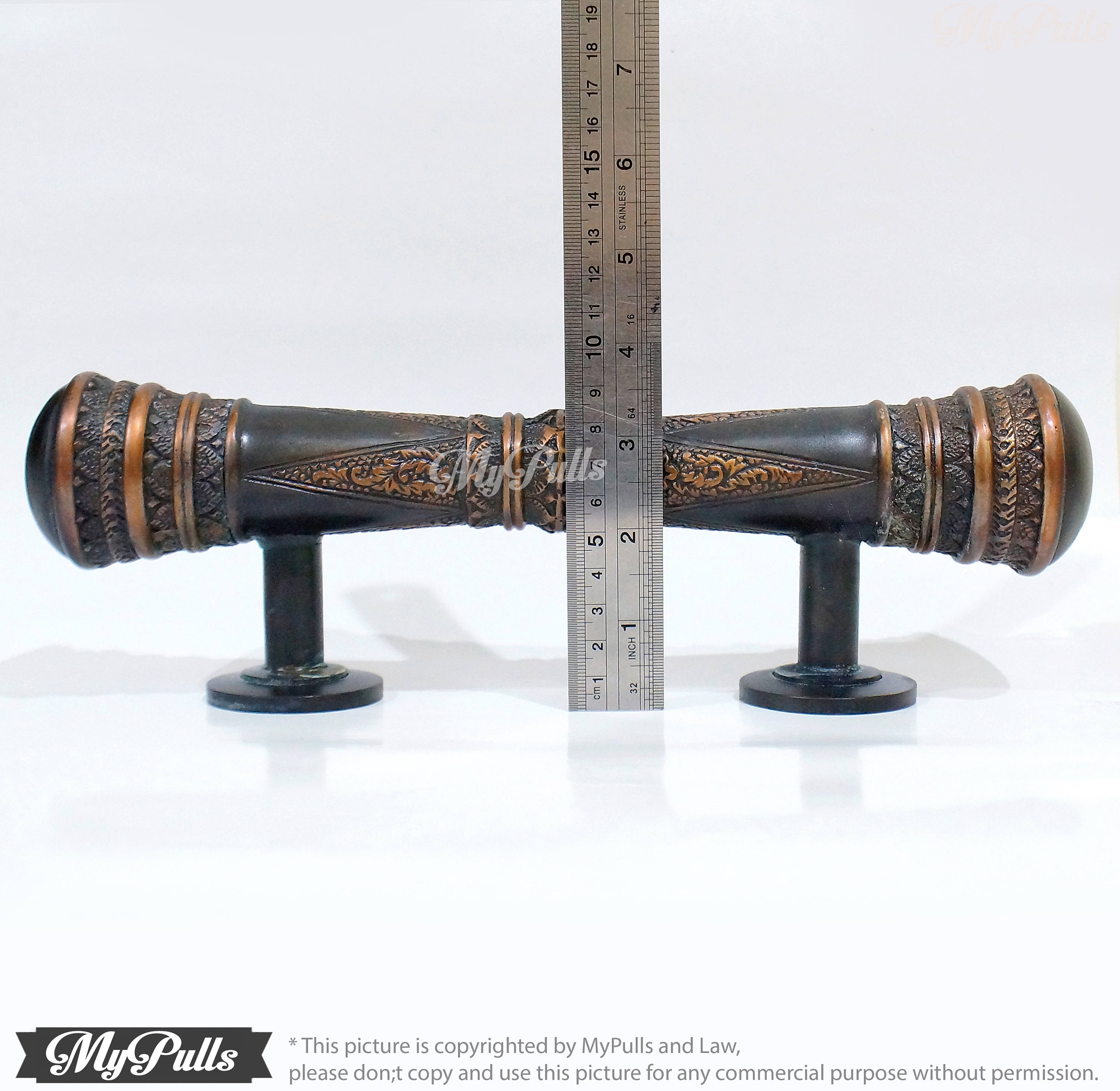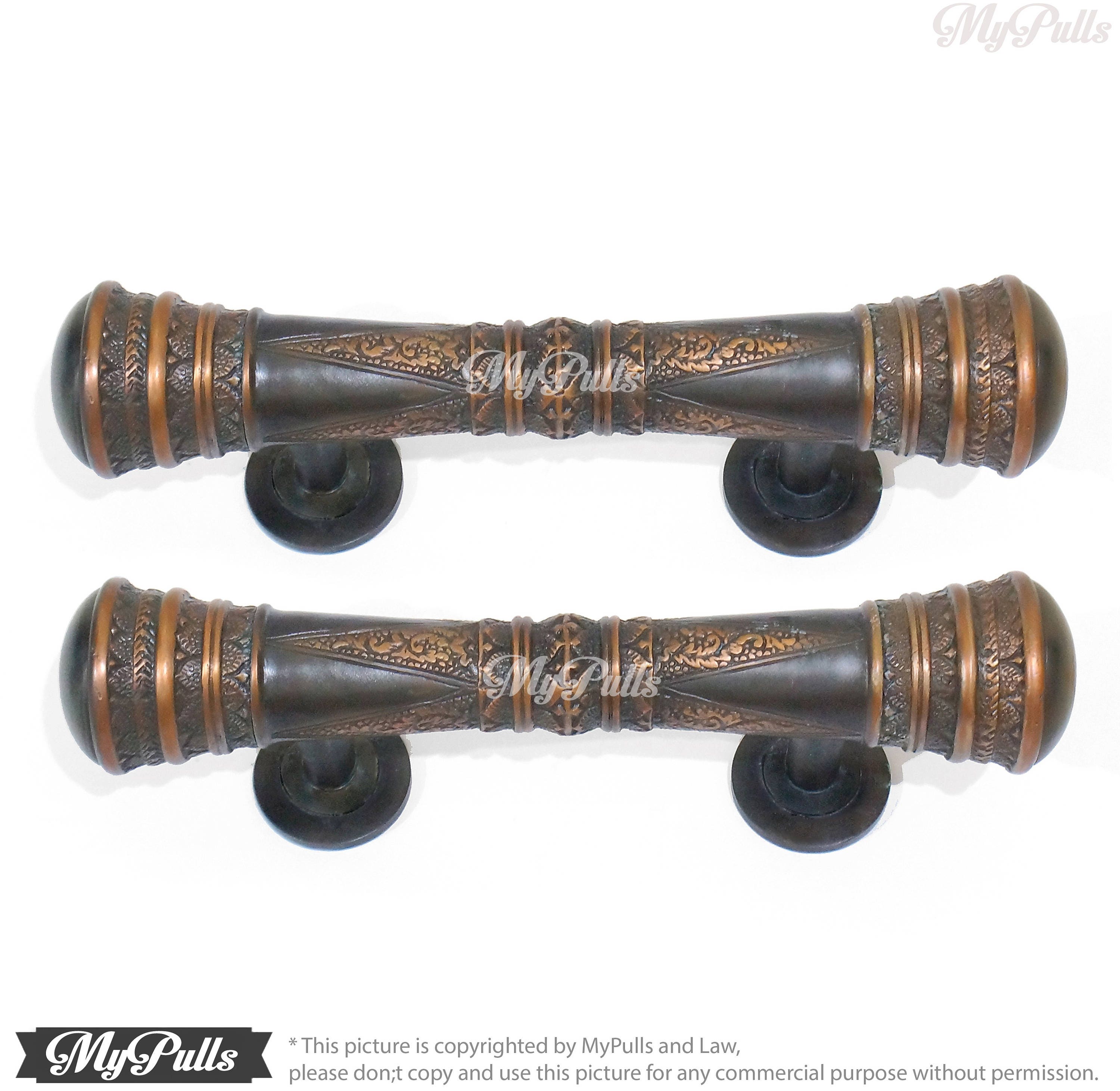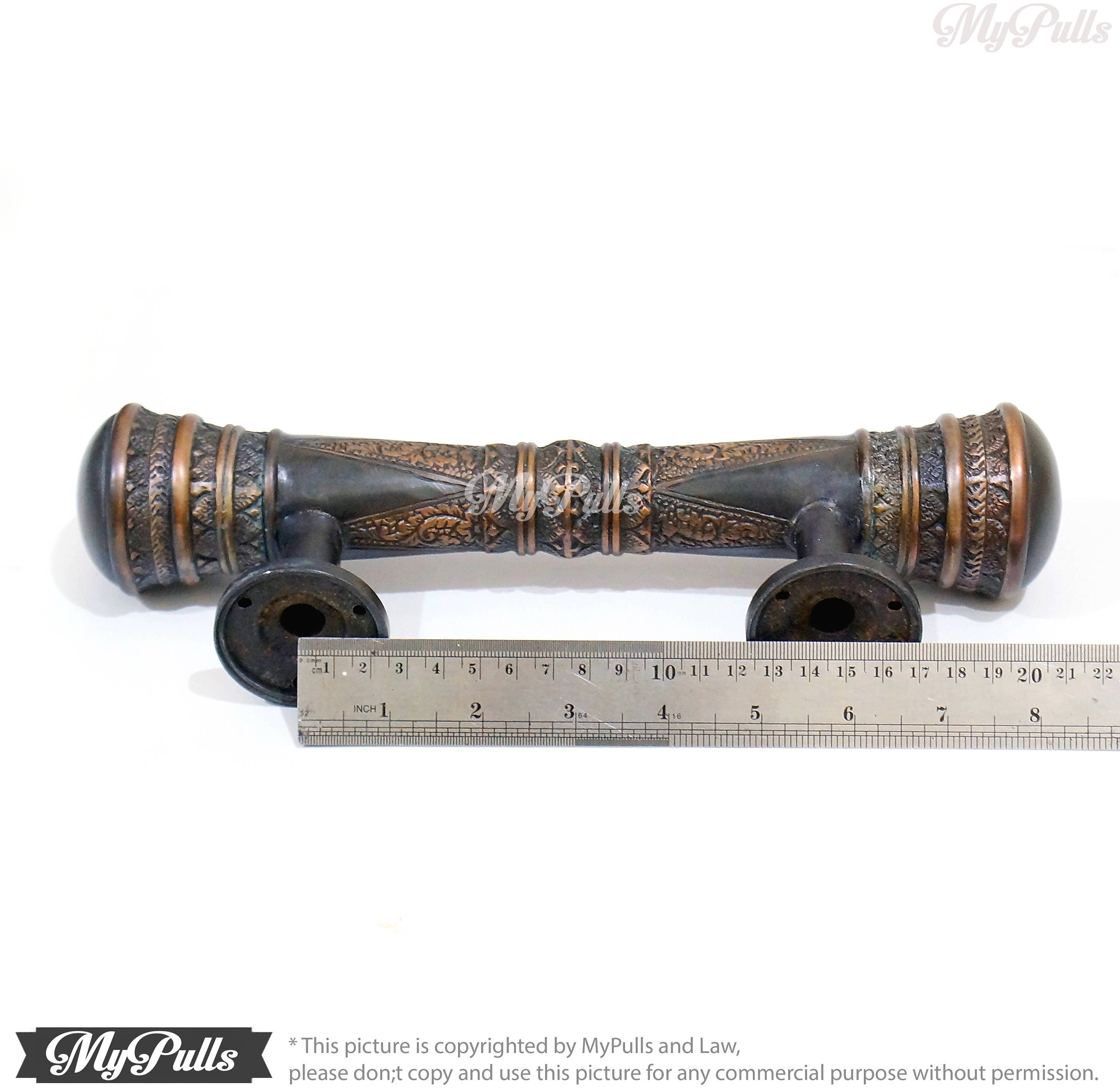11.00" Pair Brass Victorian Door Handle | Front Entry Door Handle with Copper Color Finishing Door Handle