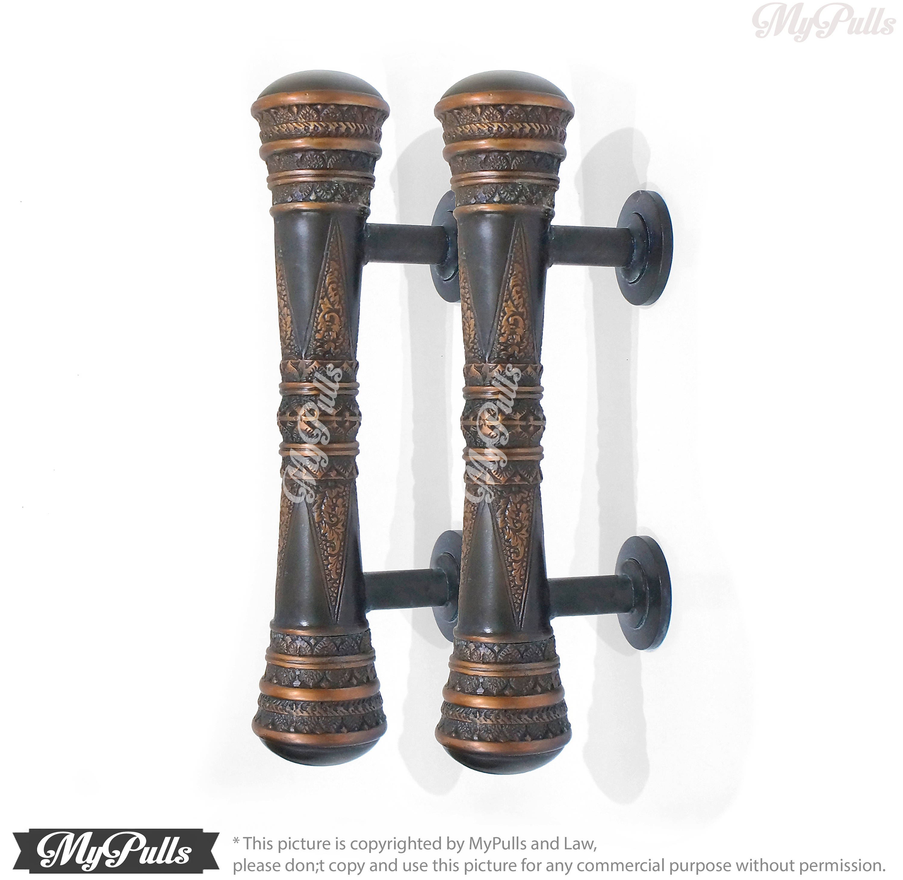 This listing for pair or 2 pcs 11.00" inches pair Brass Victorian Door Handle | Front Entry Door Handle with Copper Color Finishing Door Handle include a screws for all these Brass Entry Door Handle.