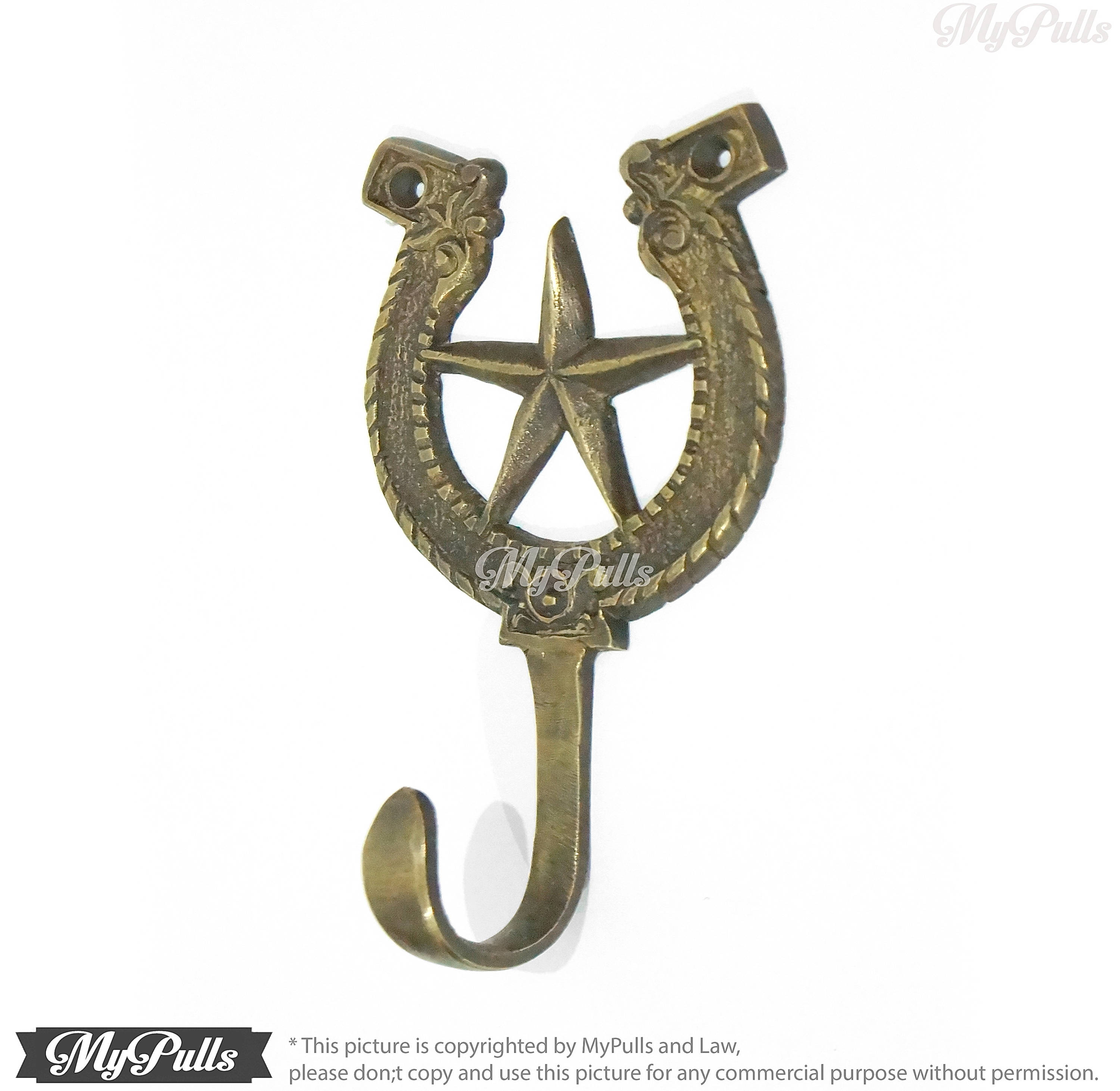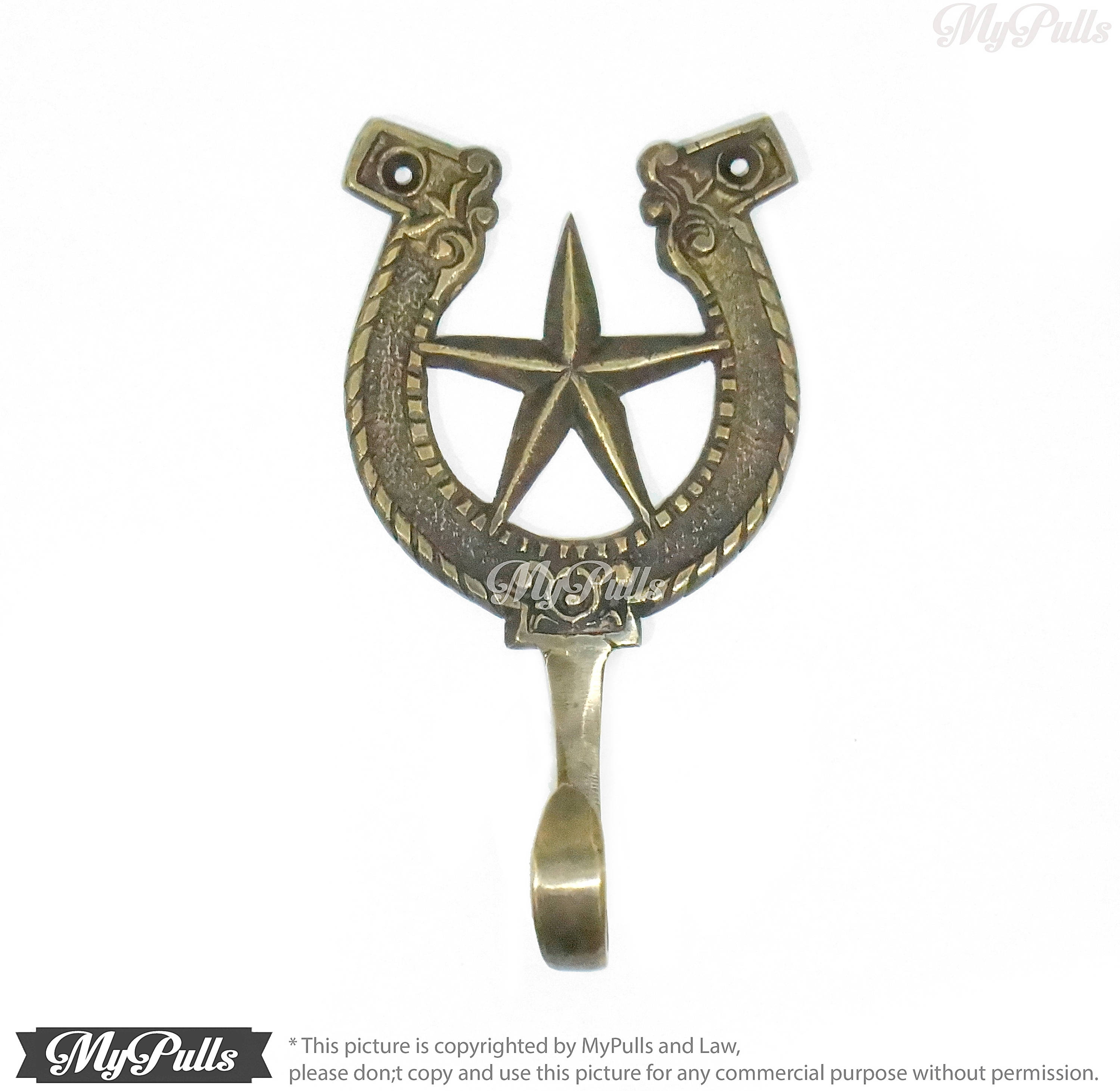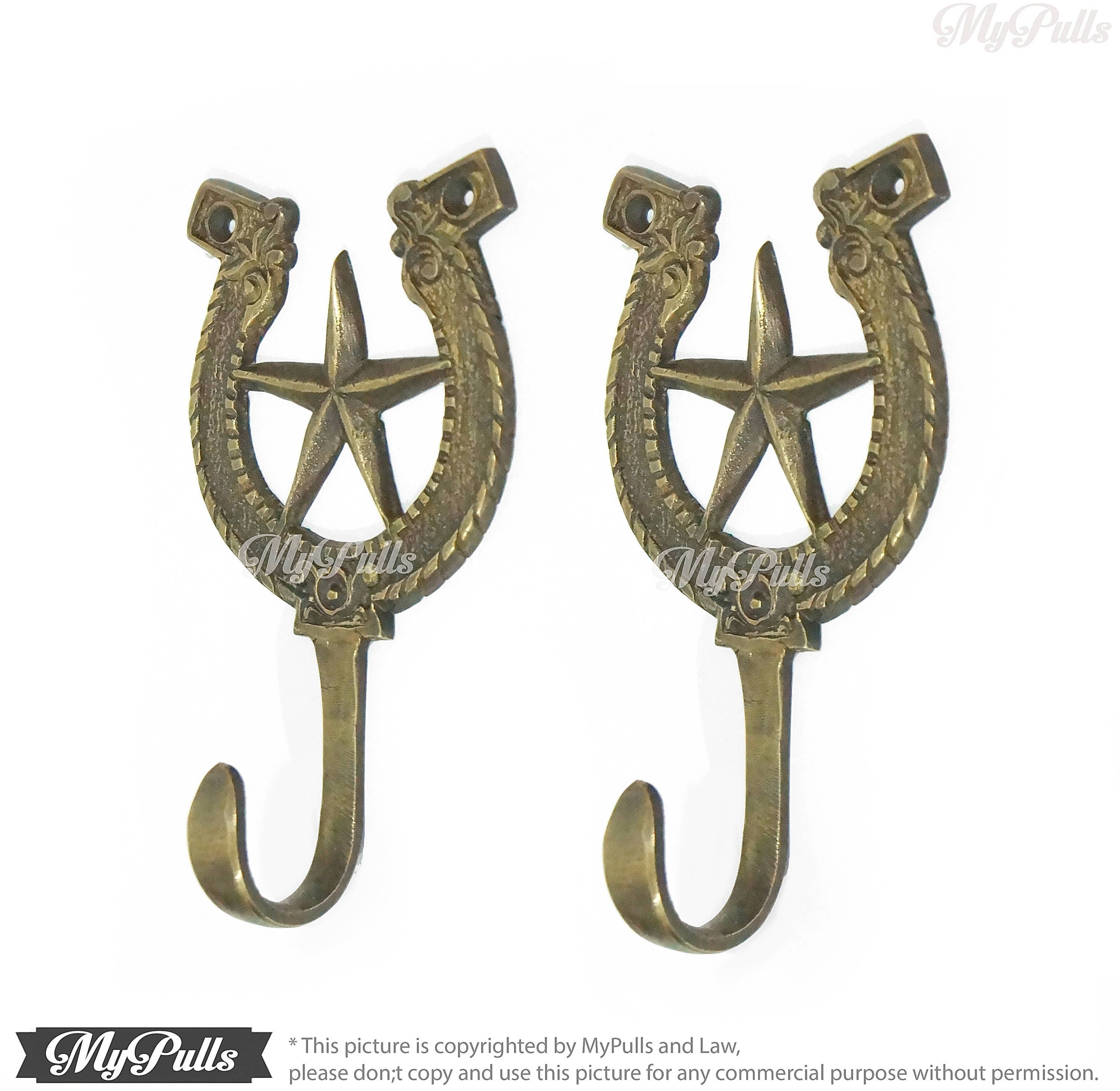 * for more detail this Solid Brass Horseshoe Bay Hook with Cowboy Star Medal Hook hanger measure, please check it on image gallery or please don;t hesitate to contact me.