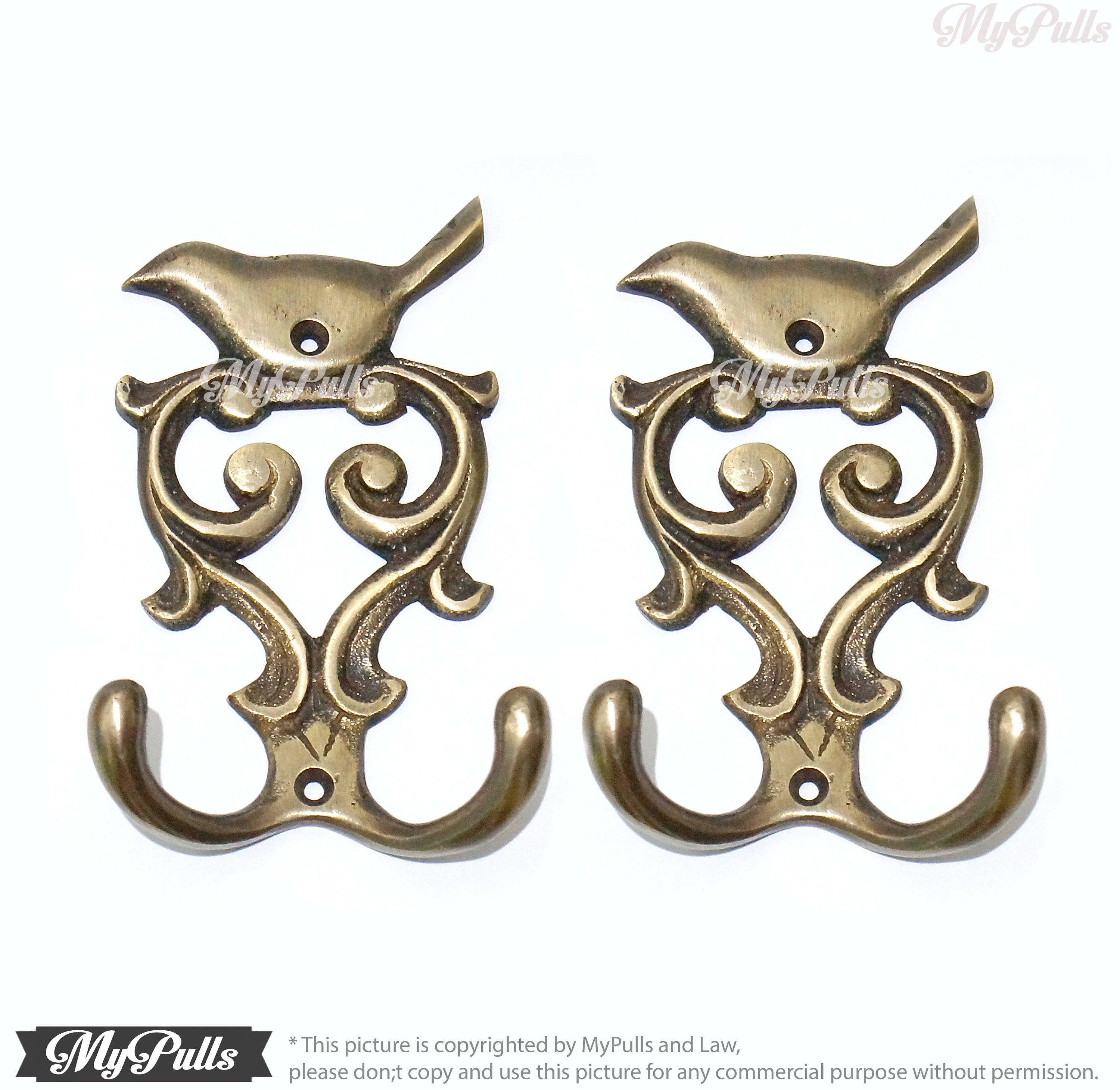 4.33" inches for 2 pcs Solid Brass Birdie / Sparrow / Bird wall Hook Strong Double Hooks