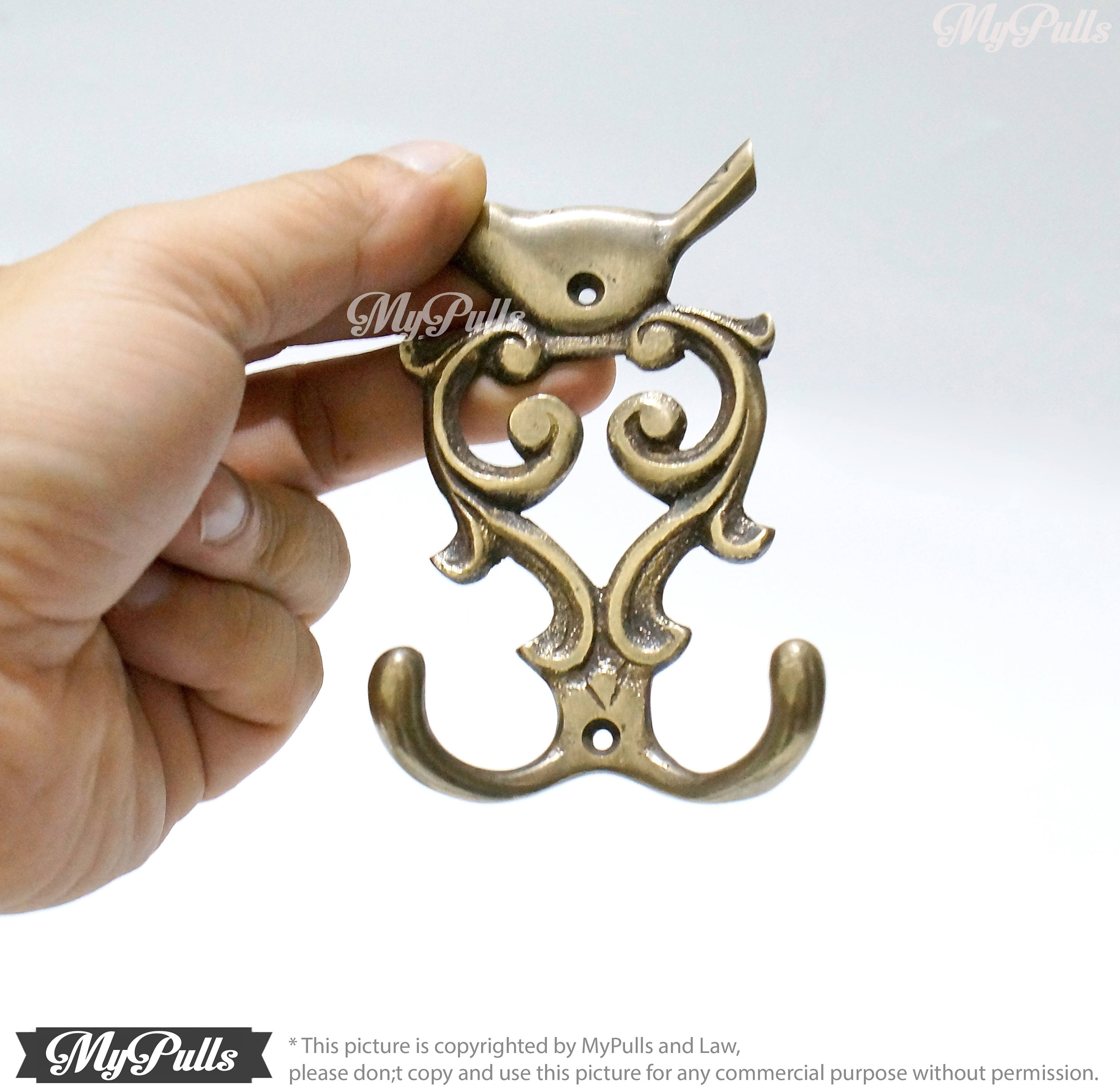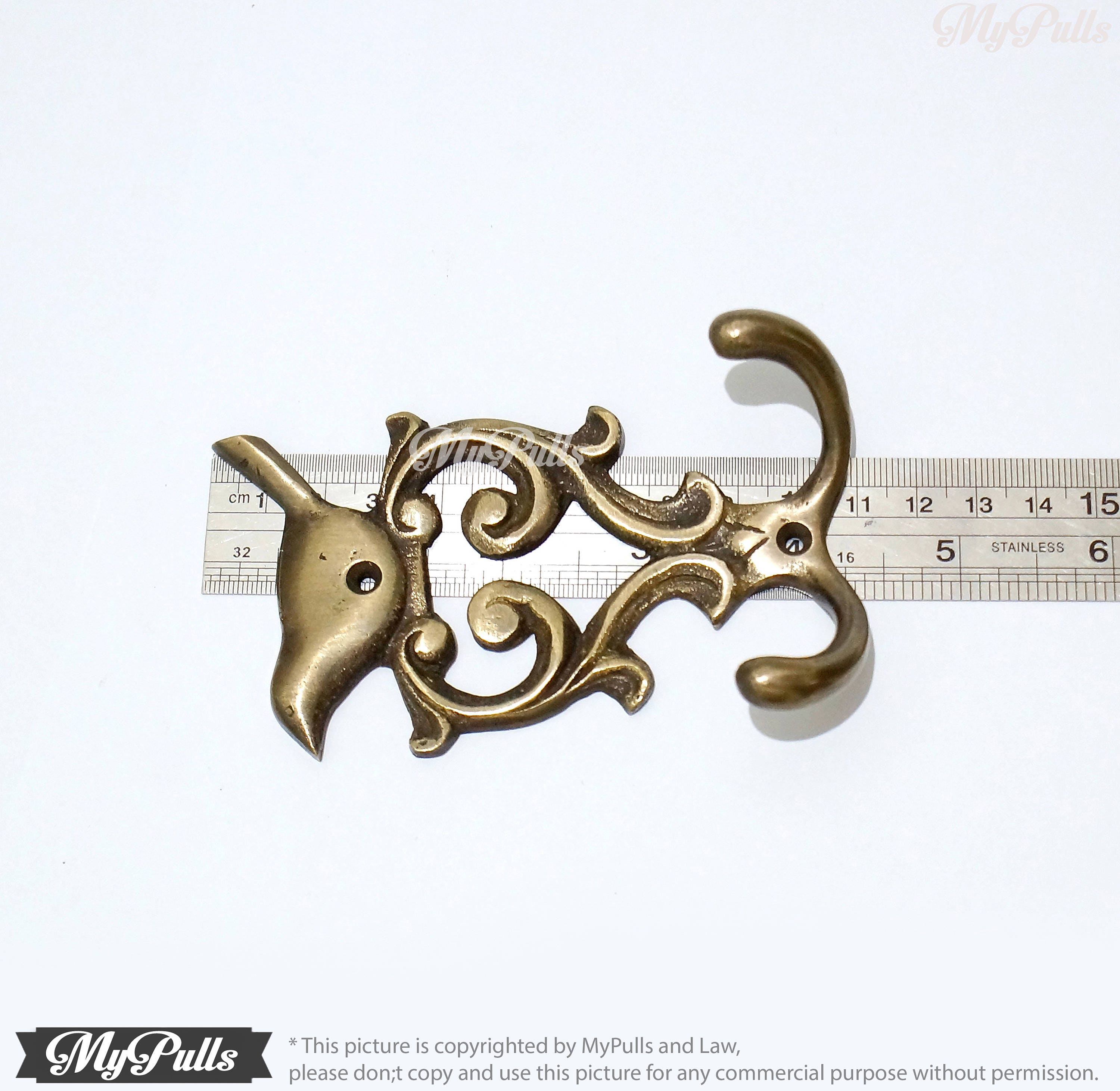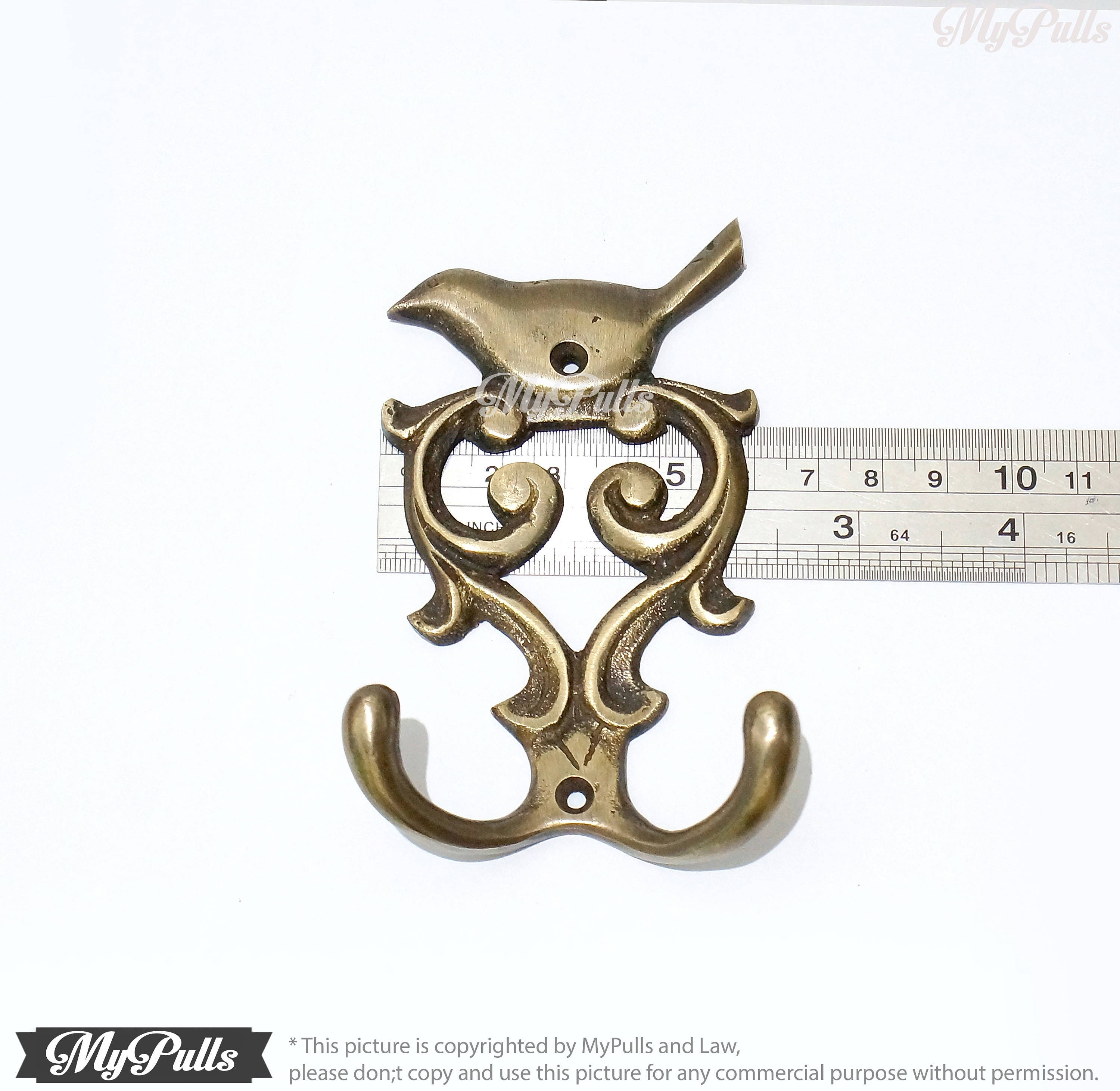 * for more detail this 4.33" inches for 2 pcs Solid Brass Birdie / Sparrow / Bird wall Hook Strong Double Hooks measure, please check it on image gallery or please don;t hesitate to contact me.
