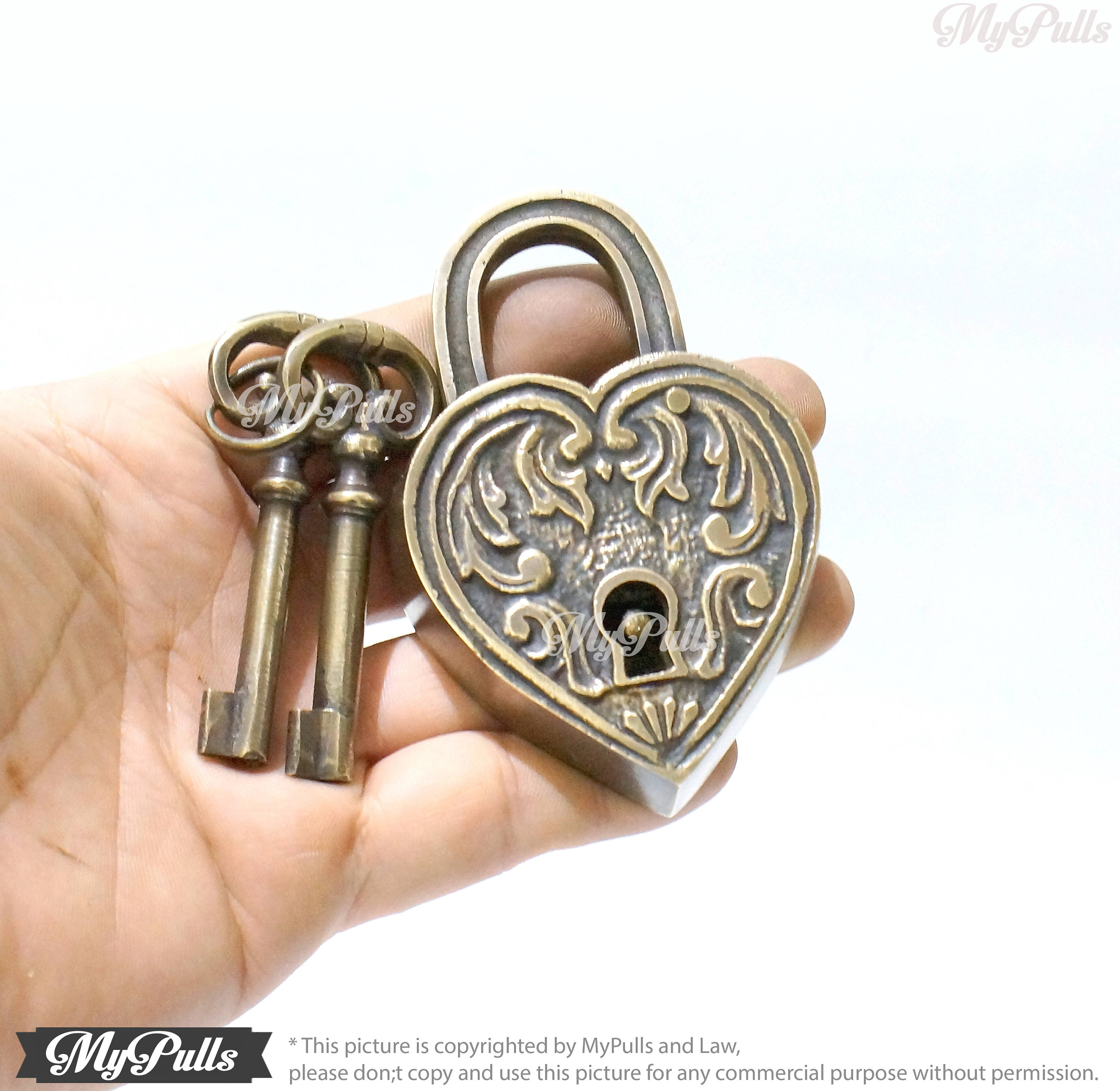 * for more detail this Solid Brass Engraved Love Lock, Heart Lock, Custom Lock, Antique Heart Love Padlock With Skeleton Keys measure, please check it on image gallery or please don;t hesitate to contact me.