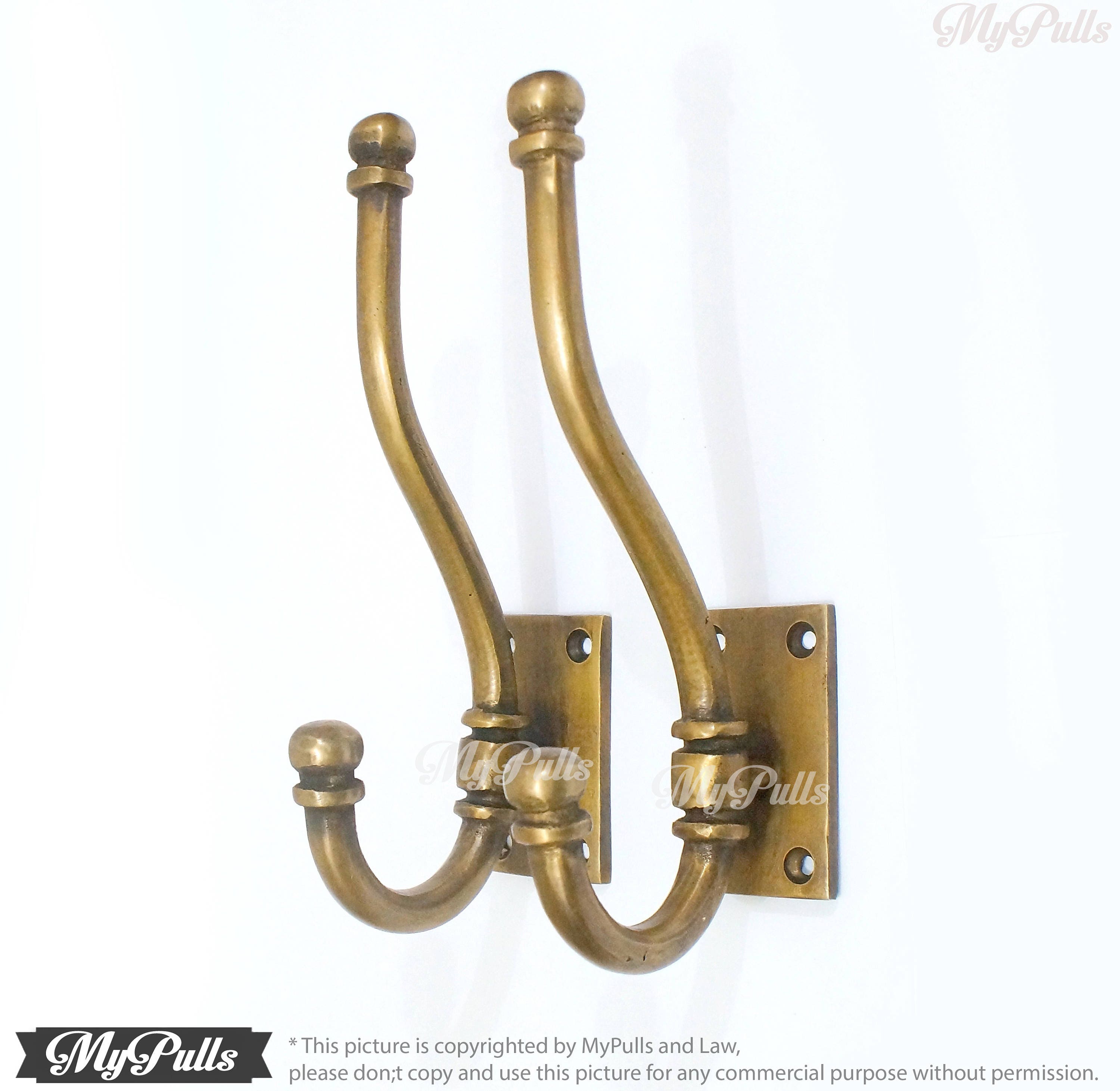 6.50" Set of 2 pcs SOLID BRASS Retro Strong Wall Mount Strong Hook Antique Brass Wall Coat Hat Hook