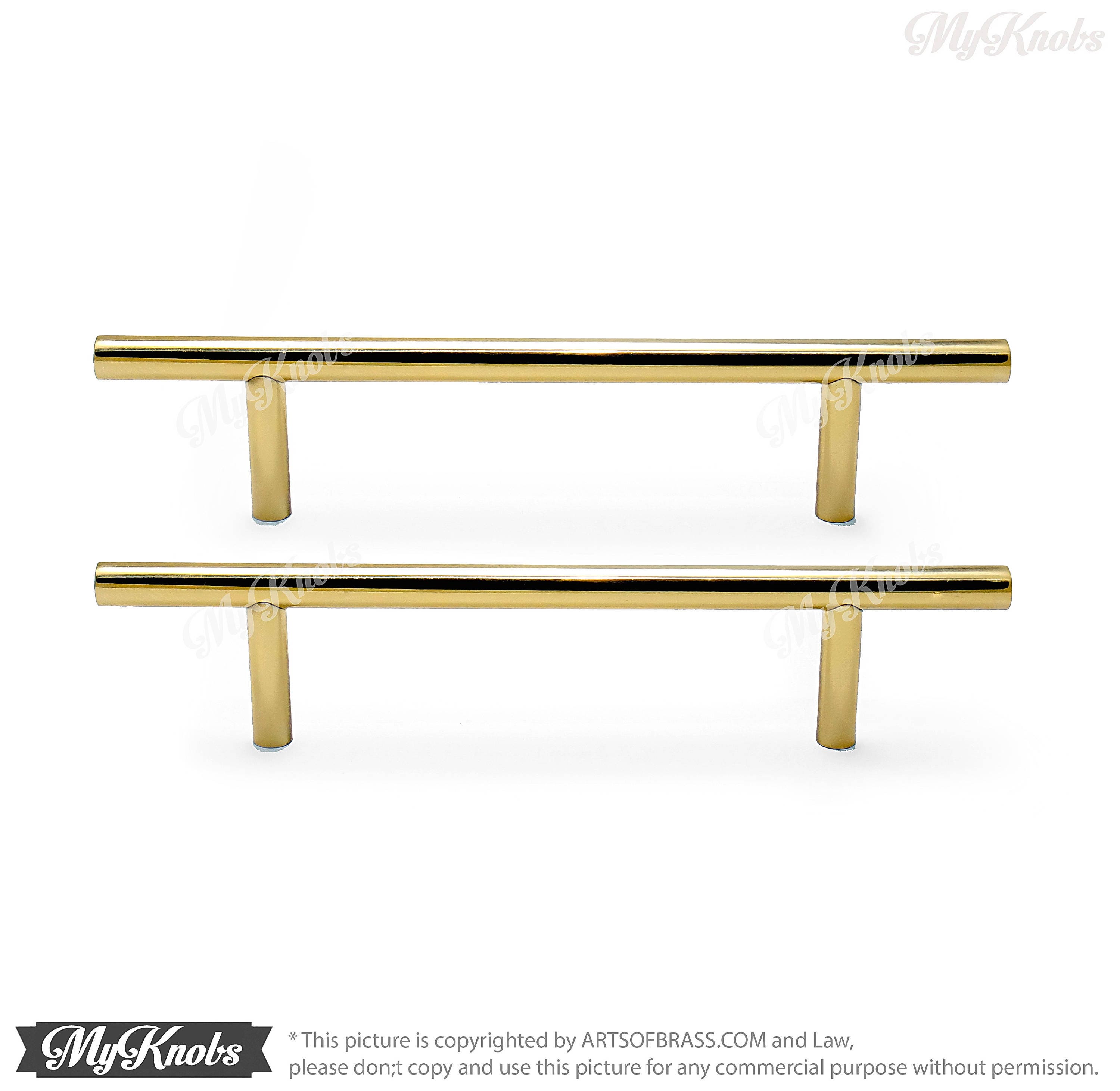 Solid Brass Kitchen Handles - Round Dresser Drawer Pulls, 2 pc Set