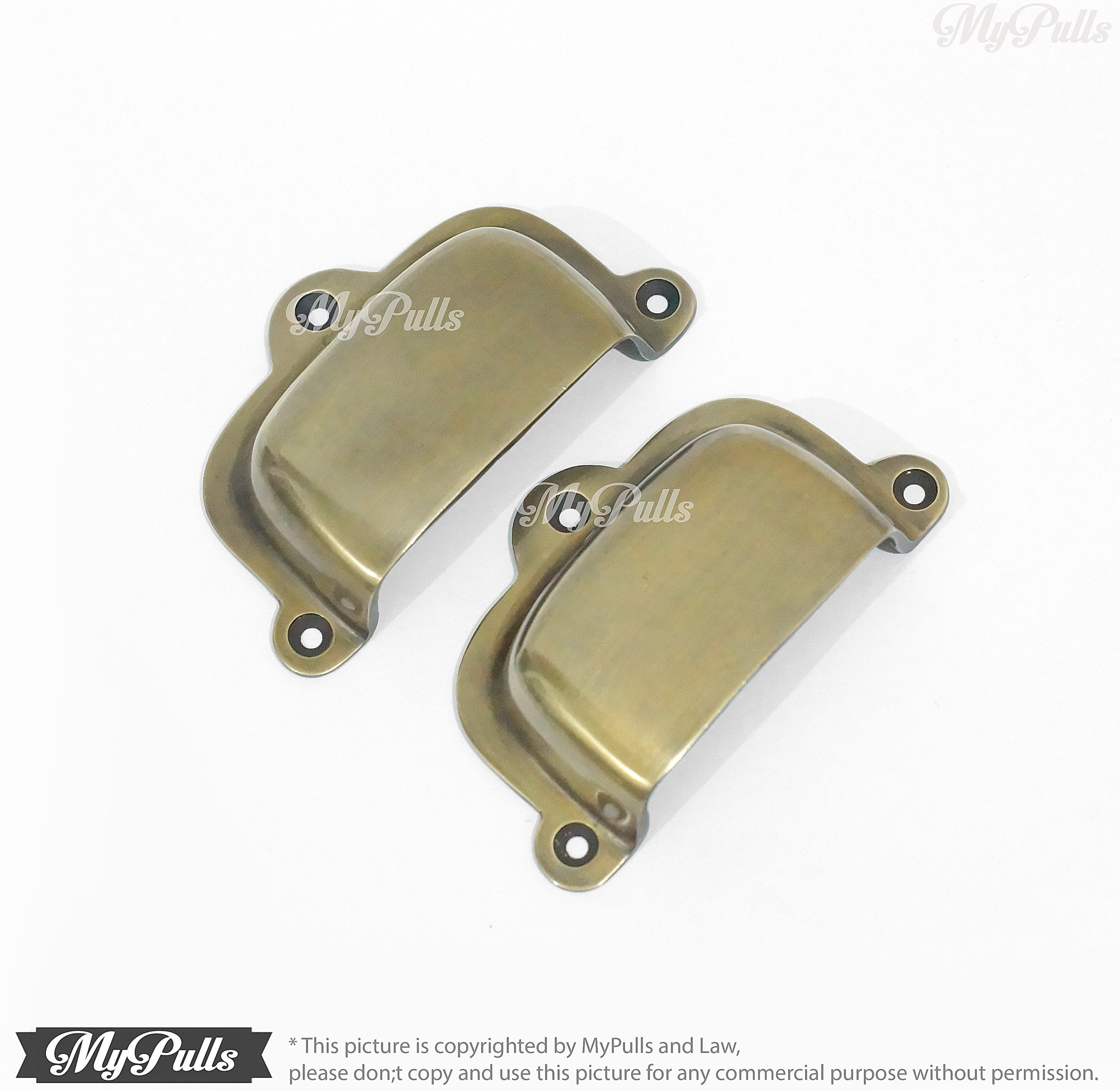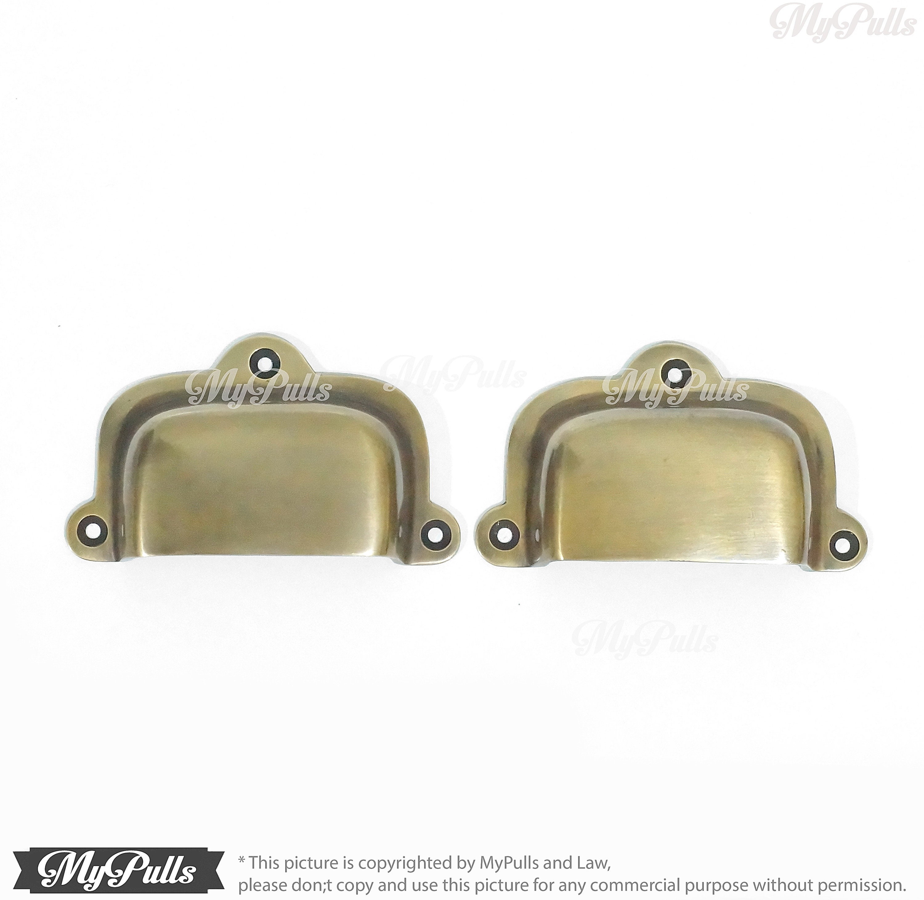 3.54" inches Set of 2 pcs Solid Brass Retro Bin Pull Antique Style Brass Knobs Cabinet Drawer Dresser Kitchen Pulls