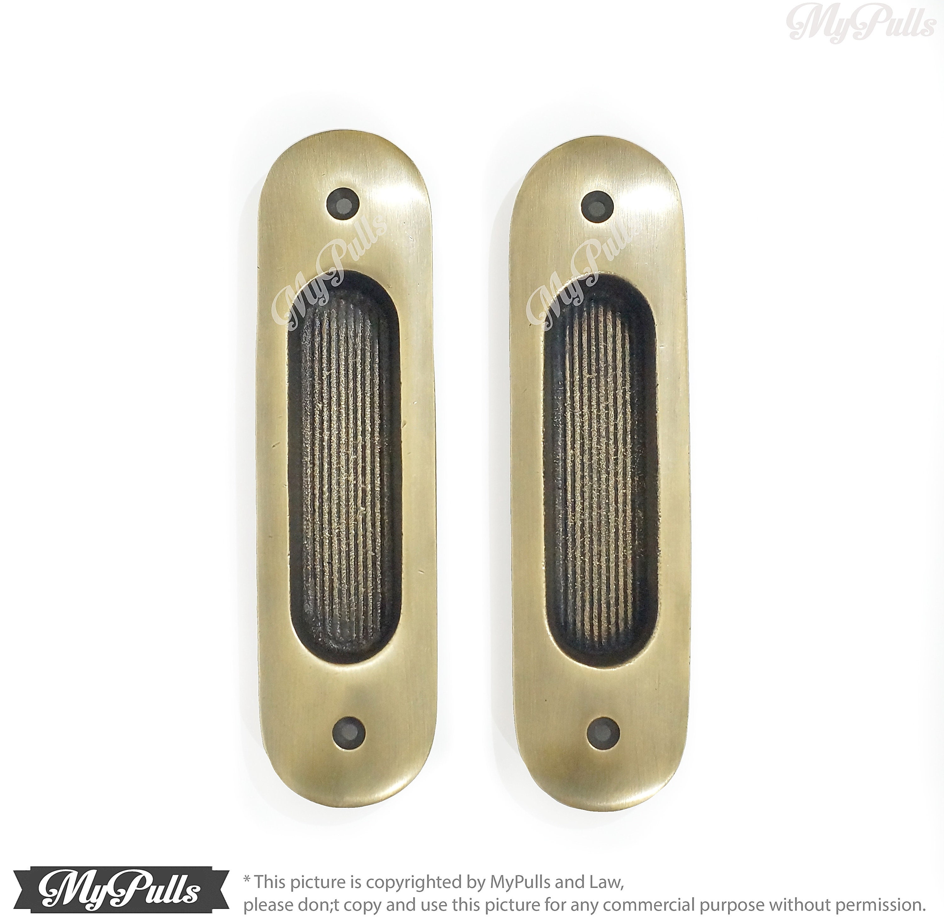 This listing for 2 pcs Solid Brass 5.78" inches Solid Brass Baldwin FLUSH Pull Sliding Door Cabinet Brass Knob Drawer Handle include a screws for these Brass Baldwin FLUSH Pull for Sliding Door.
