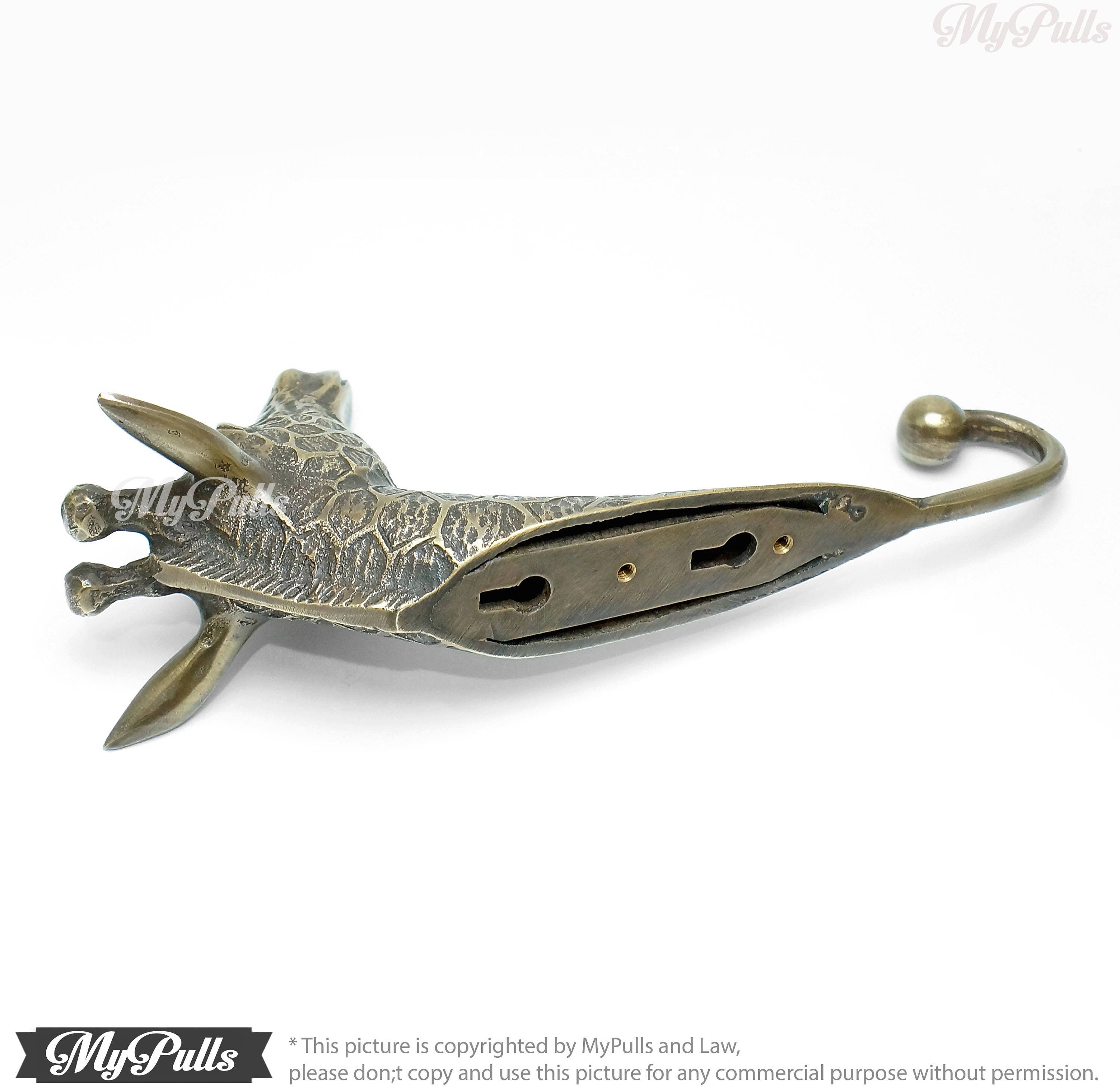 8.54" Solid Brass Giraffe Animal hook Strong Wall Mount Coat Hat Hook