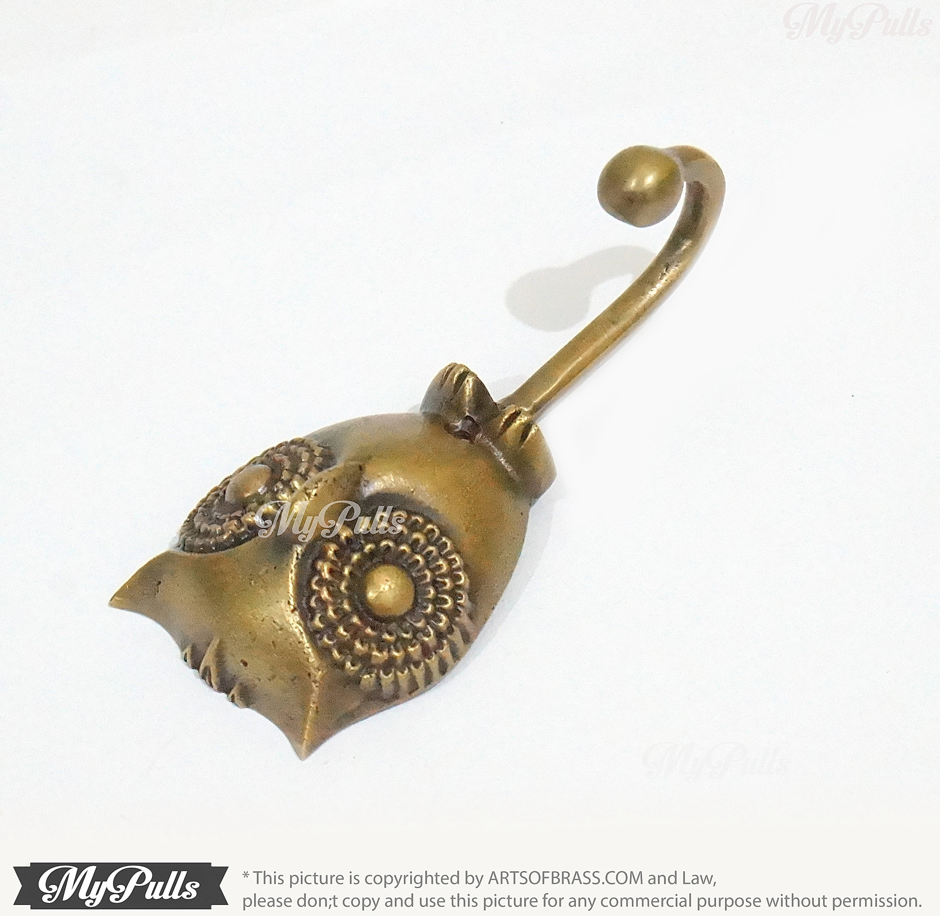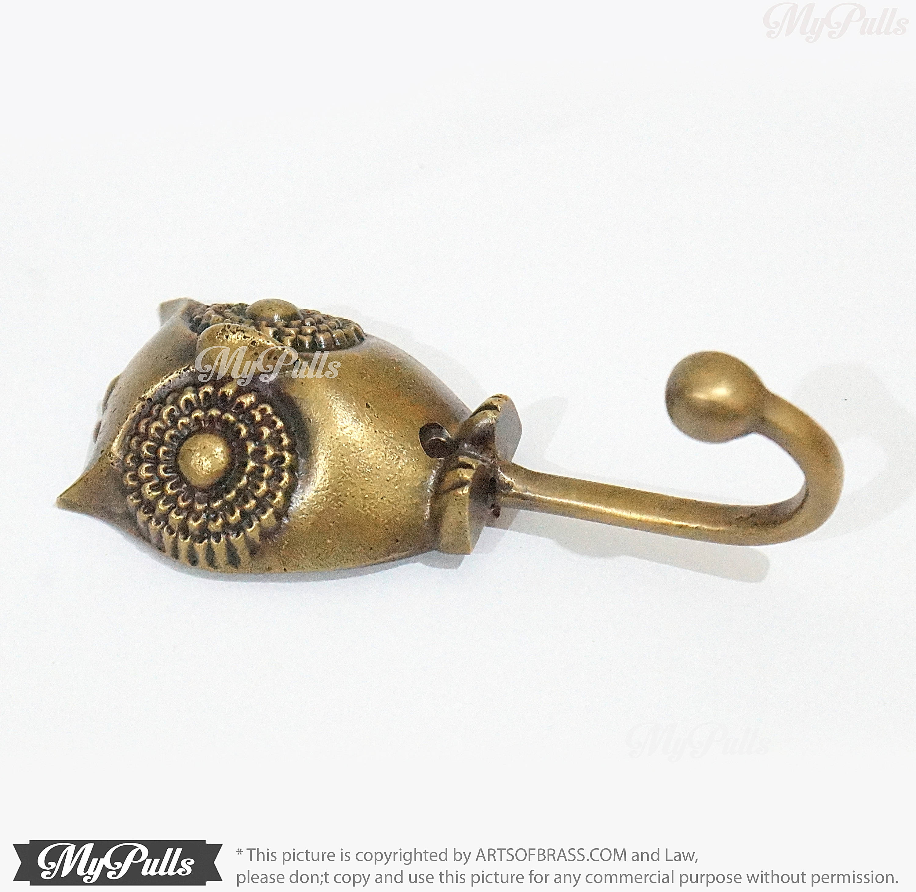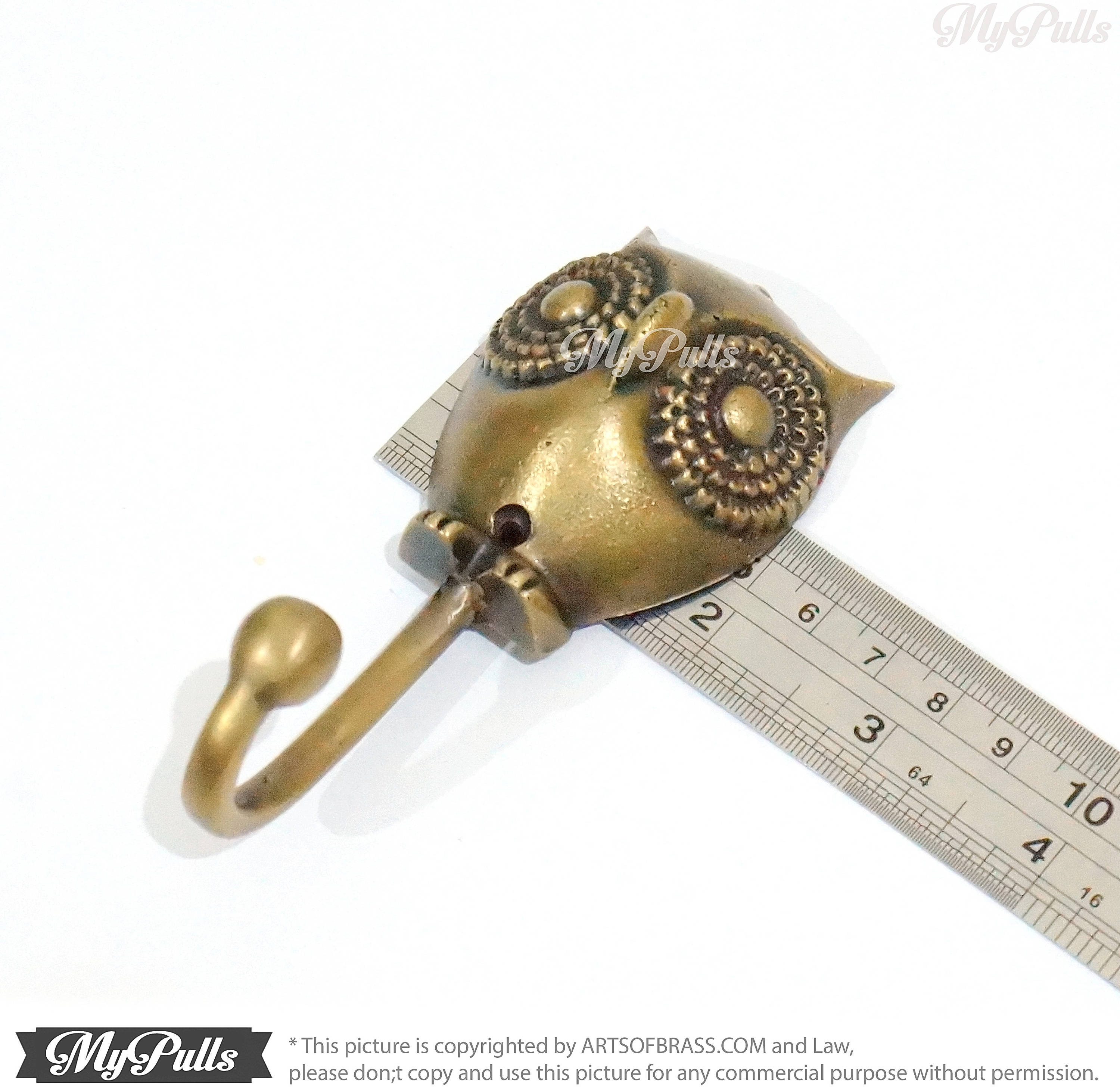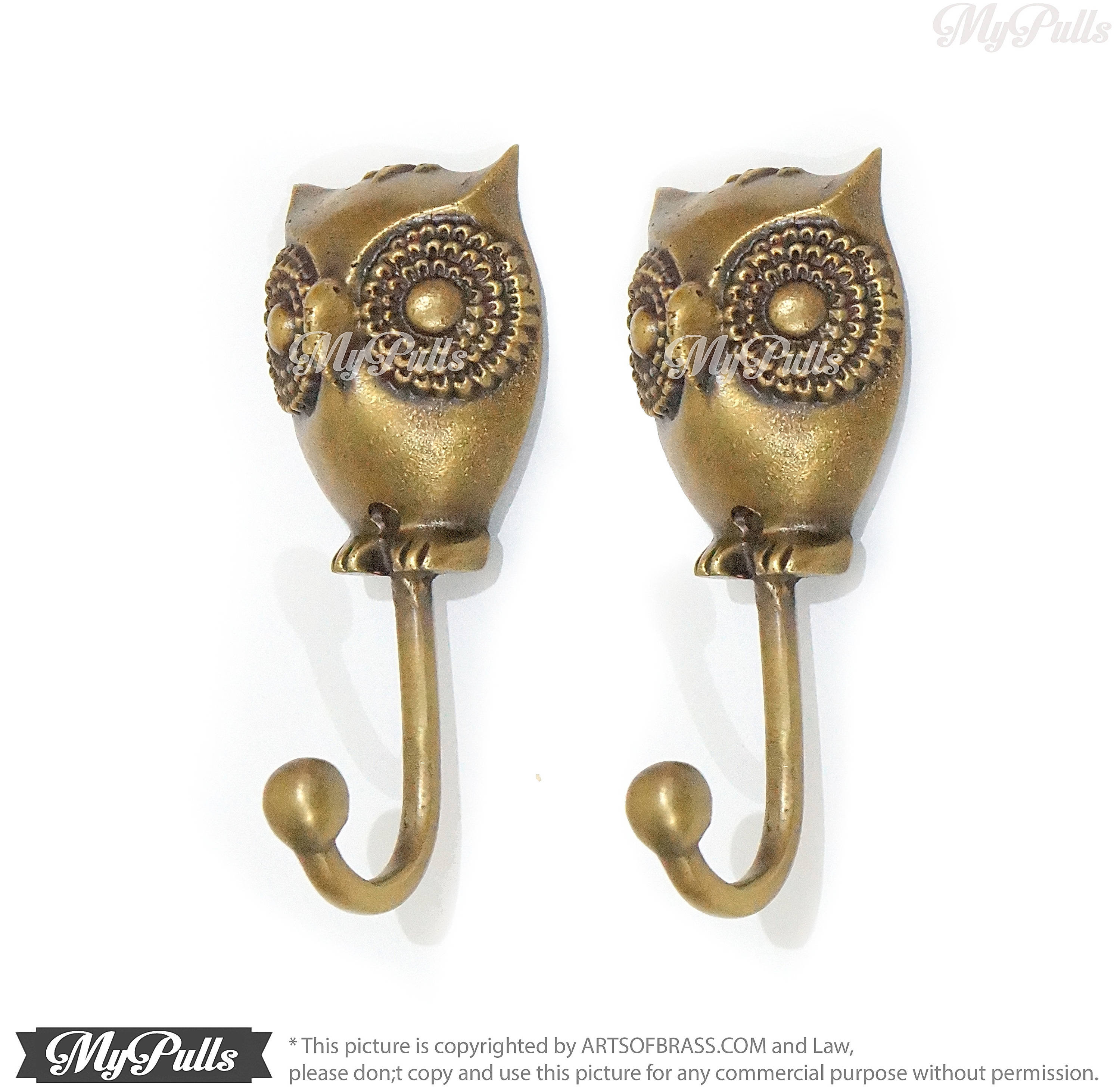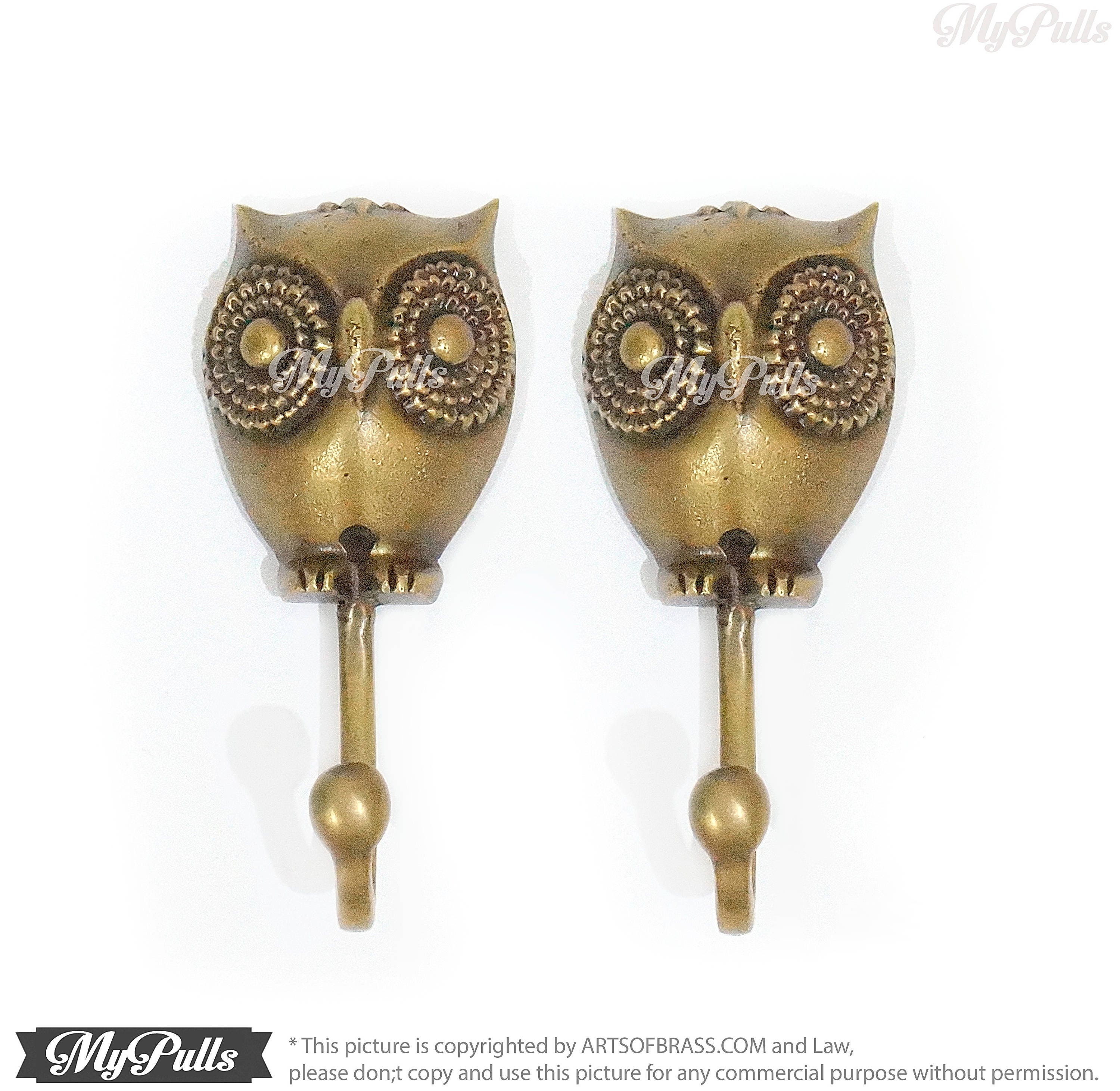4.33" in 2 pcs Solid Brass Owl Hook | Night Barn Owl Strong Wall Mount Coat Hat Hook Owl Decor