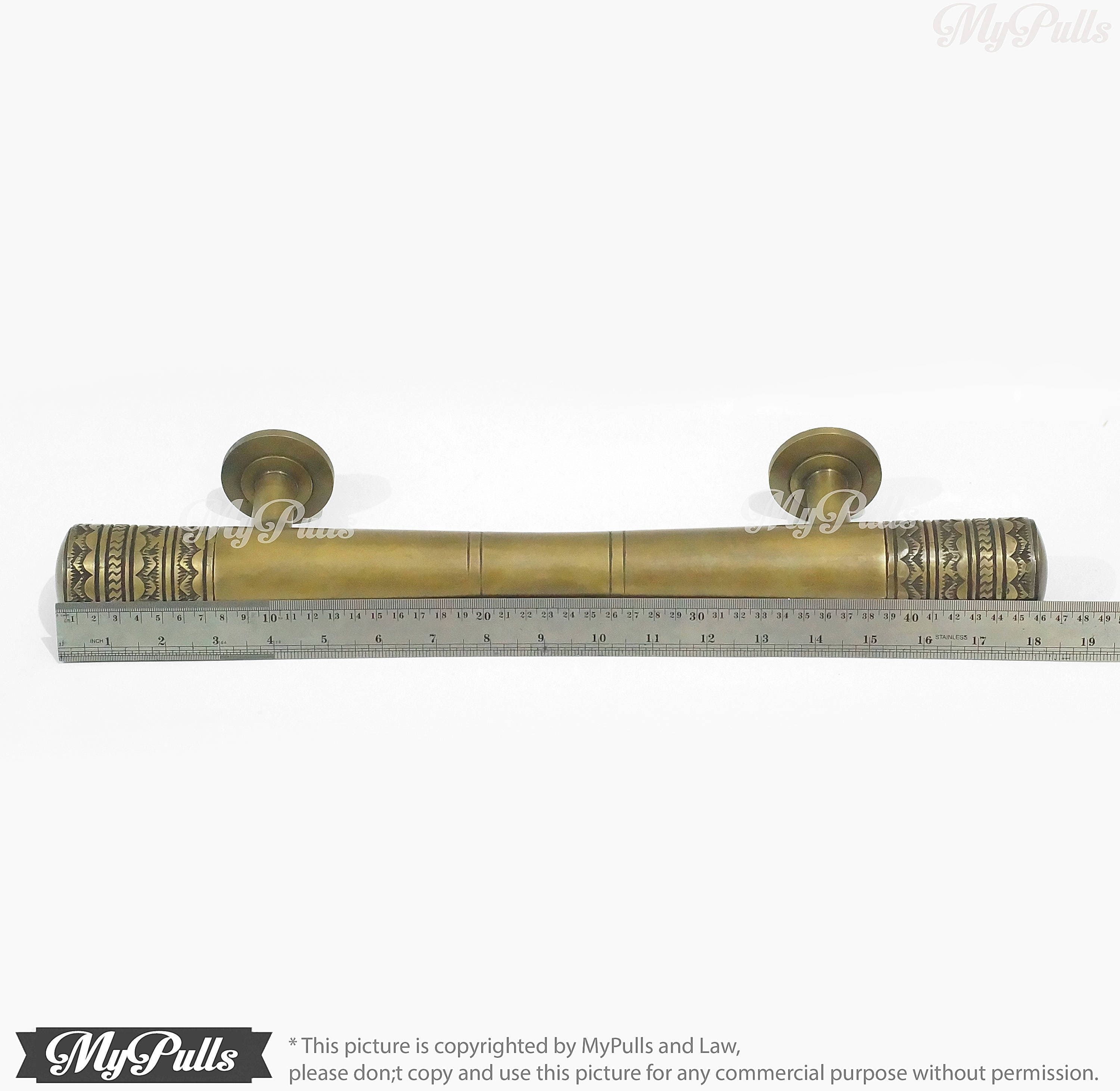 18.30" in 2 pcs Solid Brass Retro Handle Classic Front Door Handle Pulls | Entry Front Door Brass Handle Pulls