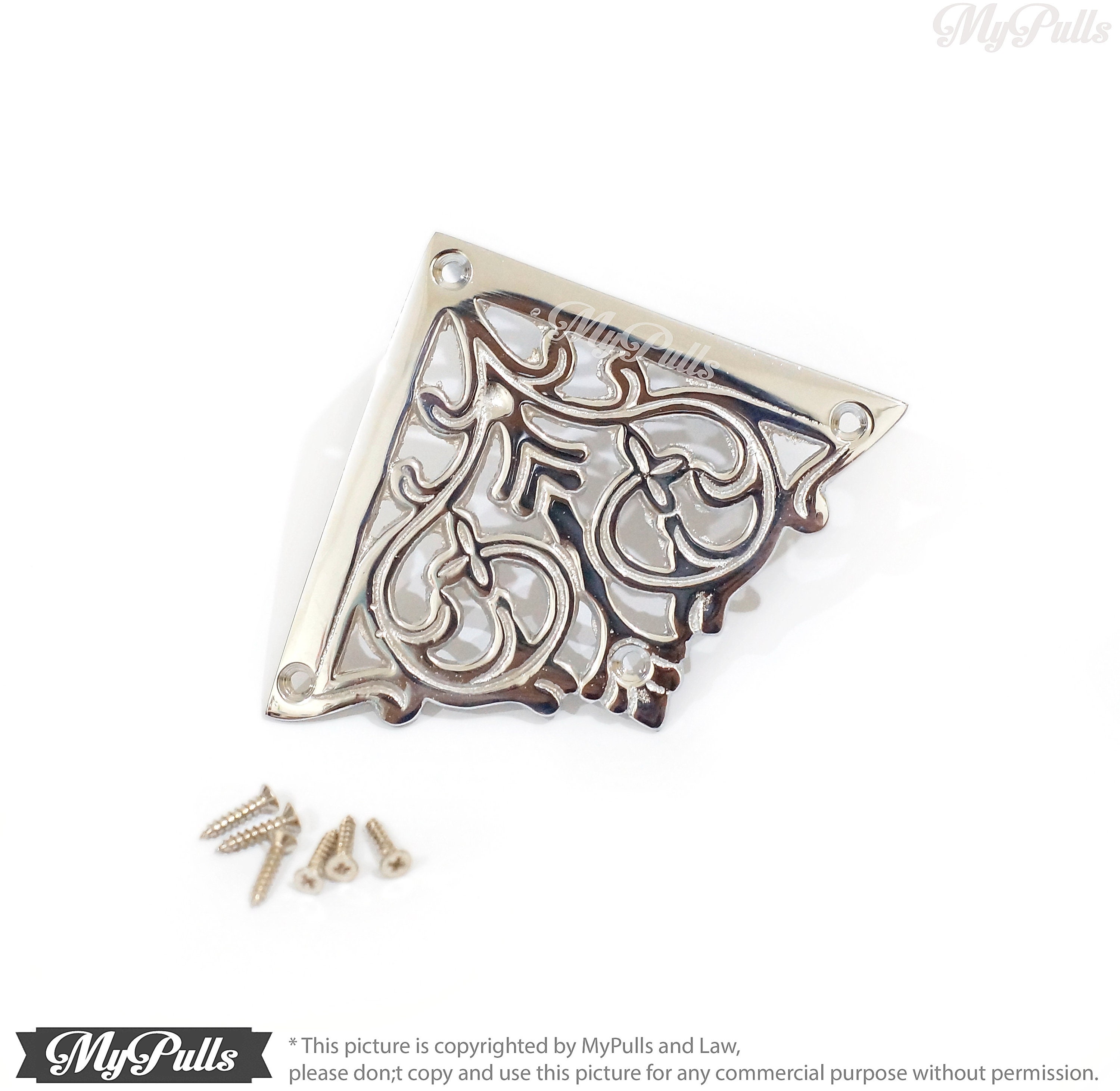 This listing for 4 pcs 3.00" Silver Brass Corner Trunk Victorian Swirl Chrome Table Box Cabinet Trunk Corner Protector include a screws for these Brass Corner Trunk with Silver Bright (Chrome) and Silver Doff (Matte) finishing.