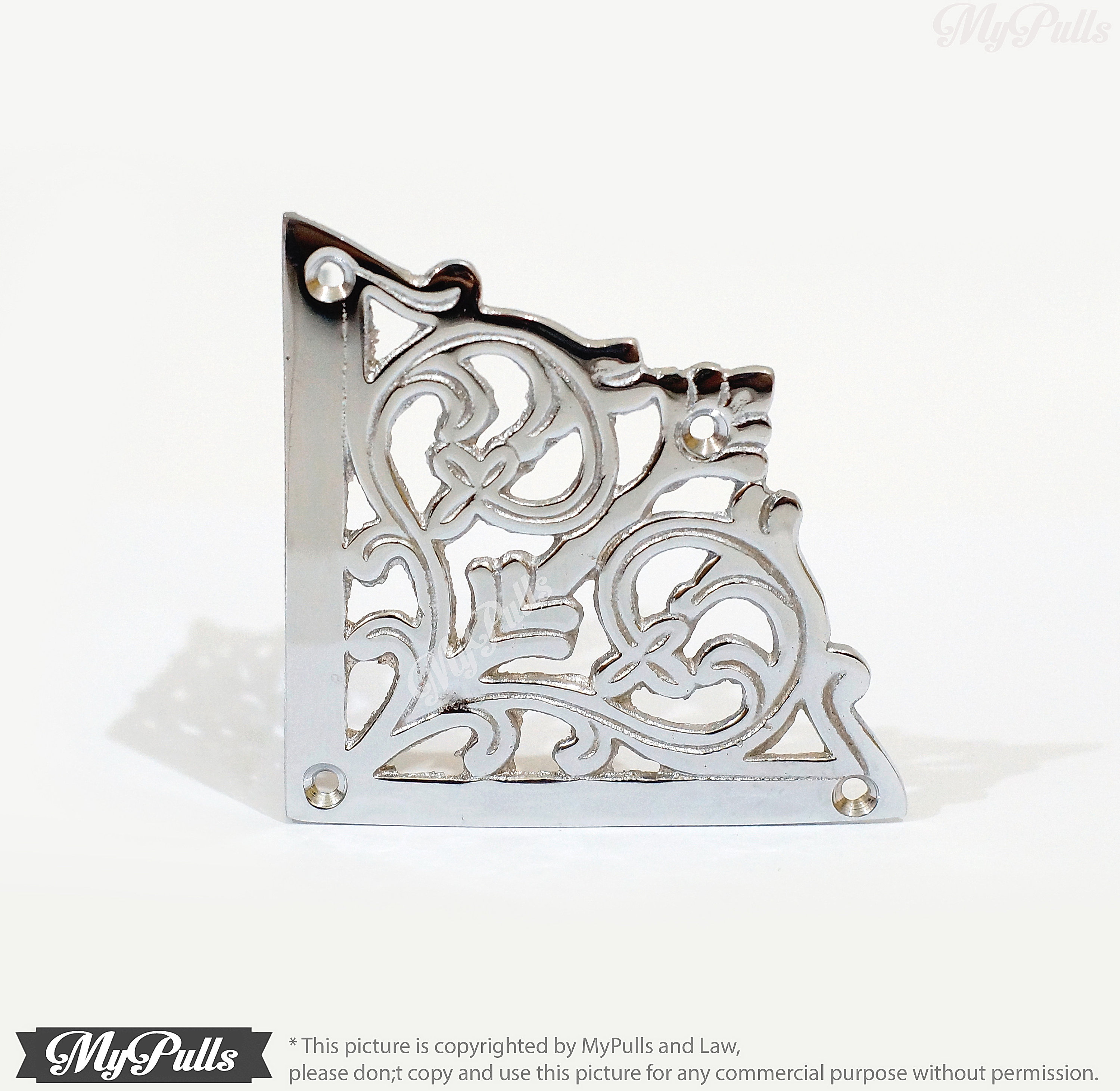 3.00" Silver Brass Corner Trunk Victorian Swirl Chrome Table Box Cabinet Trunk Corner Protector