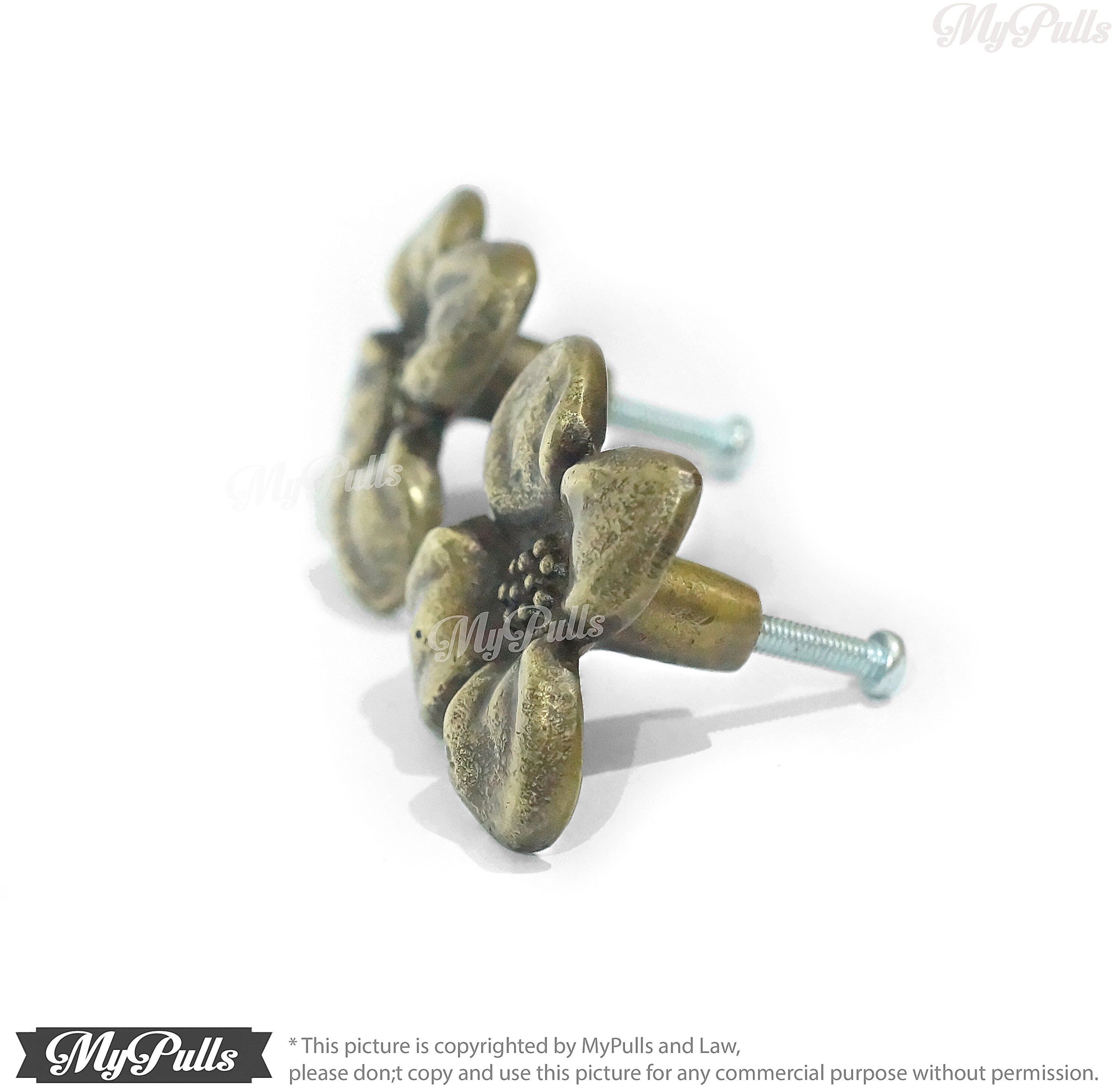 Set 4 Solid Brass Retro Cheery Blossom Knob Flowers Brass Knobs Cabinet Drawer Dresser Kitchen Pulls