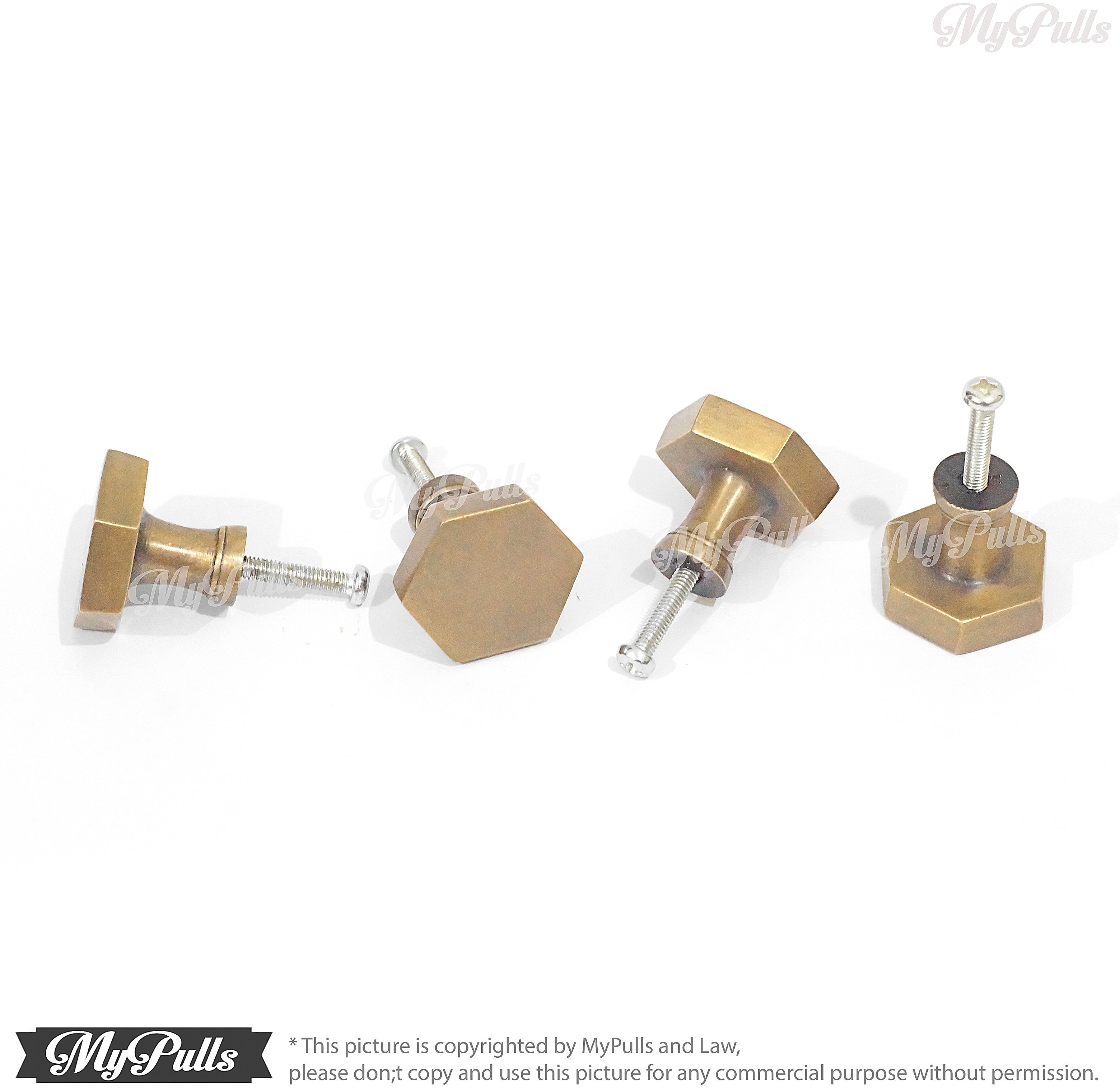 Set 4 pcs Solid Brass Hexagon Pull Knobs | Hexagon Shaped Brass Cabinet Handle, Cupboard Door Knob Dresser Drawer Pull