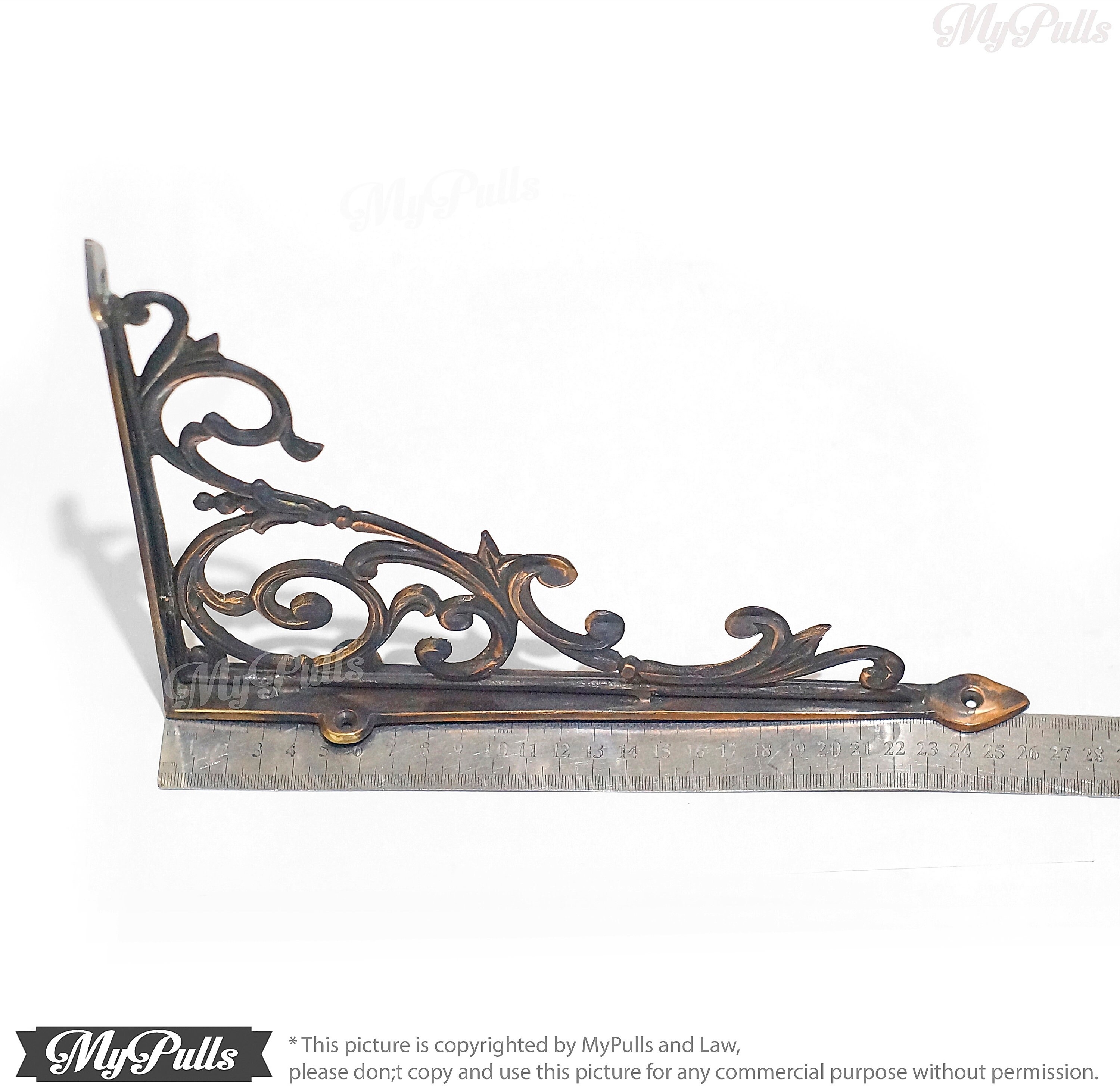 10.23" 2 pcs SOLID BRASS Wall Shelf Bracket | Antique Copper Classic Swirl Brass Floating Shelves Decor
