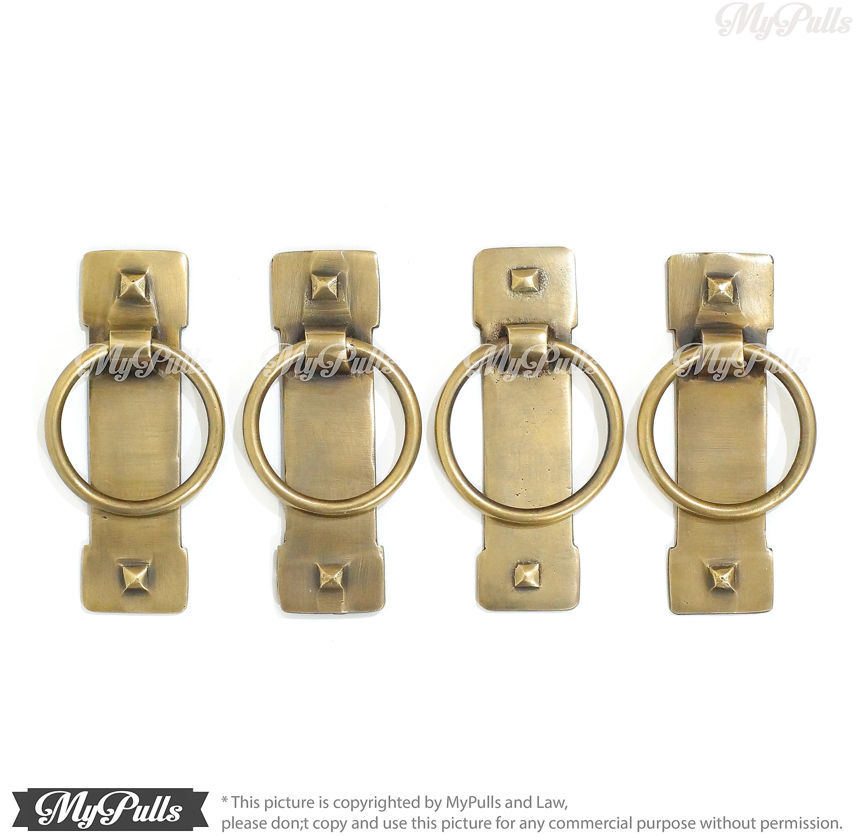 3.30" inches Set of 4 pcs Solid Brass Ring Pull Drawer Pull handles | Dresser pull | Brass Cabinet Drawer Pulls