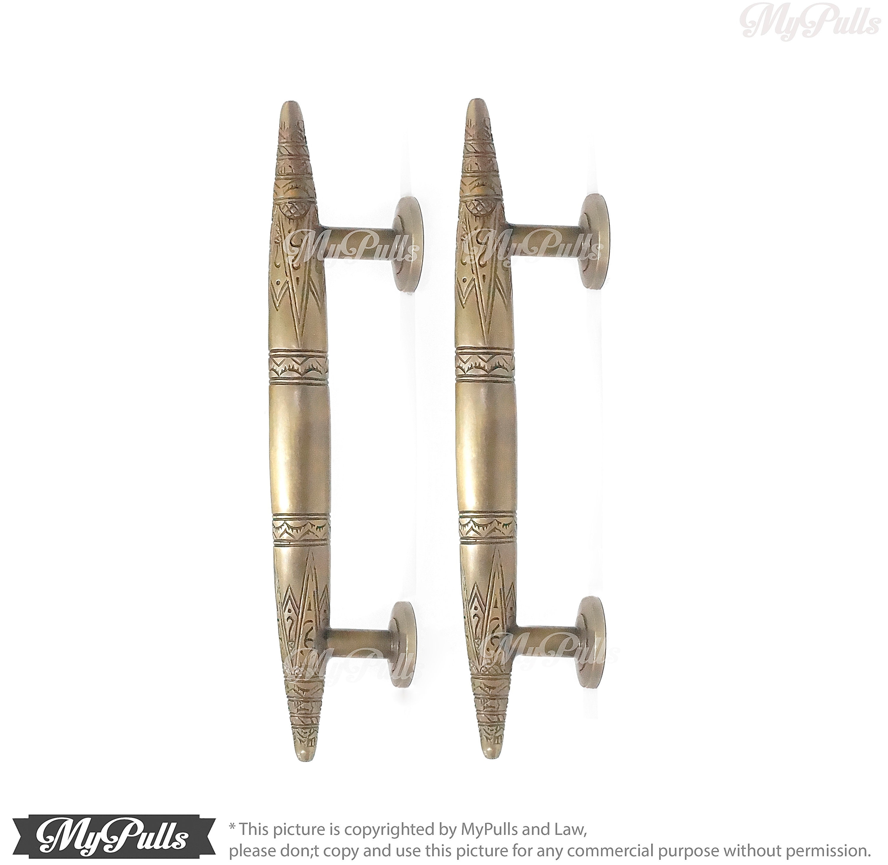 13.85" Pair Solid Brass Art Deco Tapered Horns Door Pull Handle | Cabinet Drawer Dresser Handle Pulls