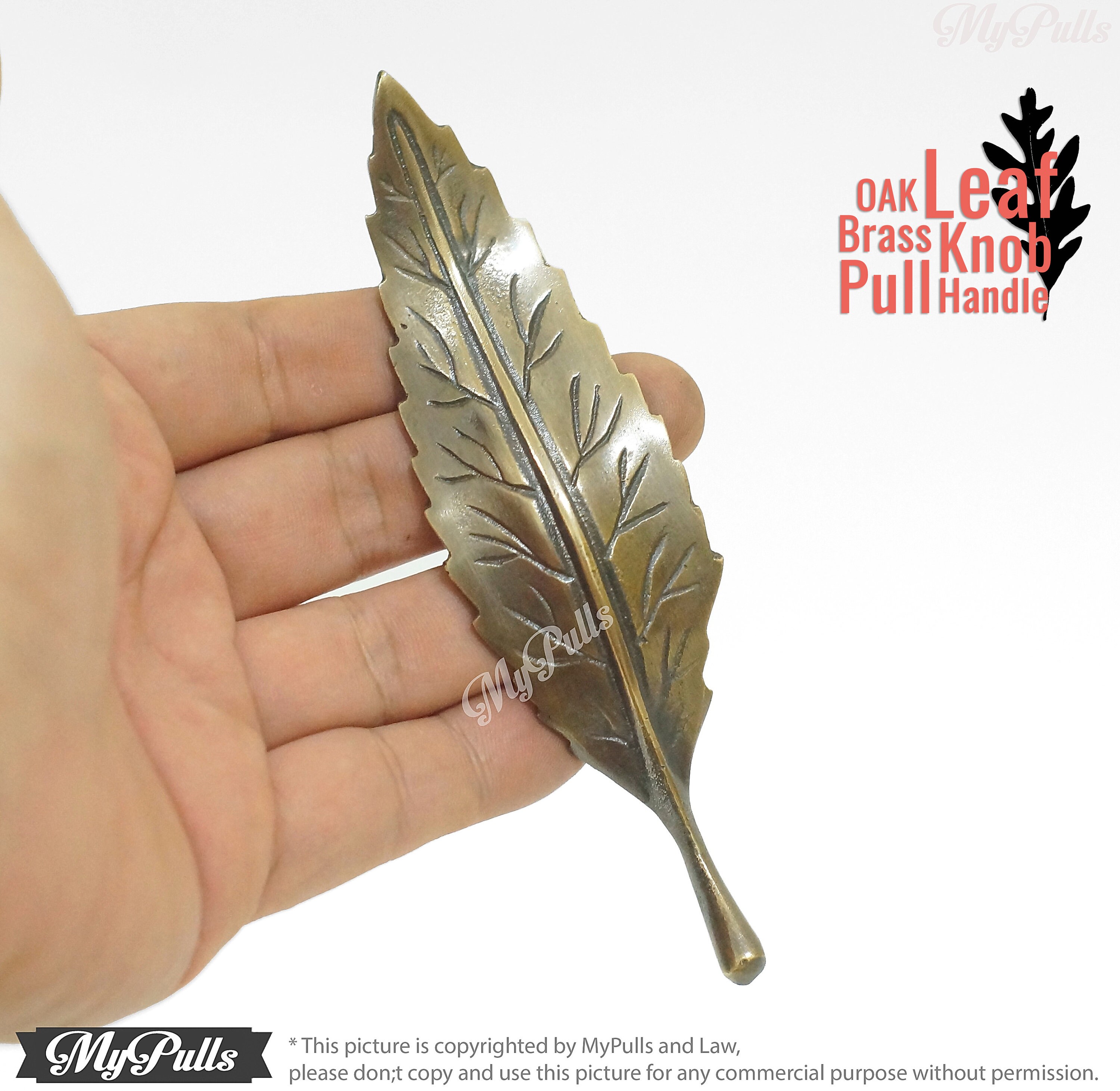 Solid Brass Oak Leaf knob Pull Drawer Dresser Cabinet door handle