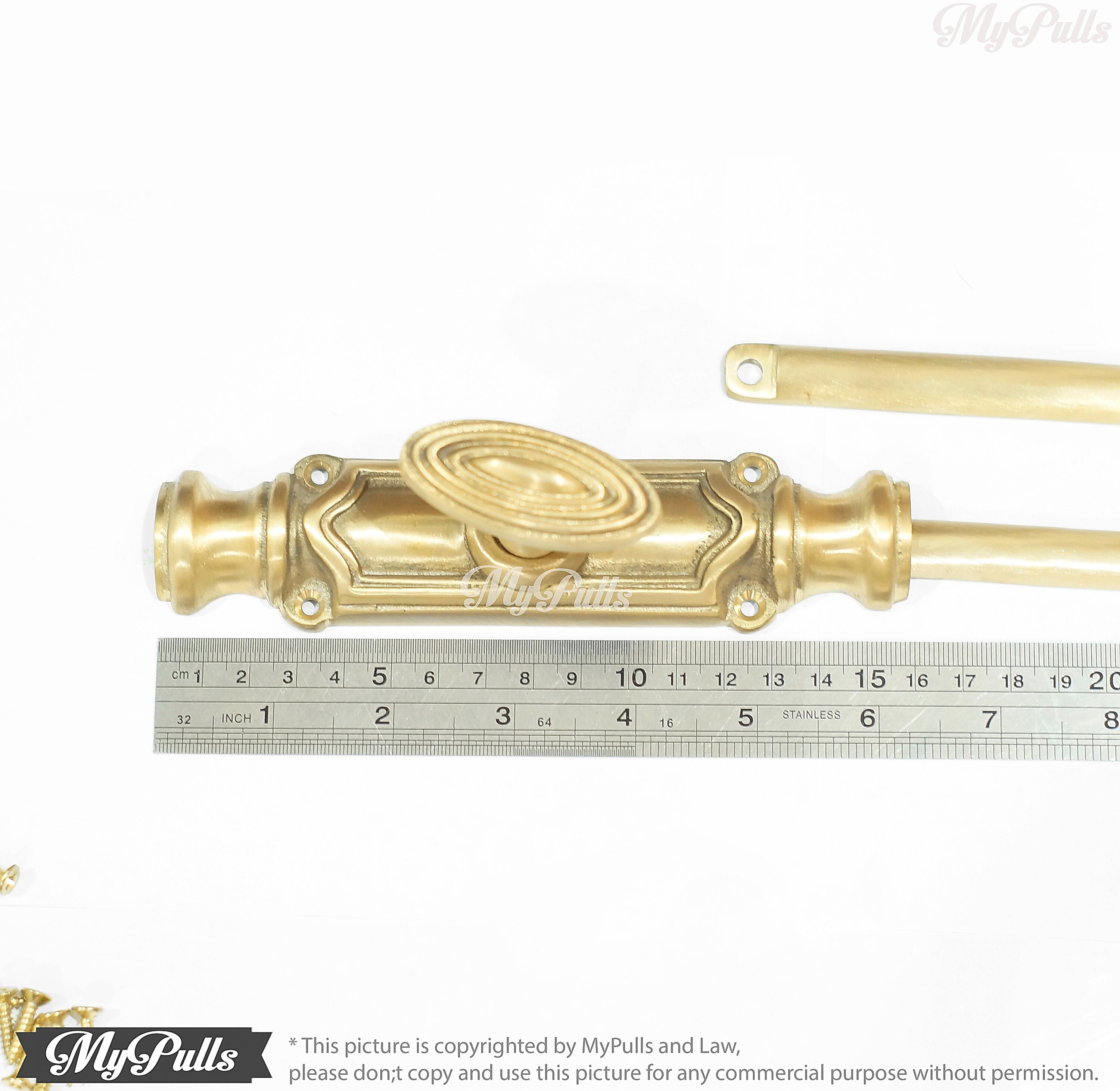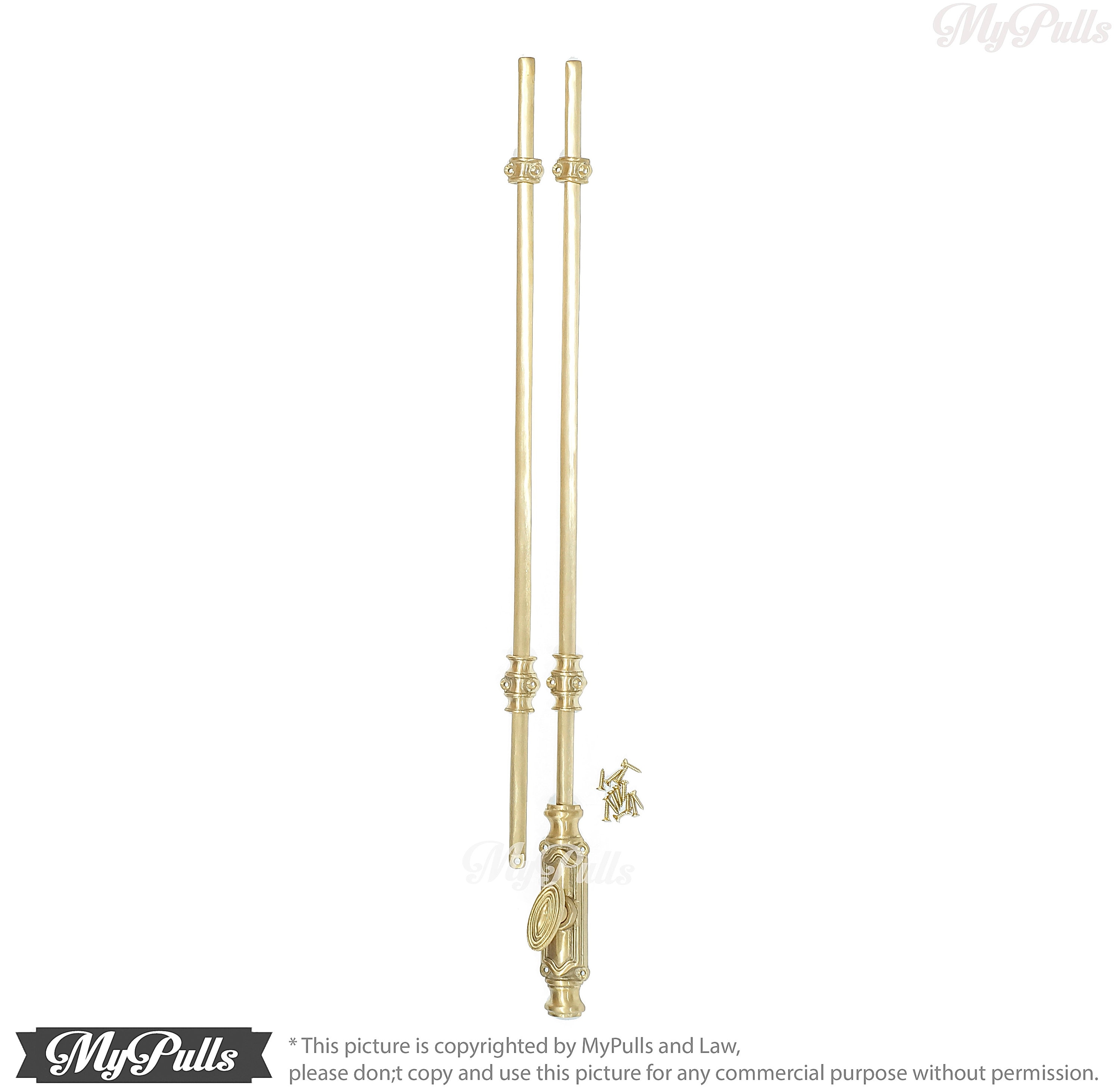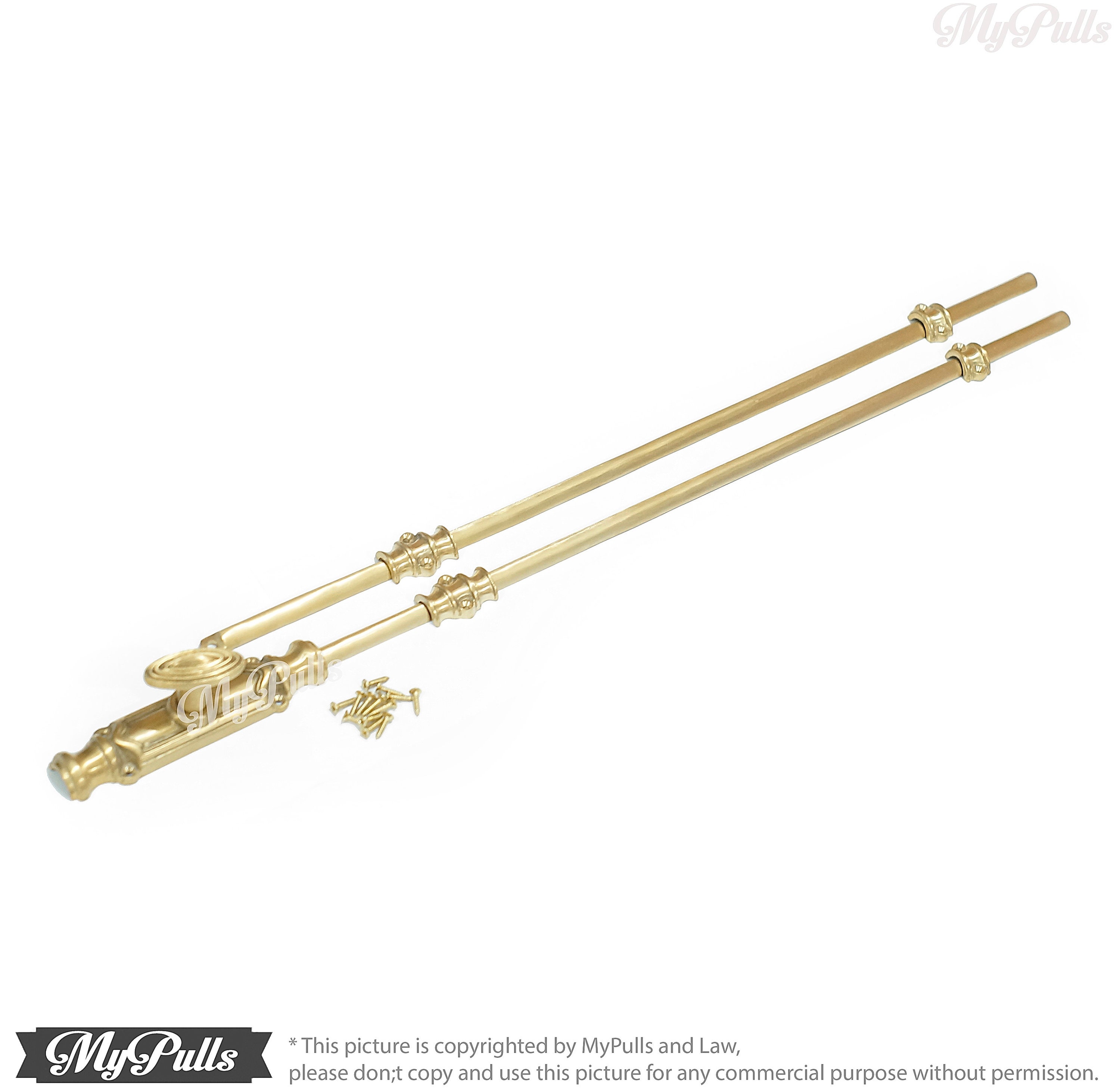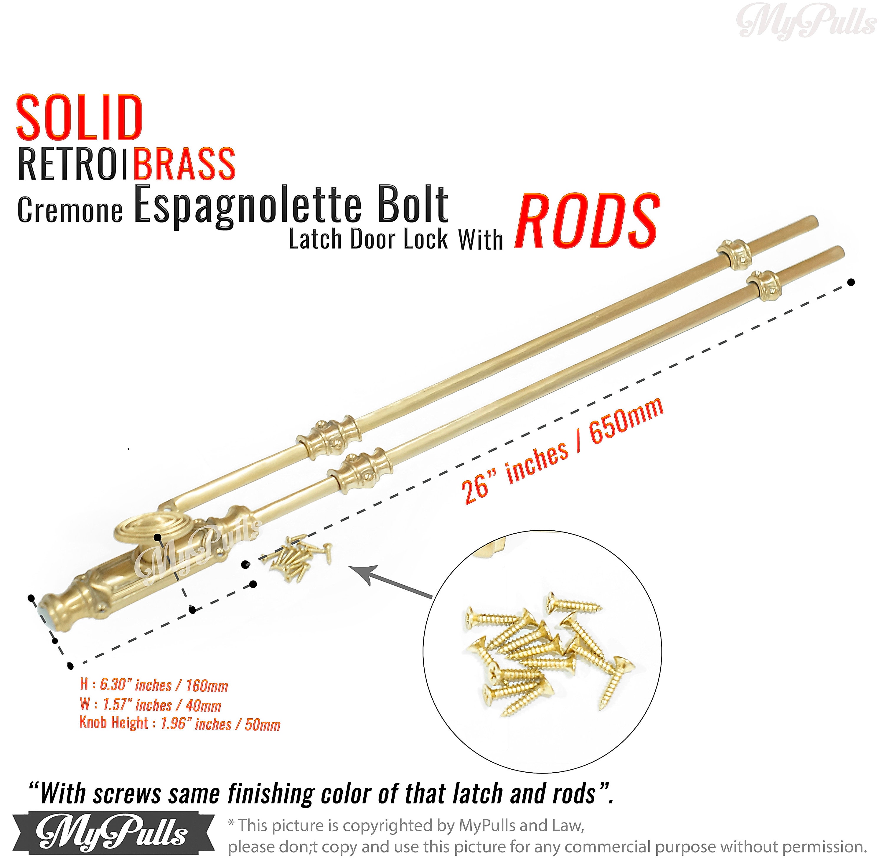This listing for 1 set UN-Lacquered Brass Finish Western Cremone Espagnolette Bolt Latch Lock / Door Lock with Brass Stick Rods set include a screws same finishing for these Retro Brass Western Cremone Espagnolette Bolt Door Lock.