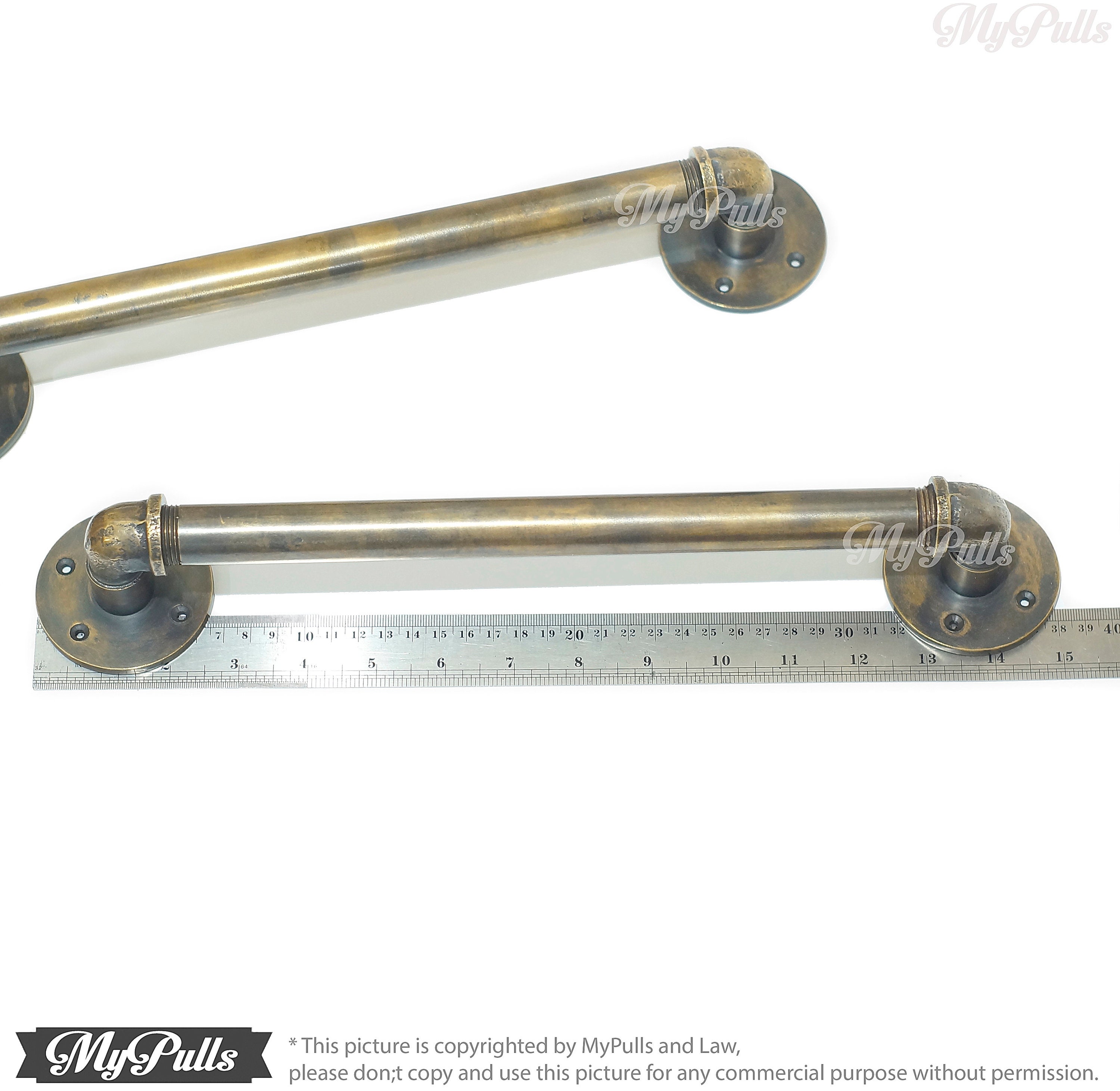 15.00" 2 pcs Rustic Brass Industrial Pipe Door Pull Handles | Retro Brass Barn Door, Kitchen Pipe Door Pulls Handle - NOT IRON / METAL