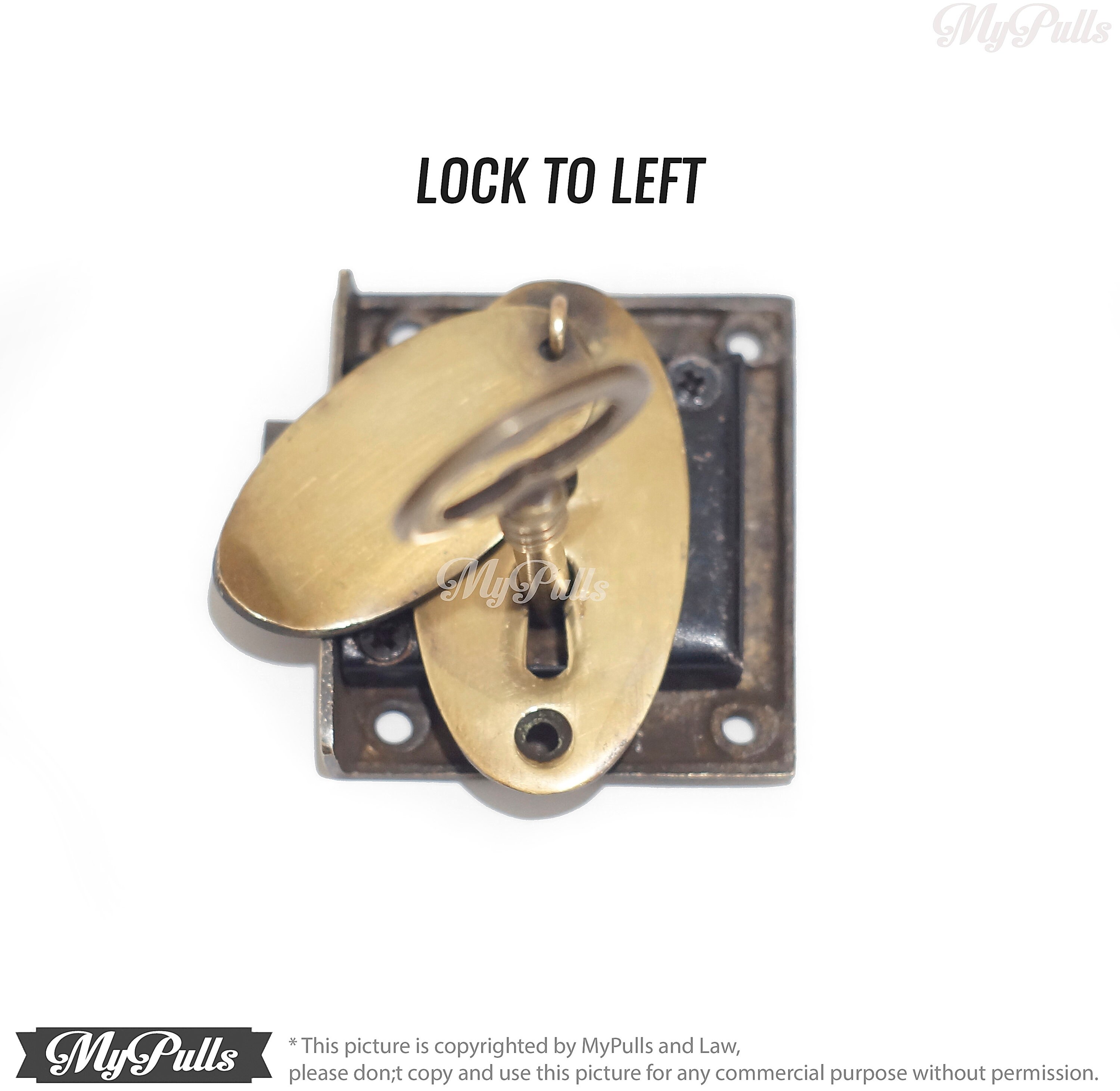 Solid Brass Key Lock Set with Brass Retro Oval with cap Key Hole Cover Plate Drawer Dresser Cabinet Door lock