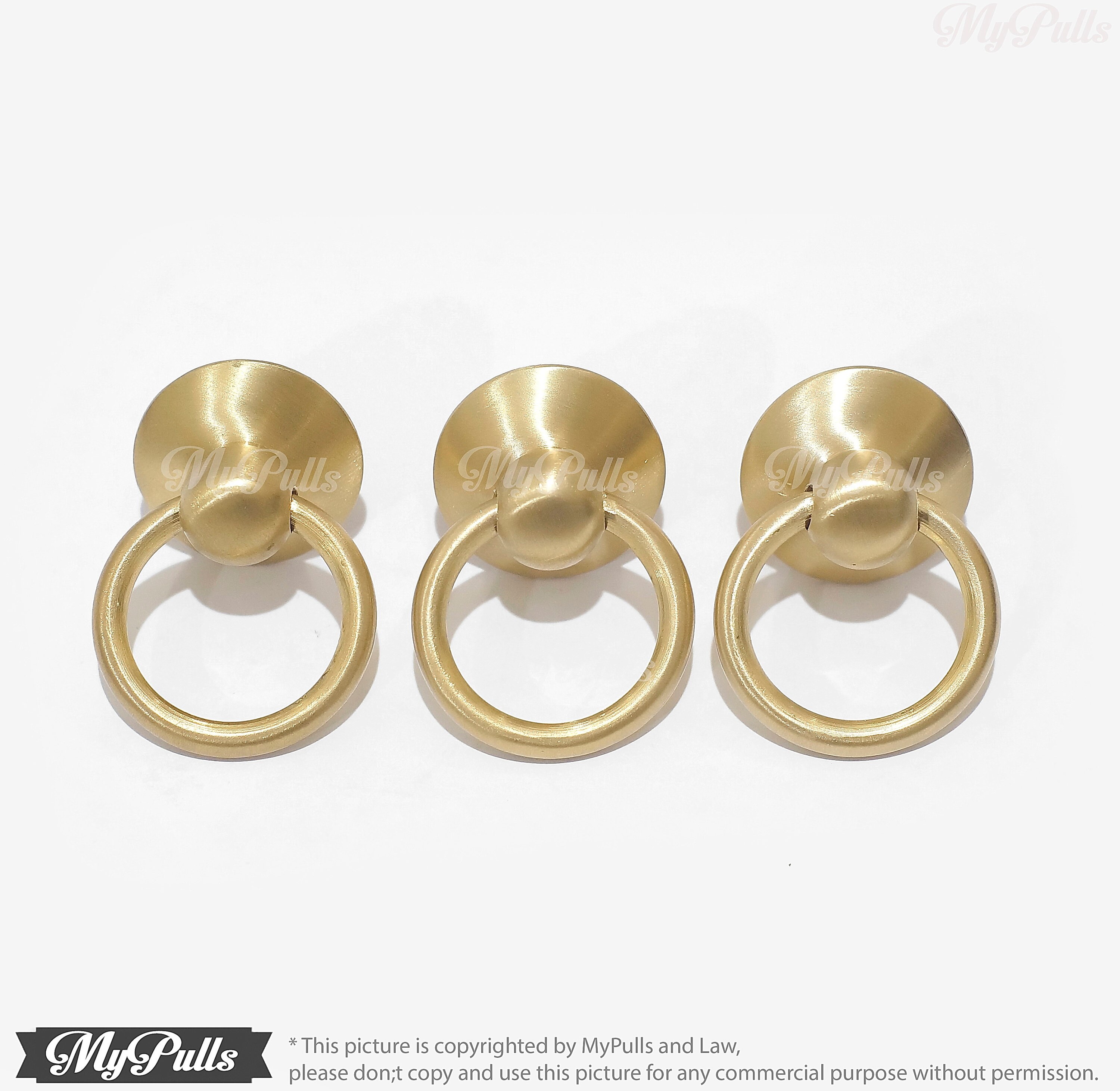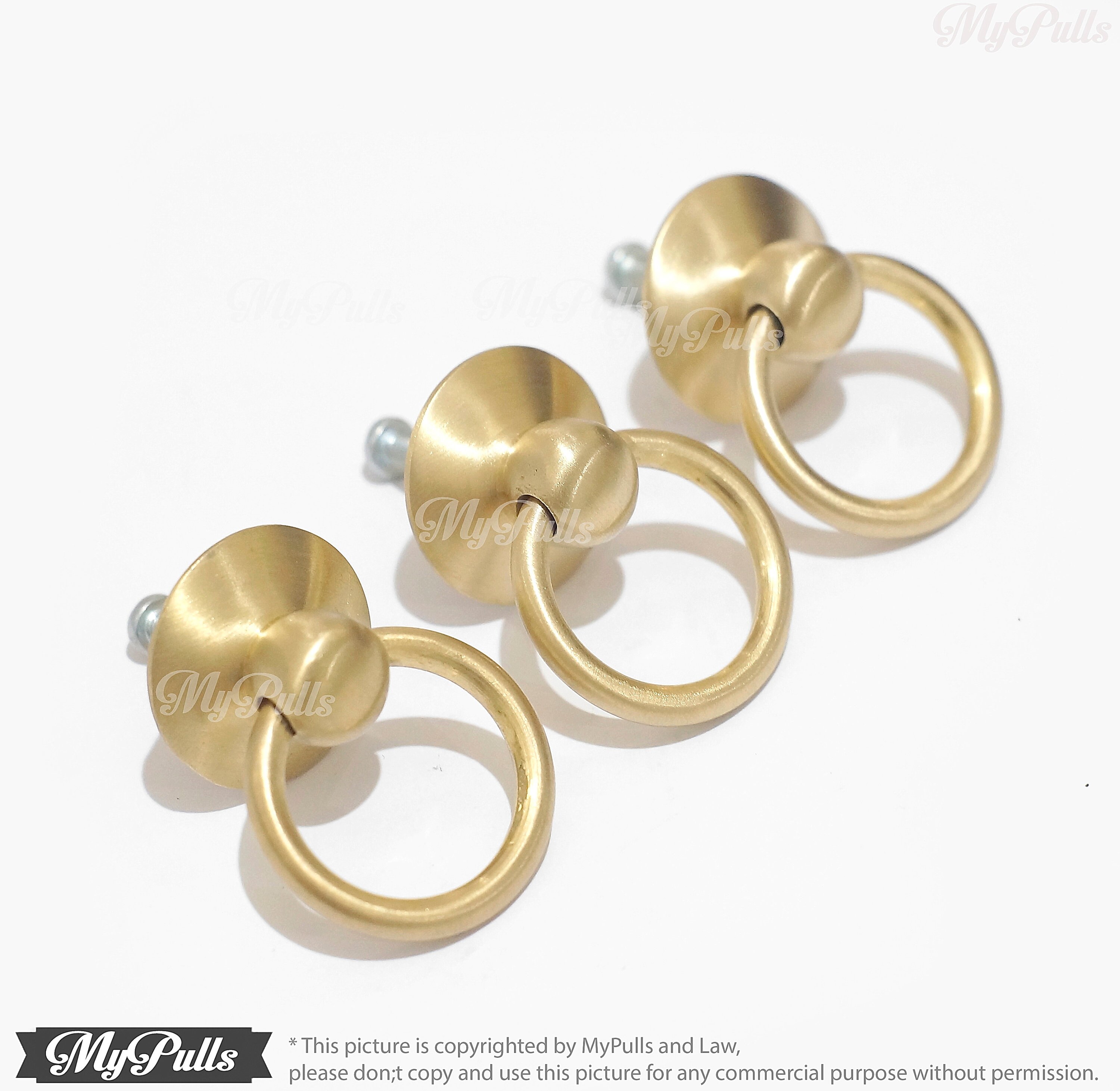 Brushed Brass Round Ring Pulls Cabinet Drawer Dresser Solid Brass Knob Handle Pulls