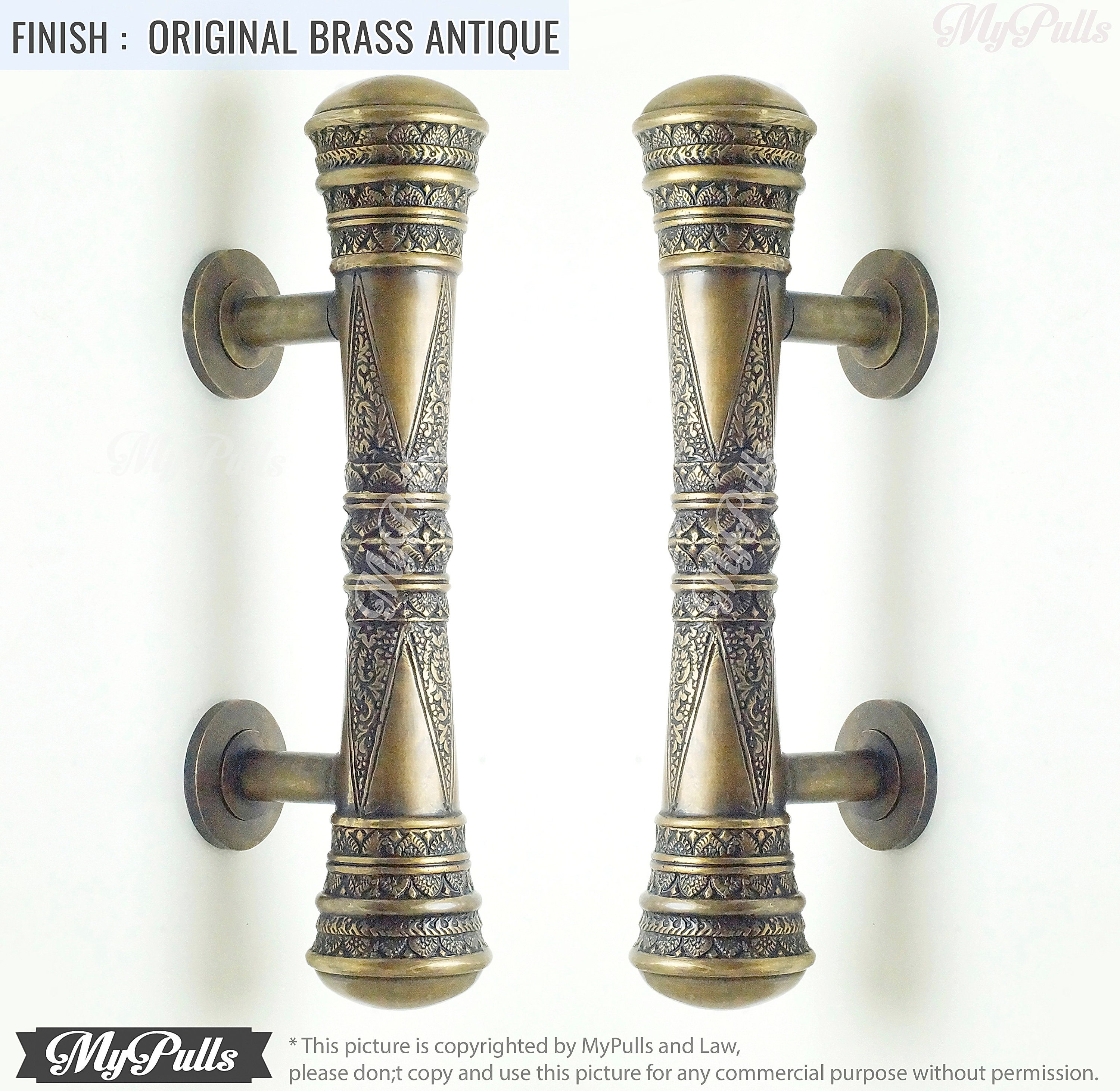 11.33" in 2 pcs Brass Victorian Door Pulls | Front Door Handle with Copper,Bronze Oil Rubbed, Original Antique Brass Color Finish Hardware