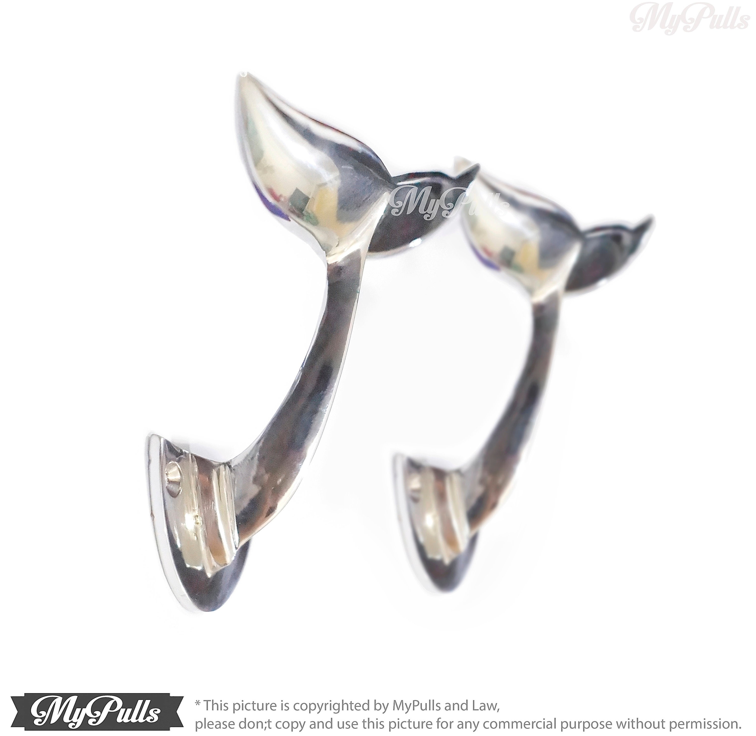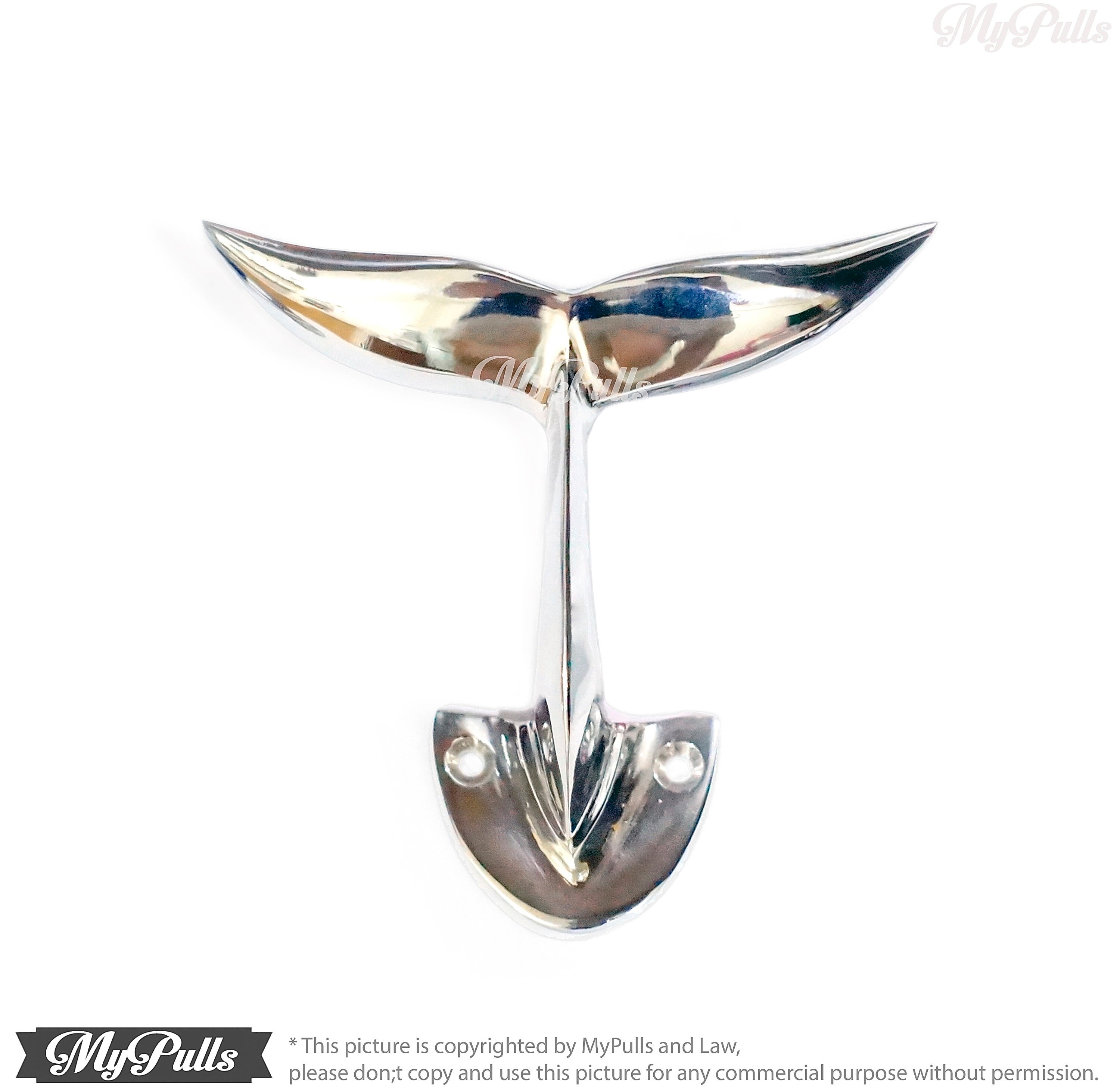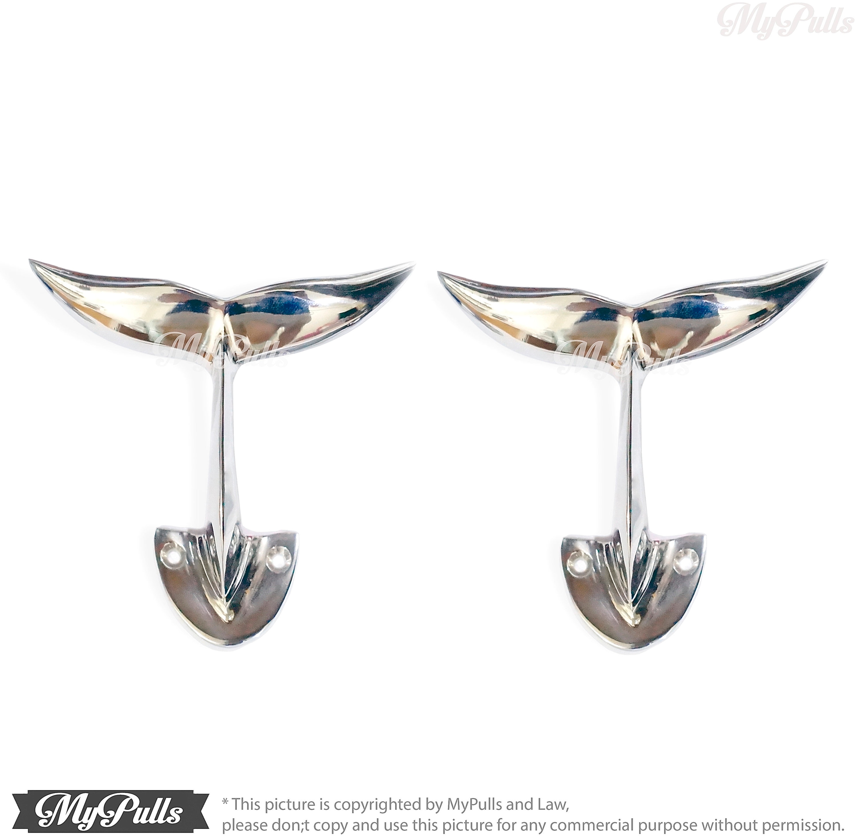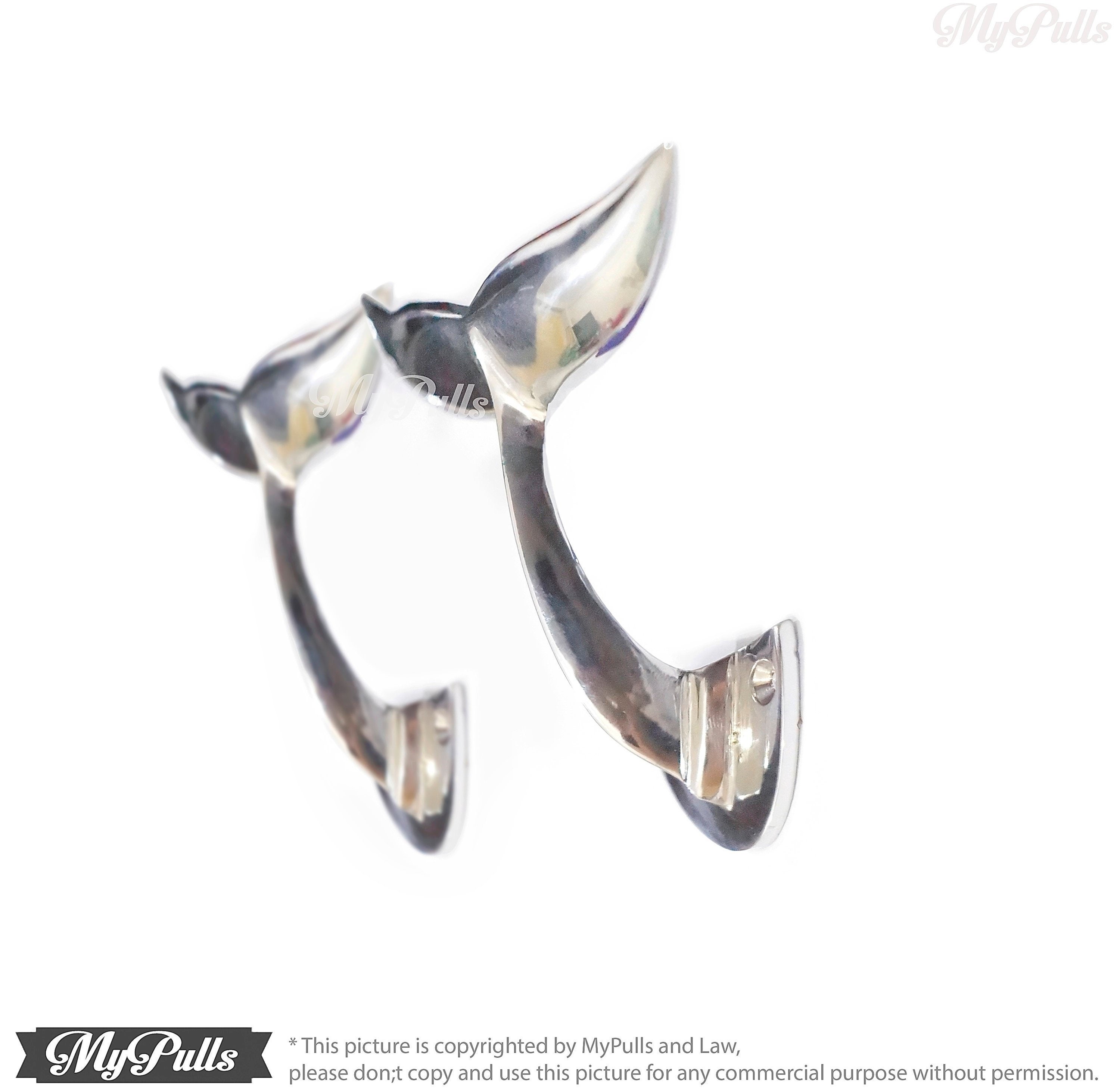 NICE WALL MOUNT HOOKS BEACH HOUSE DECOR - 3.75" inches Solid Brass Silver Chrome Whale Tail Wall Hooks | Alaska Beluga Whale Tail Wall hook Strong Wall Mount Coat Hat Hook include a screws for fitting to existing these Solid Brass Silver Whale Tail Wall Hooks.