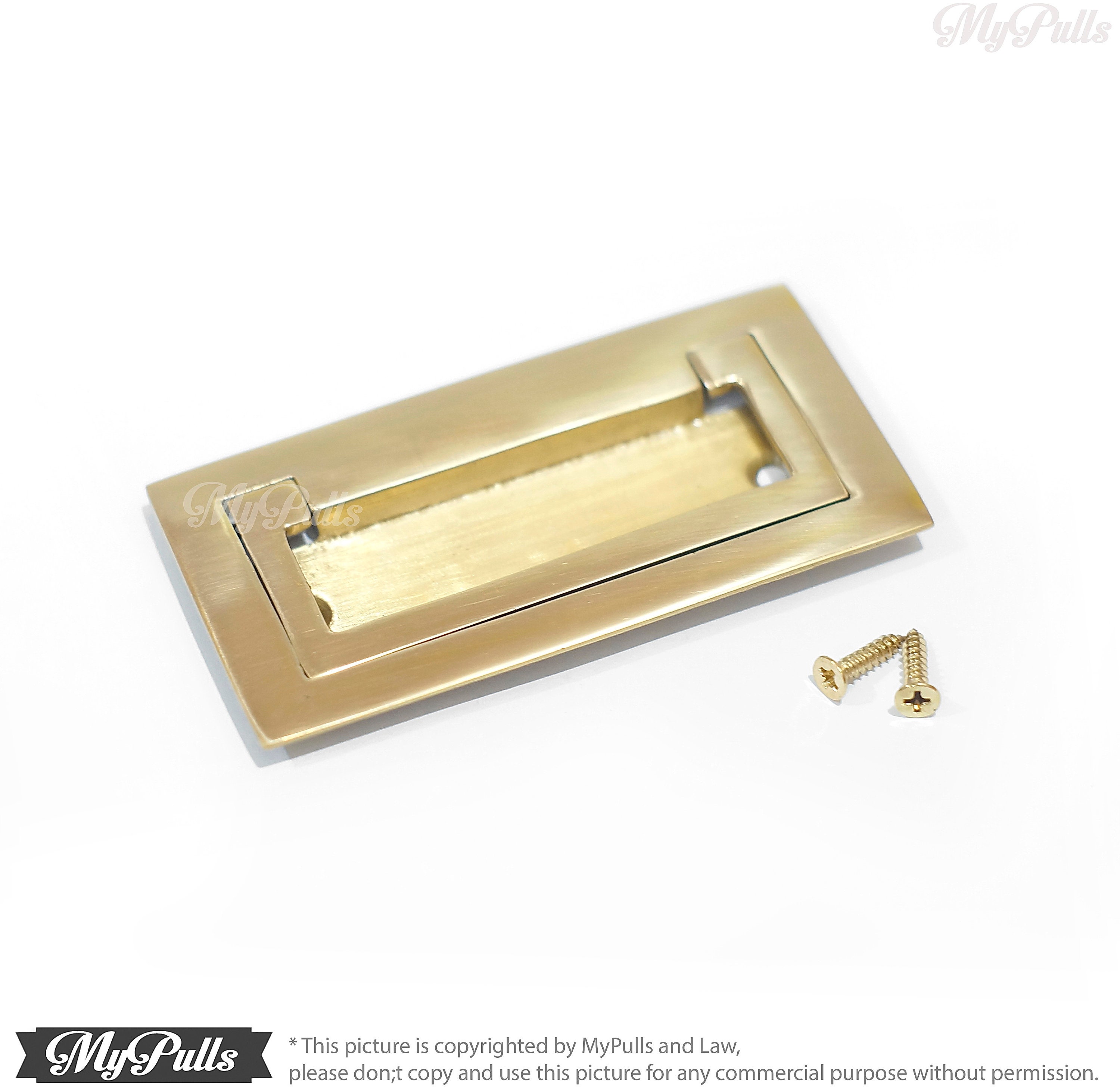SOLID BRASS FLUSH LIFT HANDLE PULLS - This Flush Lift Handle Pulls with Gold Color Finish will be great for your Cabinet Knob Drawer Pull Handle Cupboard Door Pulls, Door knobs, Desk Drawer Pulls handle, and this Knob Pulls include a screws for fitting all these Solid Brass Flush Lift Handle Pulls.