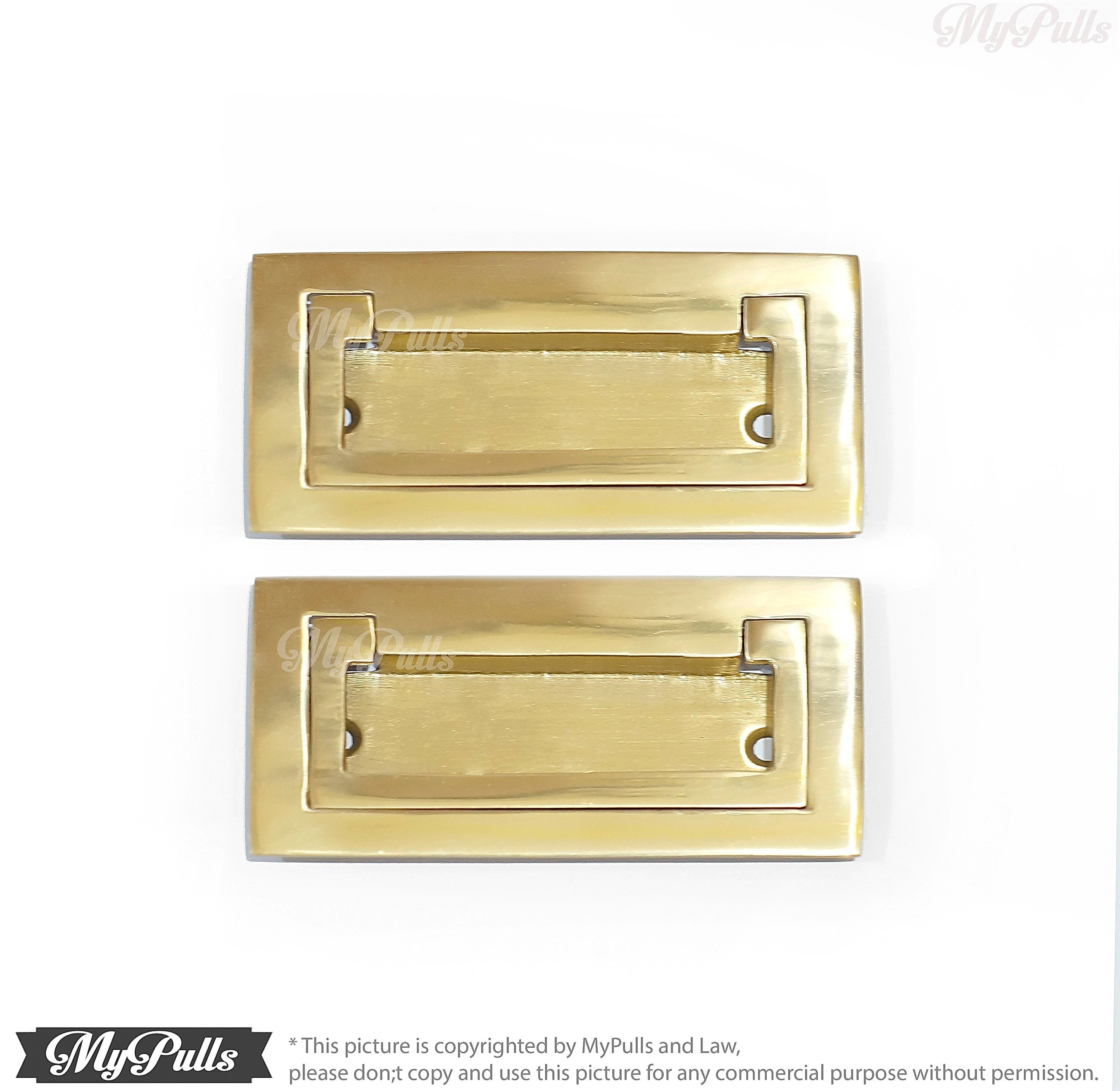 3.38" Set of 2 pcs Solid Brass Gold Finish Flush Lift Handle Pulls, Solid Brass Cabinet Knob, Drawer Pull Handle, Cupboard Door Pulls Handle