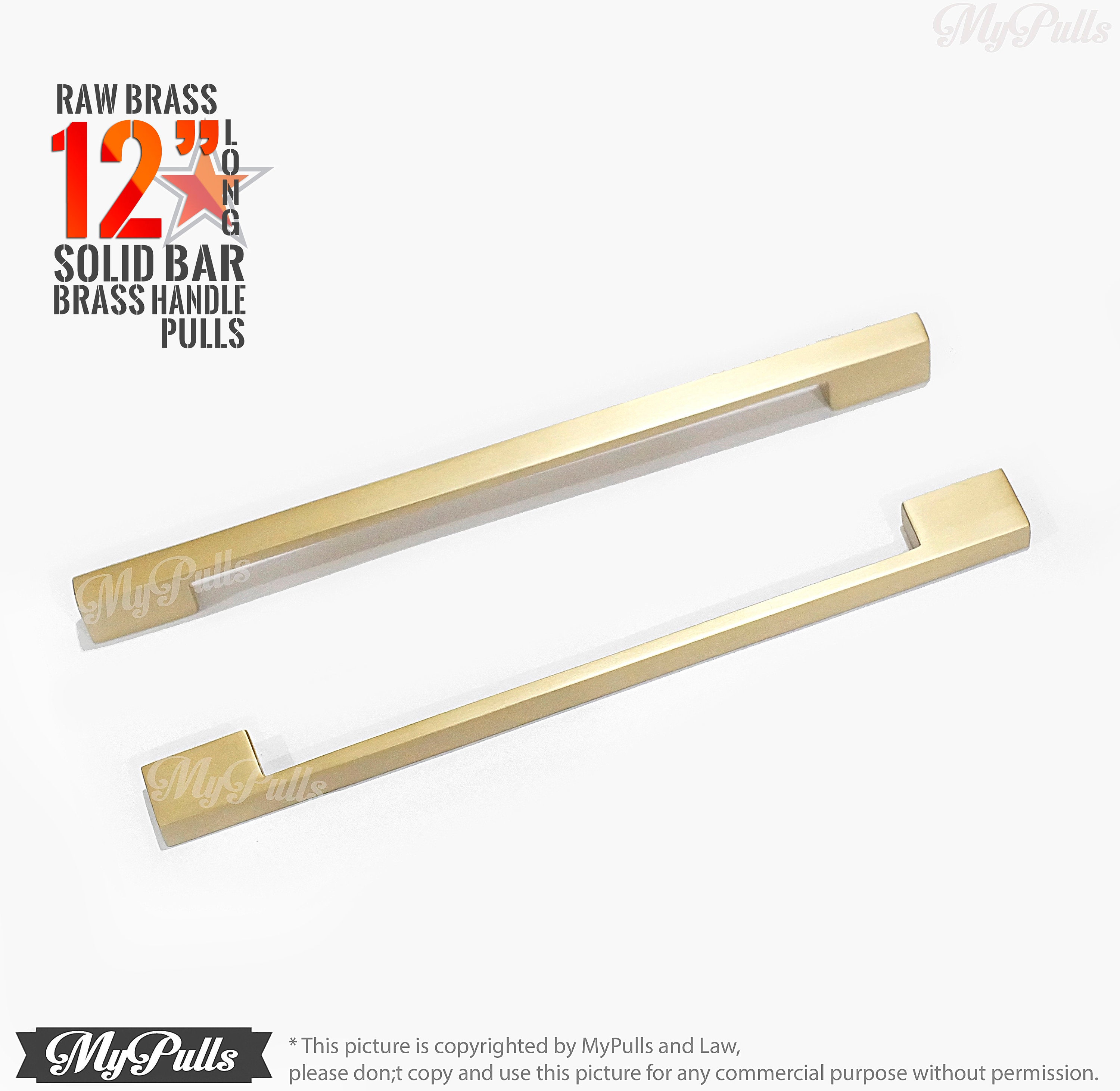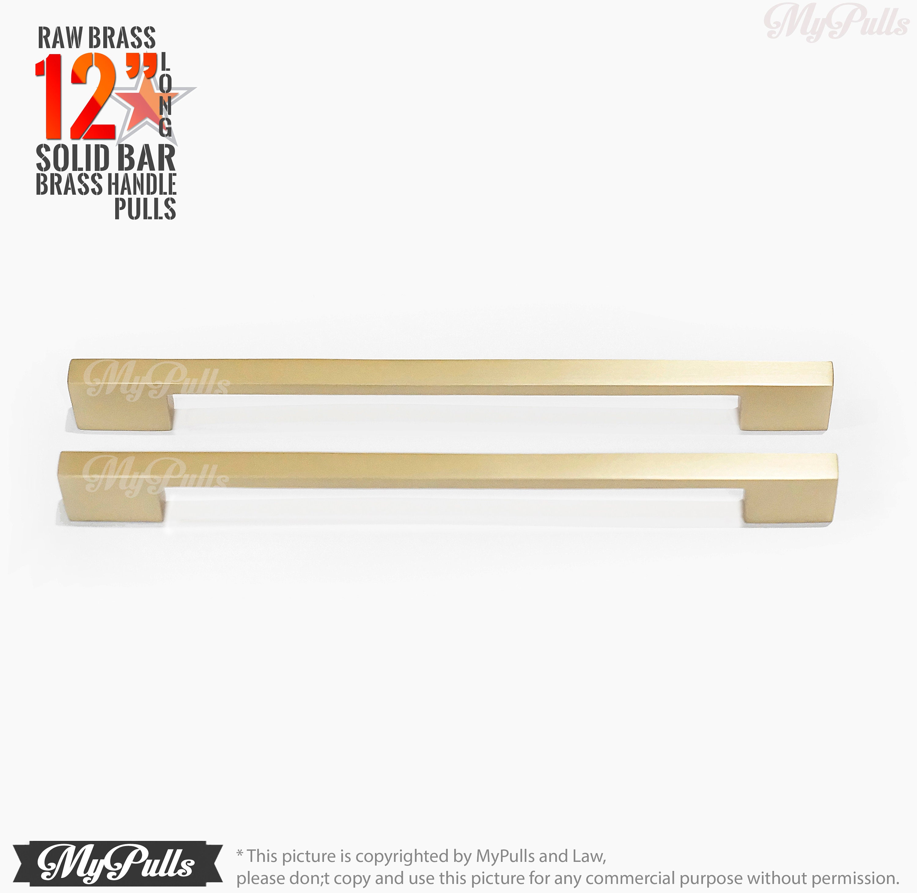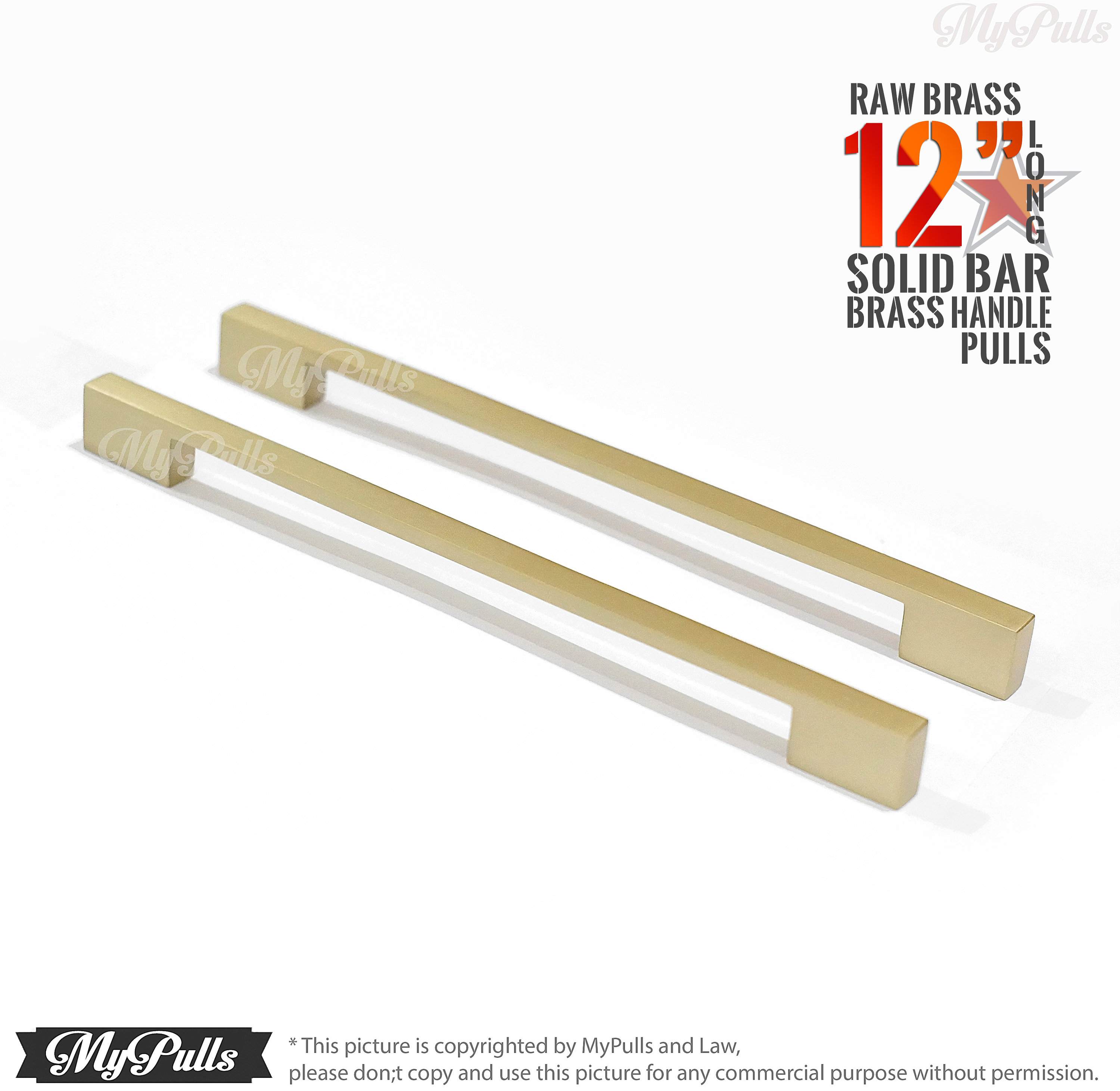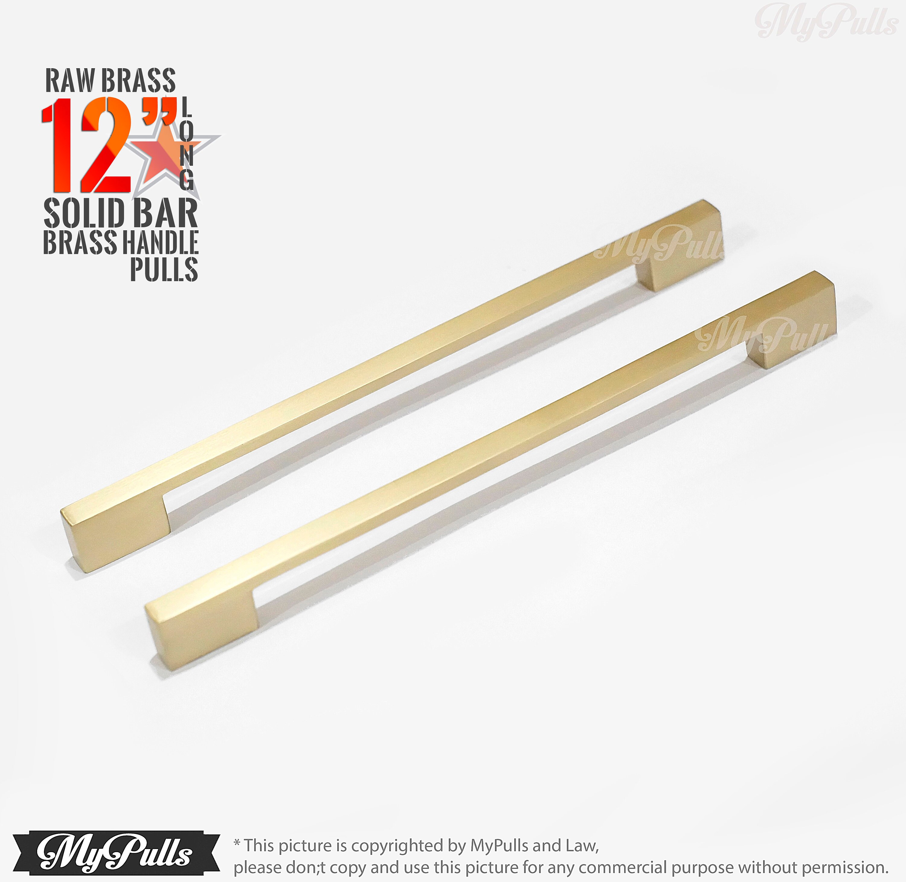 12.00" inches 2 pcs SOLID BRASS Natural Raw Brass Long Bar Pulls Handle Cabinet Drawer Dresser Cupboard Kitchen Pull Handles