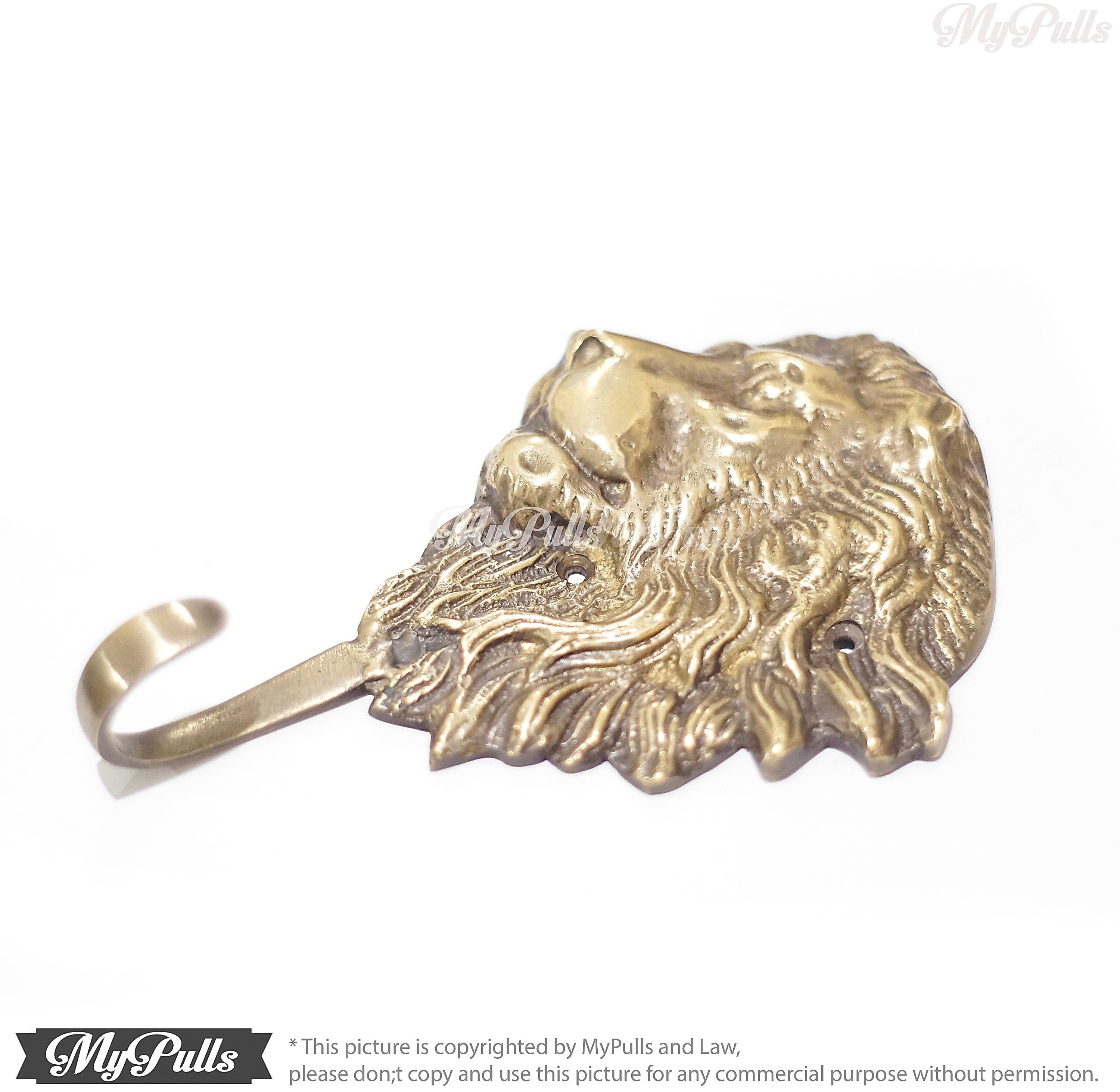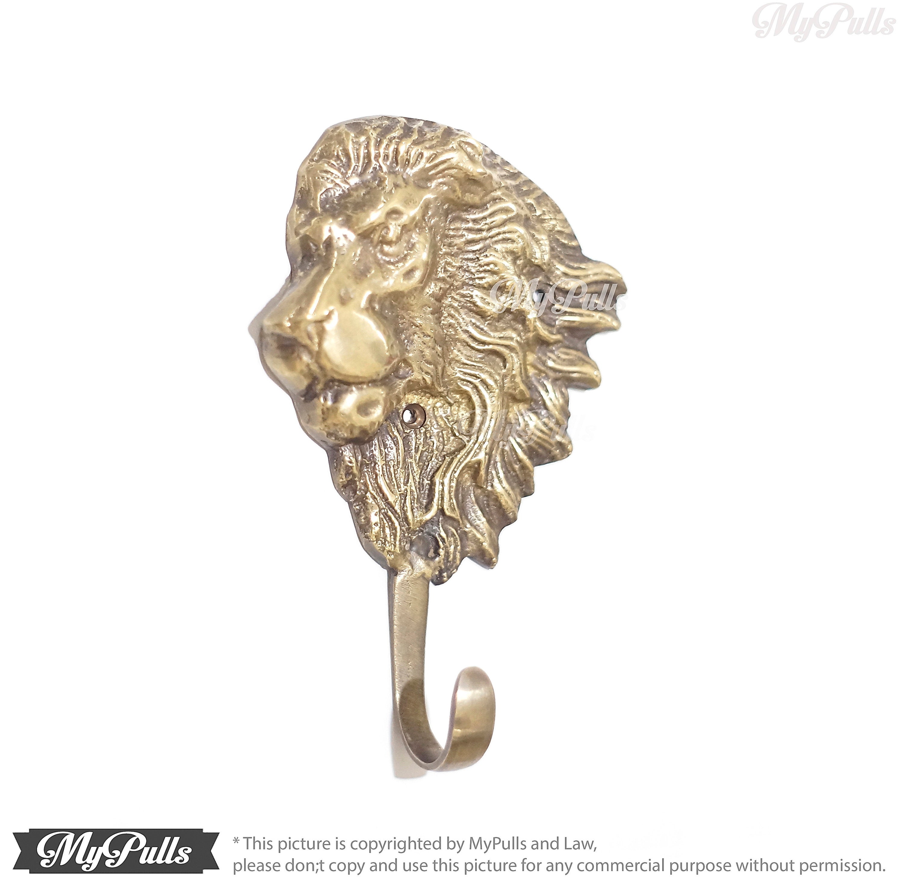 SOLID BRASS LION KING WALL HOOK - this Solid Brass Lion King Animal Head wall hook Strong Wall Mount Coat Hat Hook Lion Head Decor will be great for your coat hook, hat hooks, door hook, bathroom hook, kitchen towel or any decor, and this include a screws for fitting all these Solid Brass Hooks.