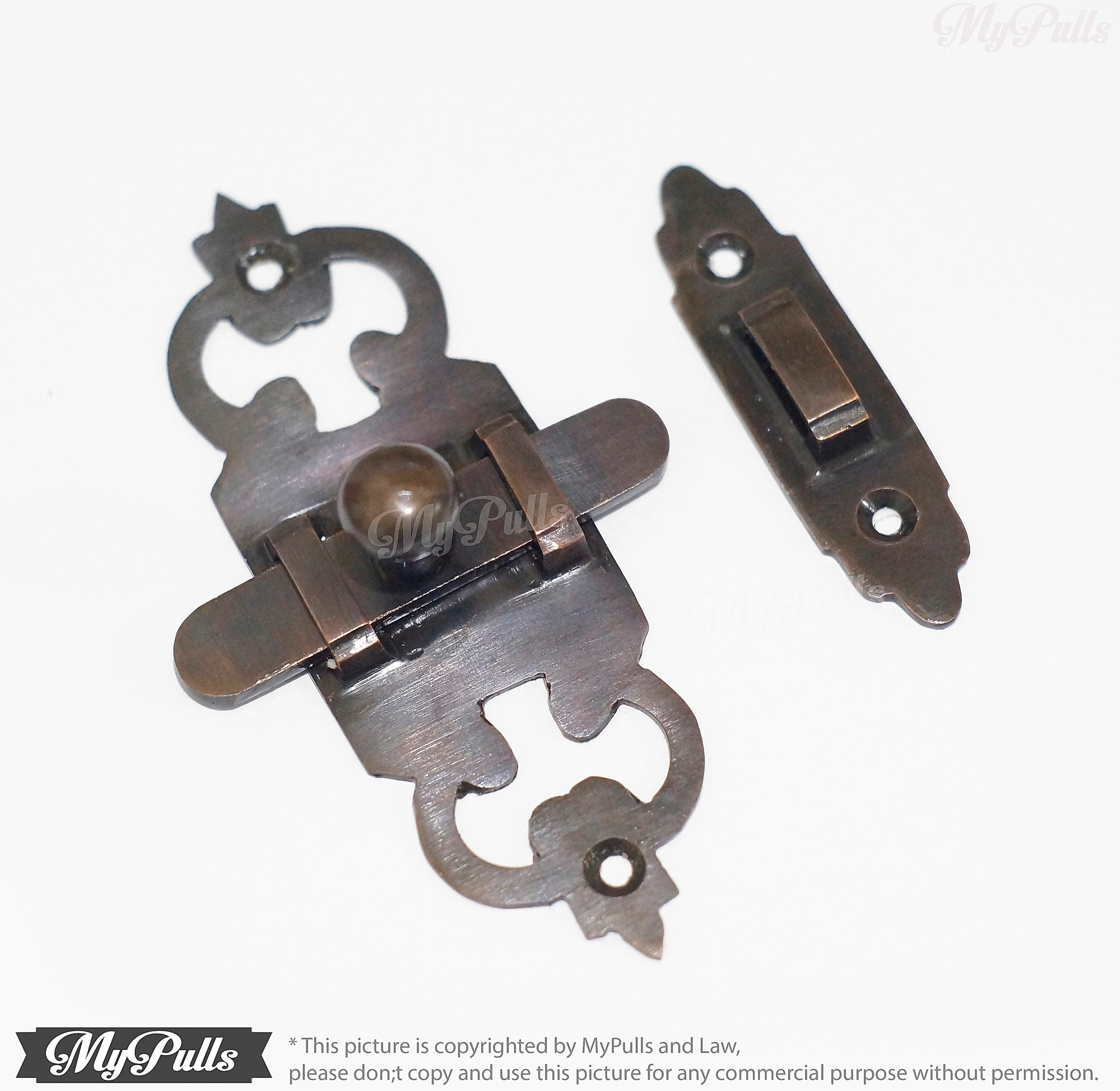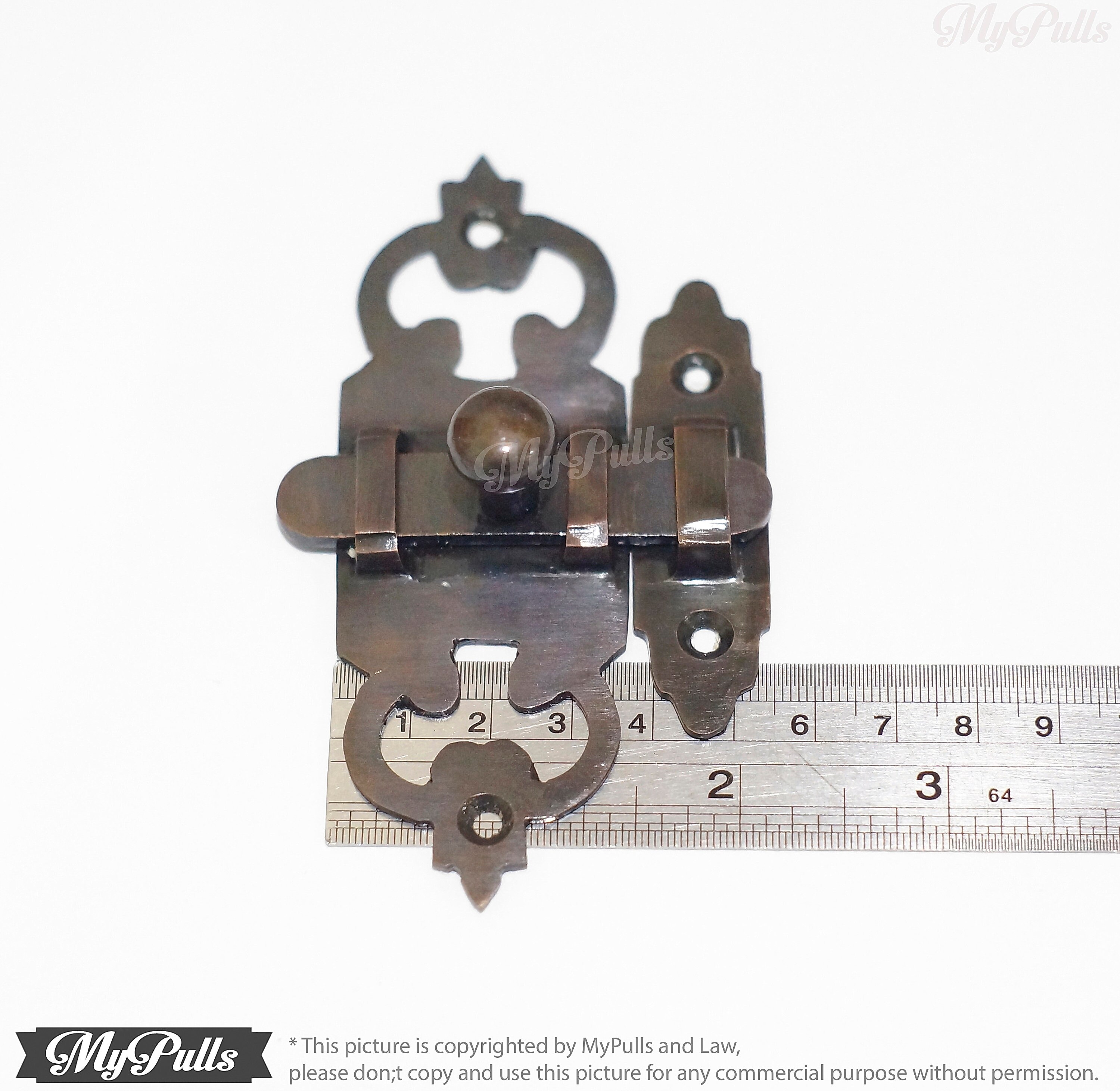 SOLID BRASS DARK BROWN LATCH LOCK - This Classic Solid Brass LATCH Box Slot Dark Brown Finish will be great for your Door lock, gate door, box fast lock or any decor, and include a black screws for fitting all these Solid Brass latches.