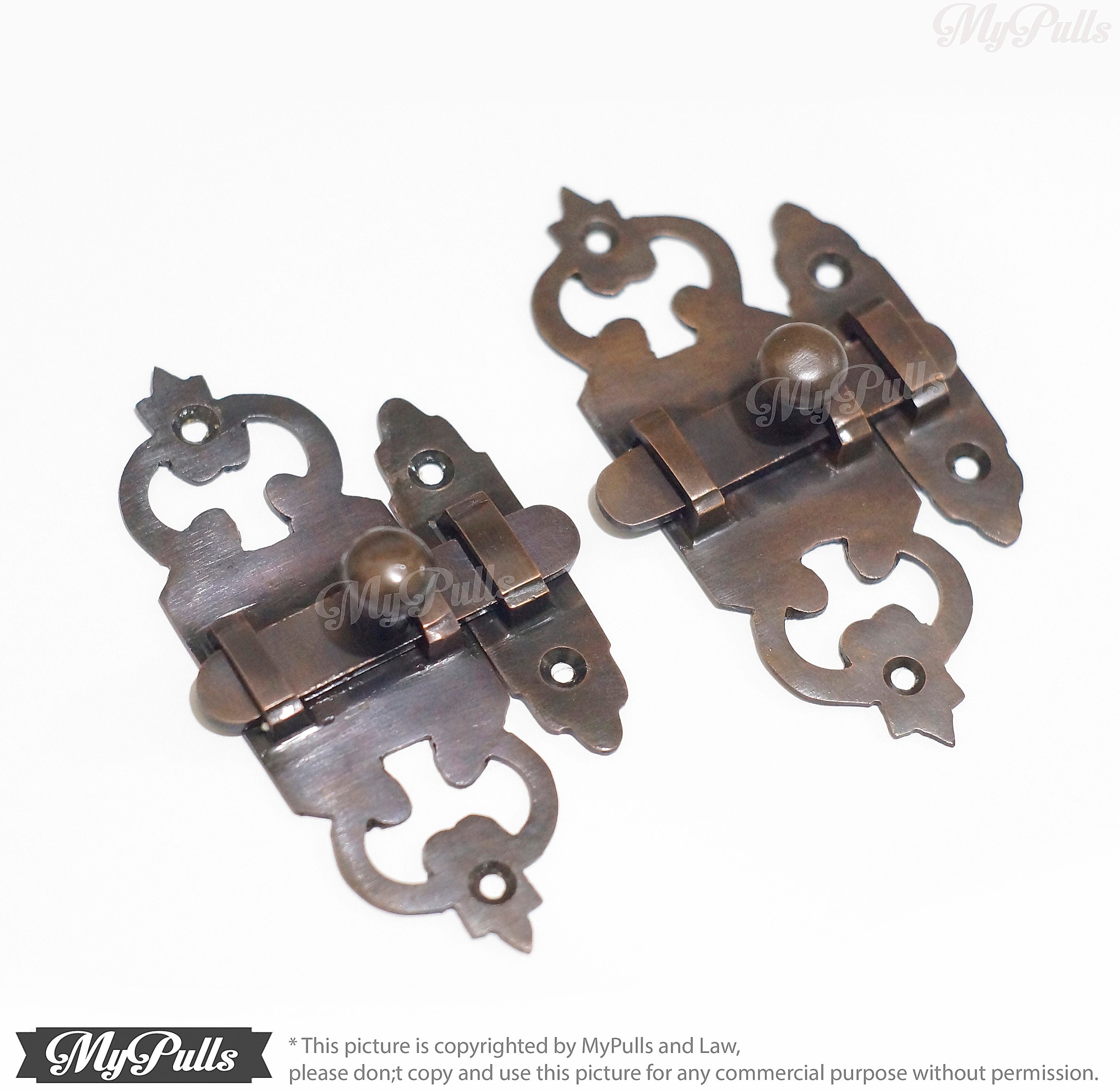 Set of 2 pcs Solid Brass Classic LATCH Lock Slot Dark Brown Finish Brass Fast Lock Door, Gate lock, Box Lock