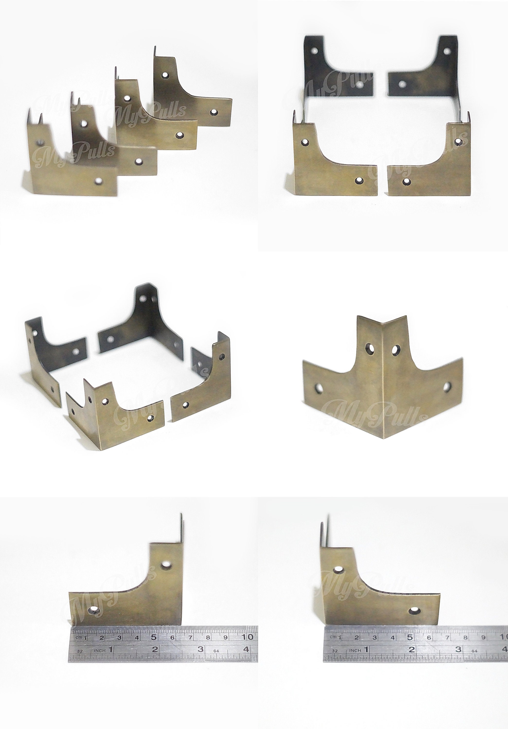 SOLID BRASS TWO LEGS CORNER PROTECTORS - This listing for 4 pcs 2.5"x 2.5" in Solid Brass Retro Two legs Corners Protector | Table Cabinet Trunk Corner Protector Solid Brass Corner Protectors include a screws for these Solid Brass Corner Protectors.
