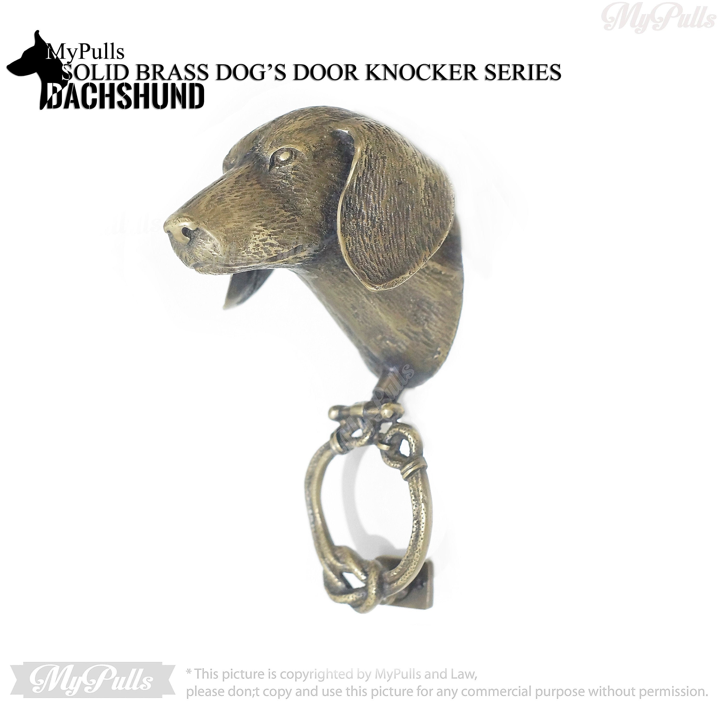 SOLID BRASS DACHSHUND DOG HEAD FRONT DOOR KNOCKER - This Brass Dachshund Dog Head Front Door Knocker will be great for your front door, entry door and for any your home decor. and this door knocker will include Door hit protector and a screws for fitting all these Solid Brass door knocker.