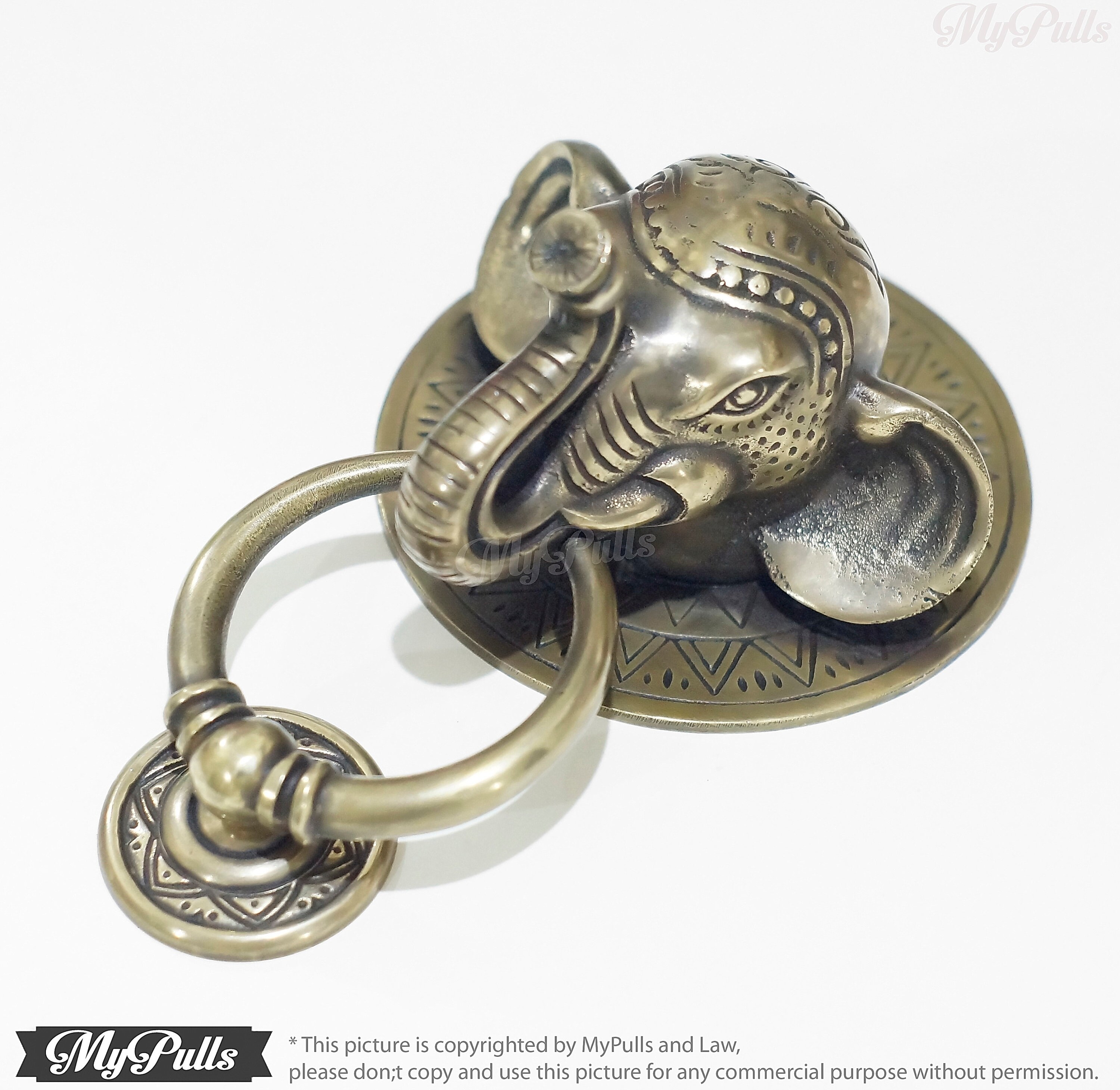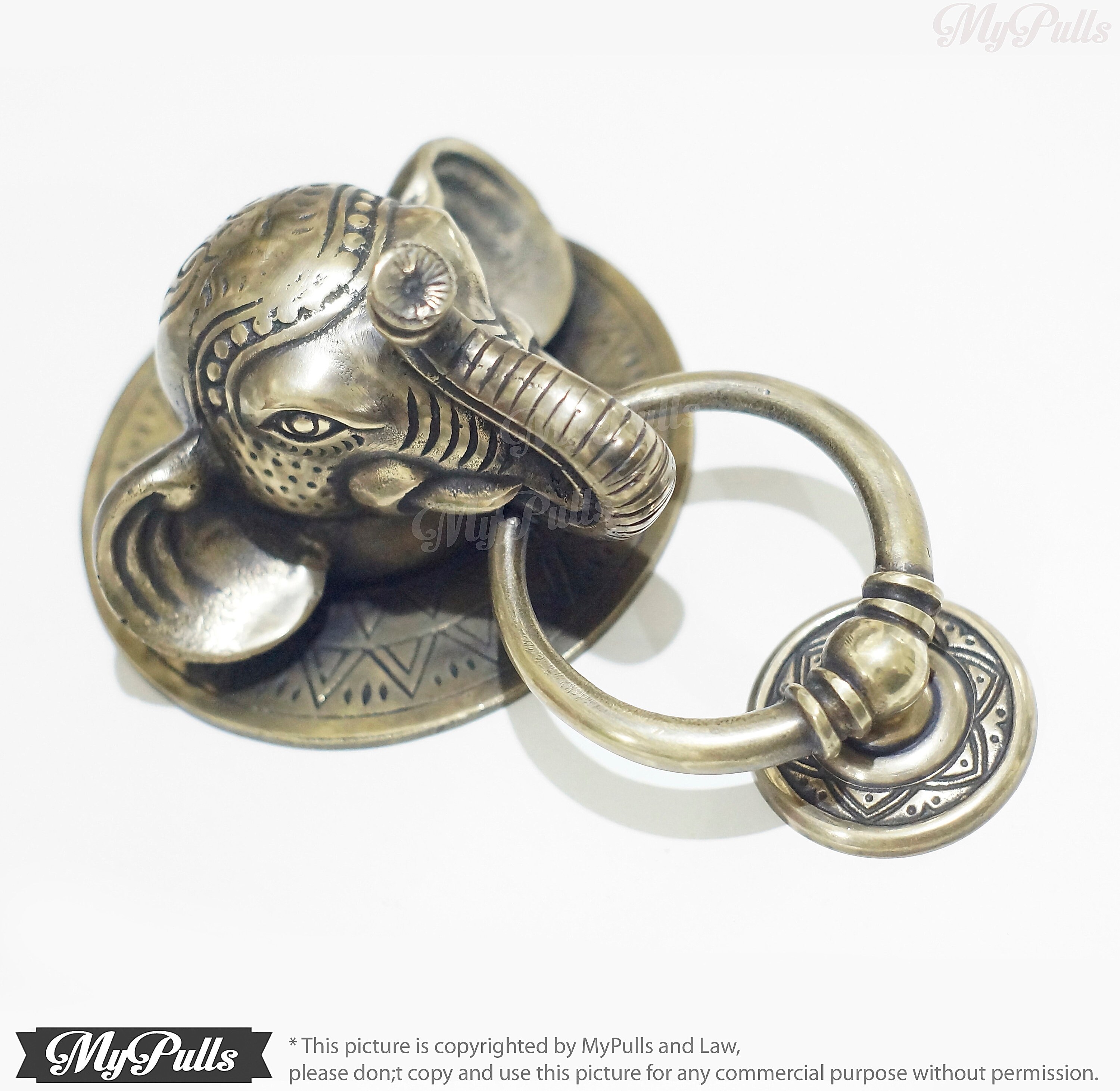 SOLID BRASS ELEPHANT HEAD FRONT DOOR KNOCKER - This Brass Elephants Head Front Door Knocker will be great for your front door, entry door and for any your home decor. and this door knocker will include Door hit protector and a screws for fitting all these Solid Brass door knocker.