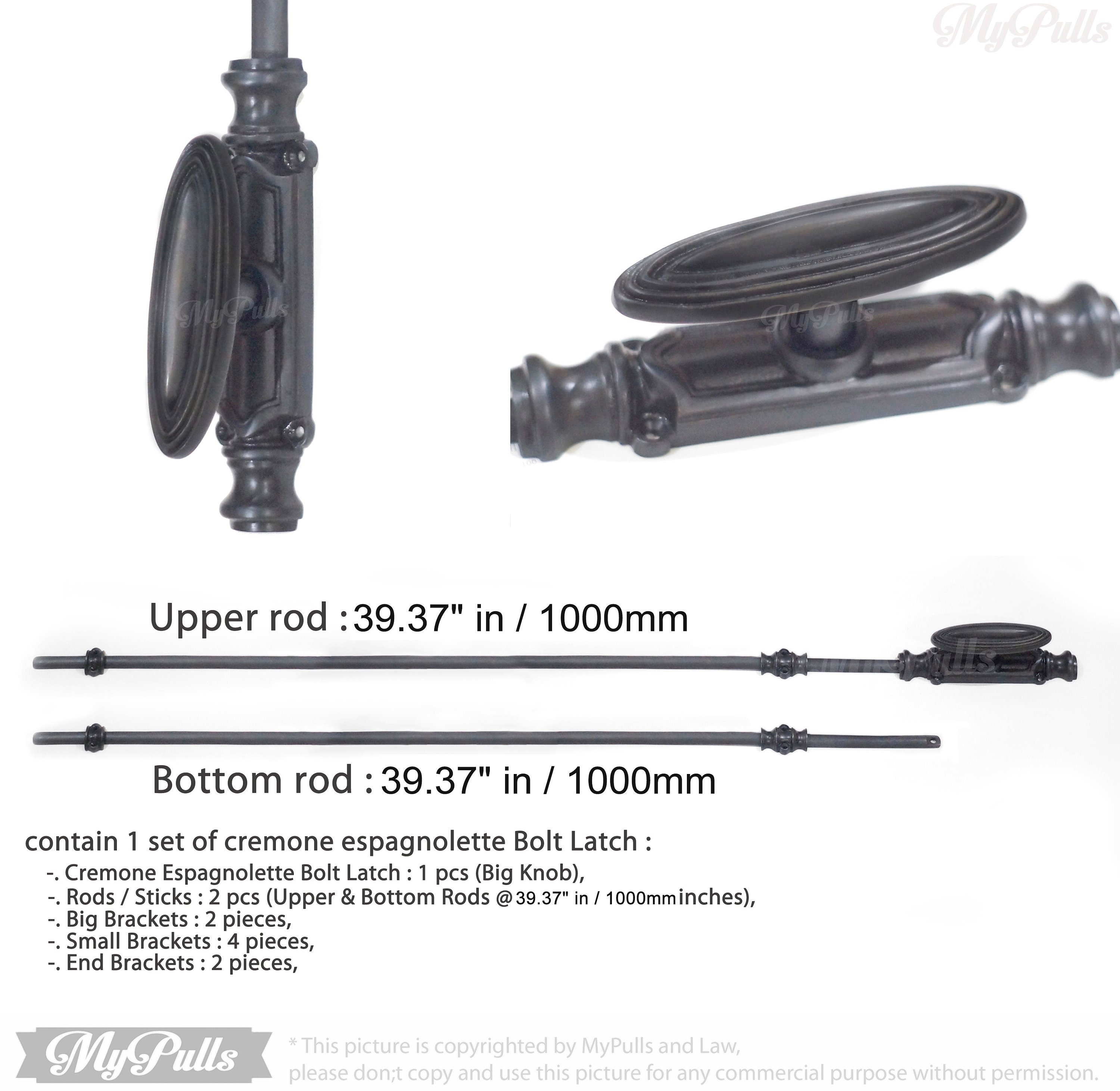 and for the Rods, the default length is : 39.37" in / 1000mm, if you need more longer or shorter, just need for the bolt latch without the rods, please don;t hesitate to contact us.
